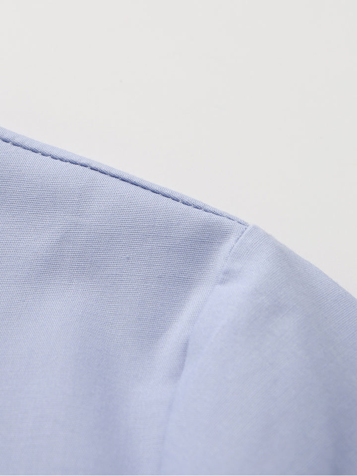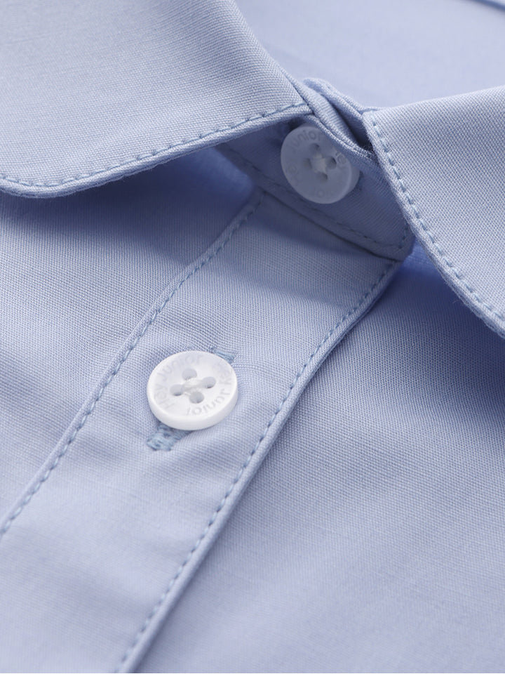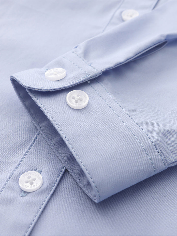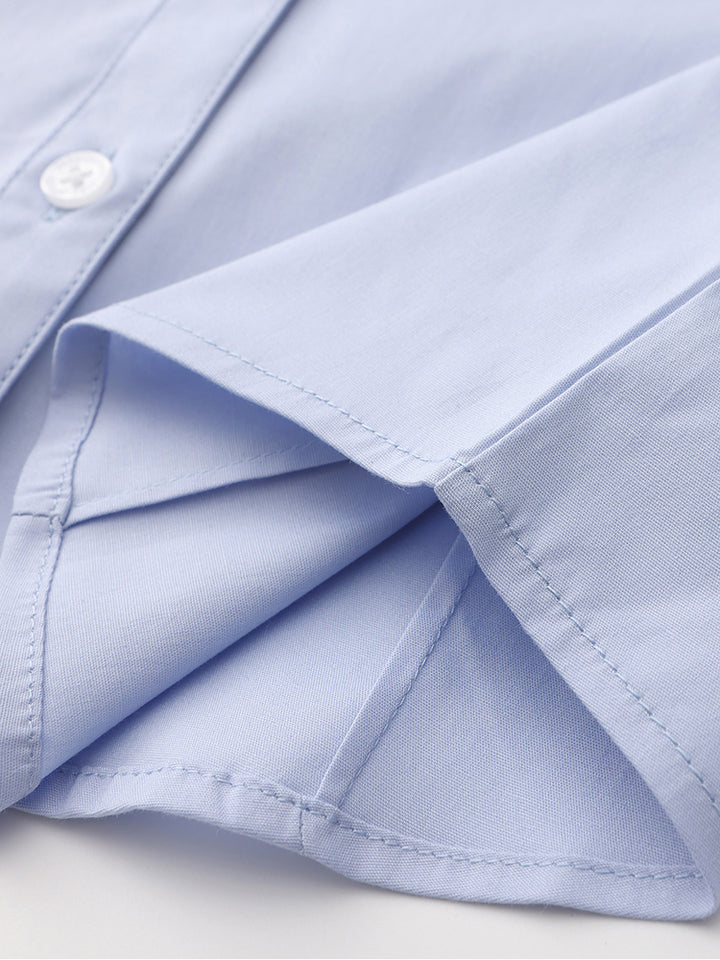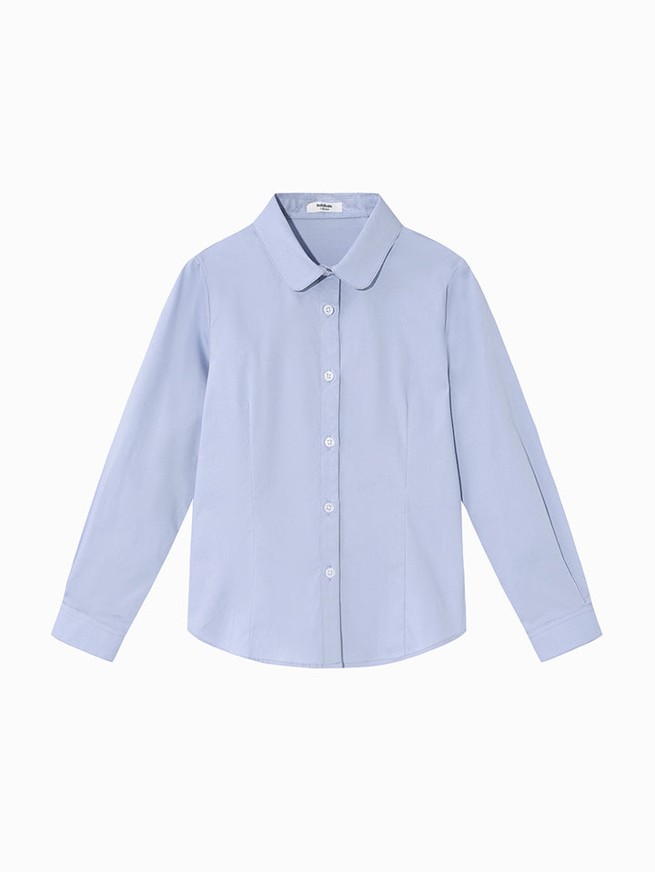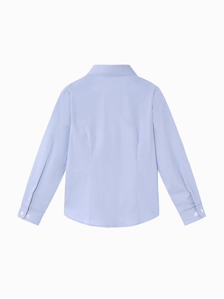 قميص بناتي كاجوال بأكمام طويلة وبلون موحد سادة، يأتي بأزرار للإغلاق من الجهة الأمامية وبياقة كلاسيكية عادية