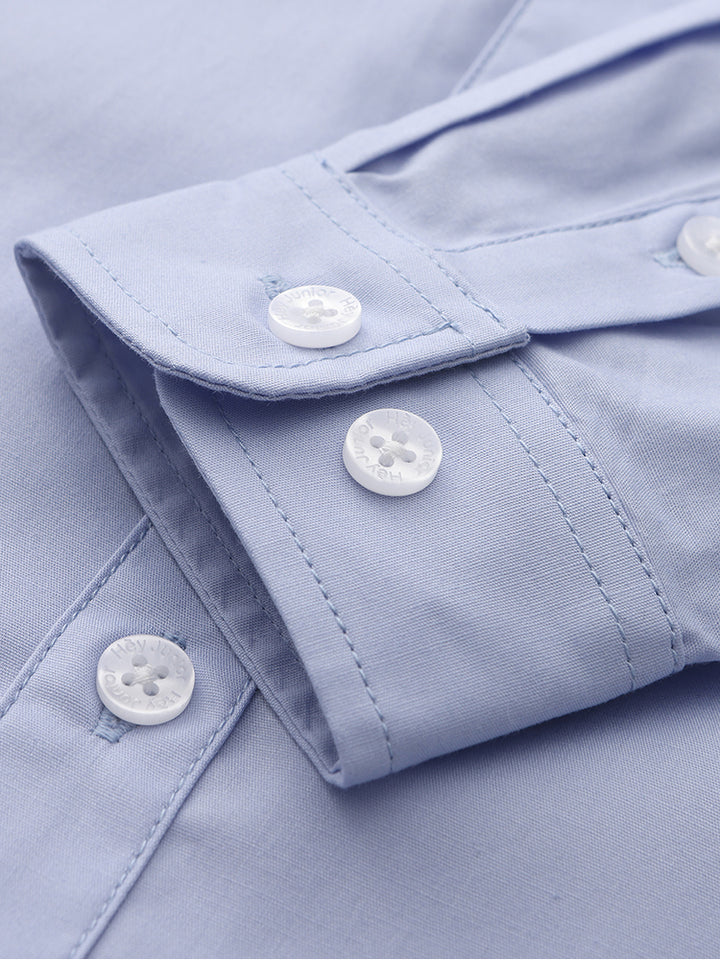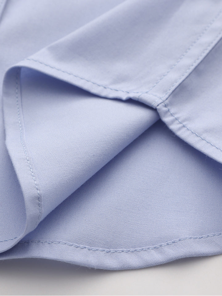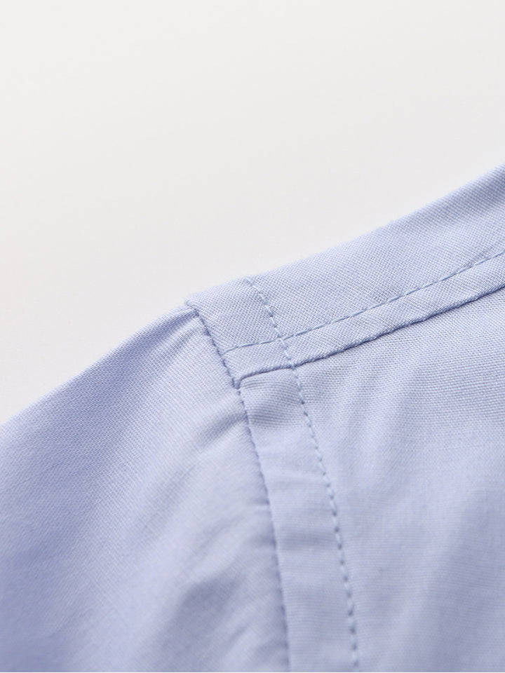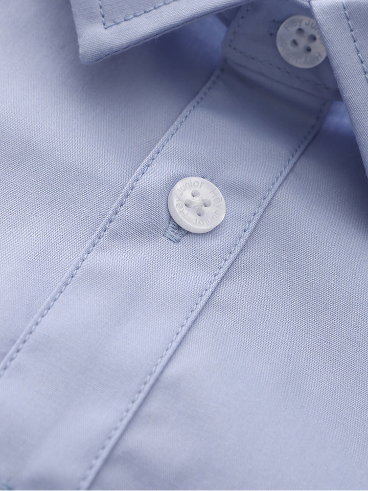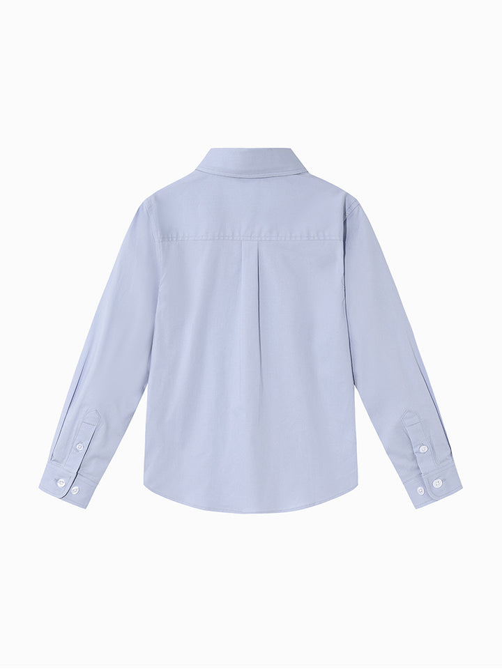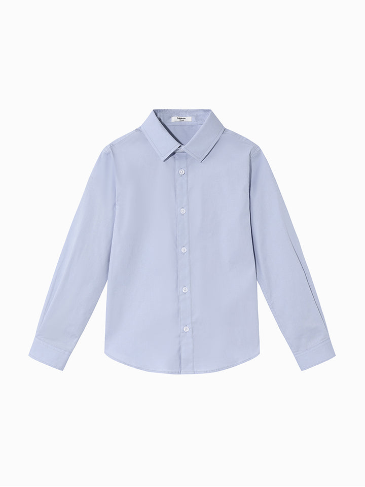 قميص ولادي كاجوال بأكمام طويلة وبلون موحد سادة، يأتي بأزرار للإغلاق من الجهة الأمامية وبياقة كلاسيكية عادية