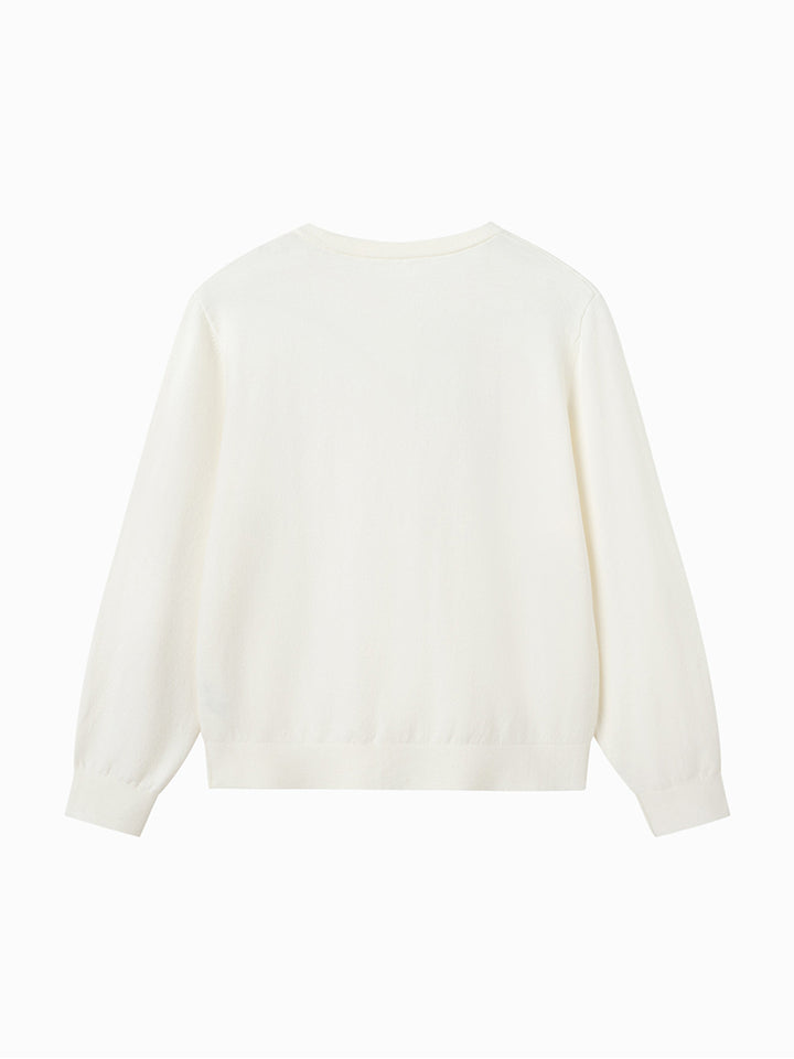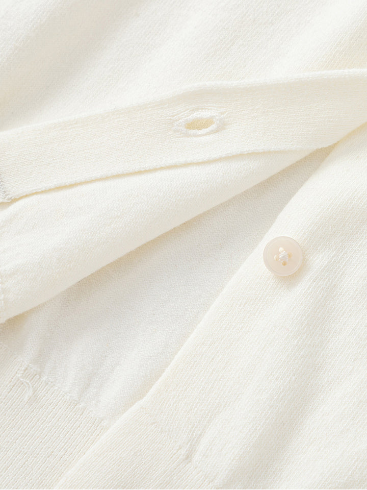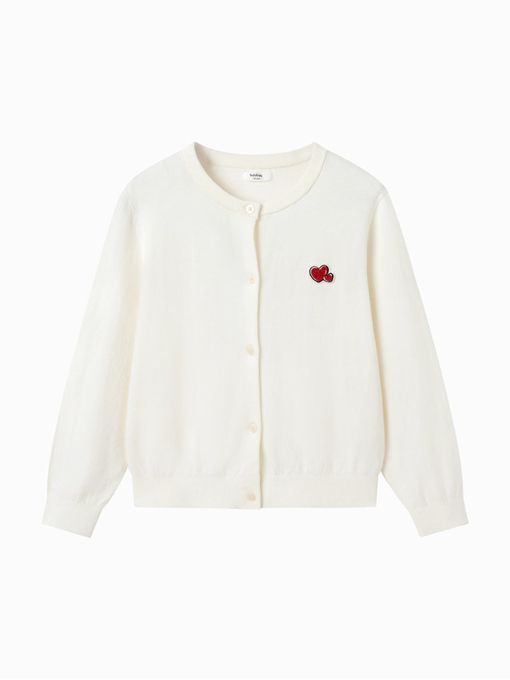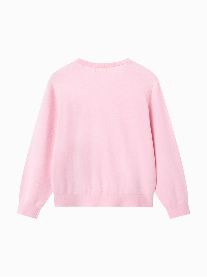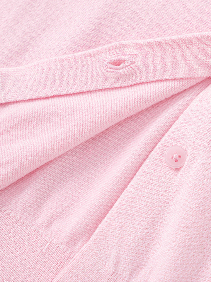 كارديغان بناتي بأكمام طويلة بخامة نسيج محبوك، مزين بتفاصيل تطريز صغيرة، ويأتي بأزرار للإغلاق