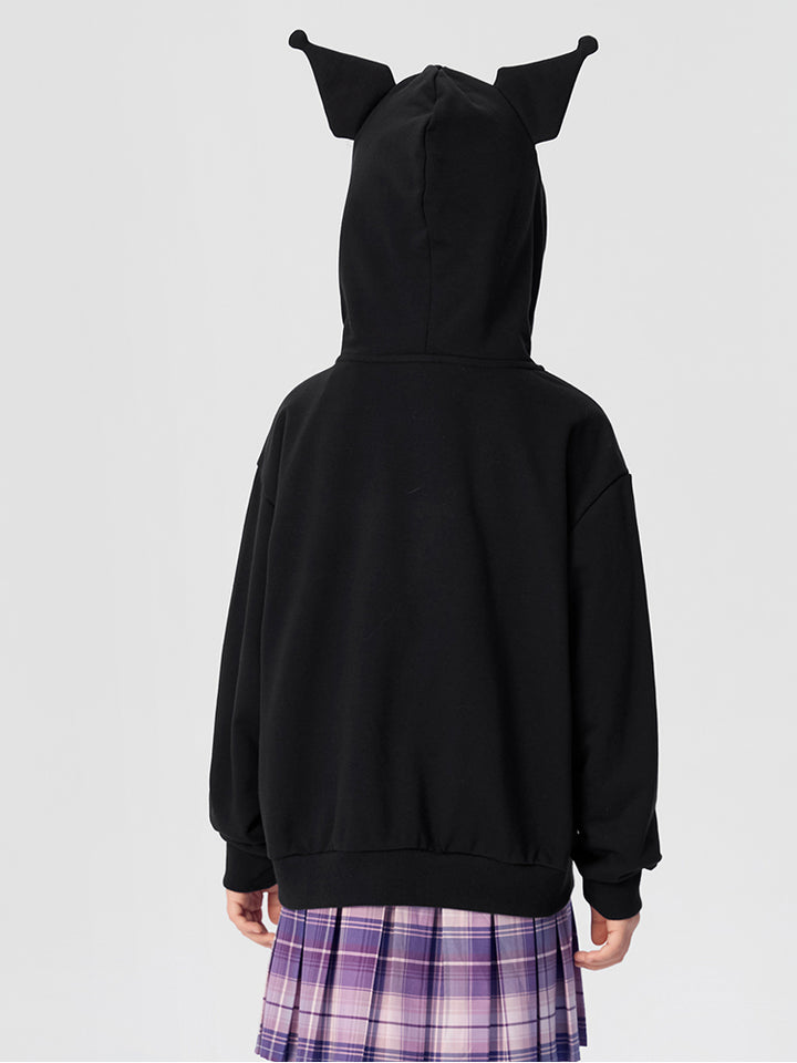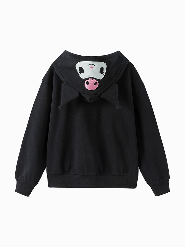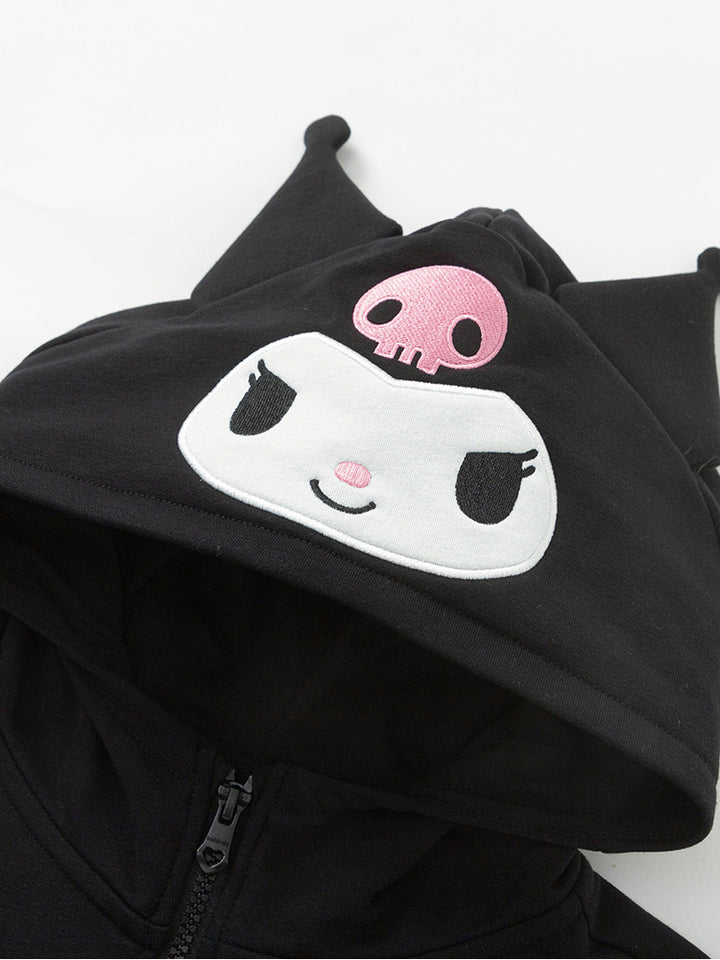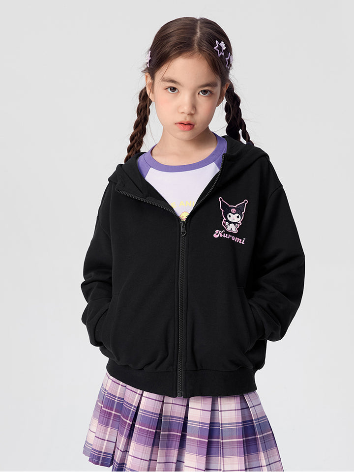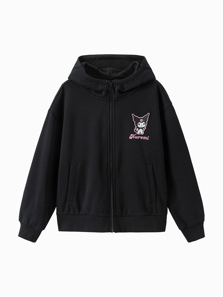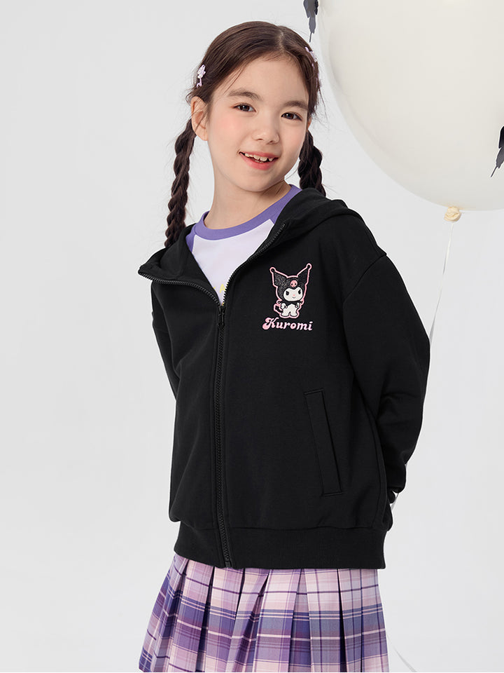 جاكيت رياضي بناتي بأكمام طويلة، مزين بتفاصيل مطرزة، يأتي بجيوب، سحاب للإغلاق وبياقة هودي متصلة