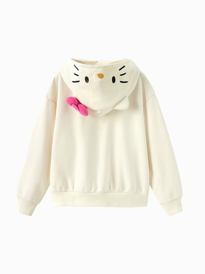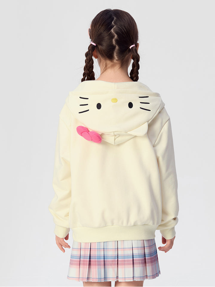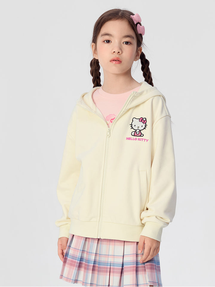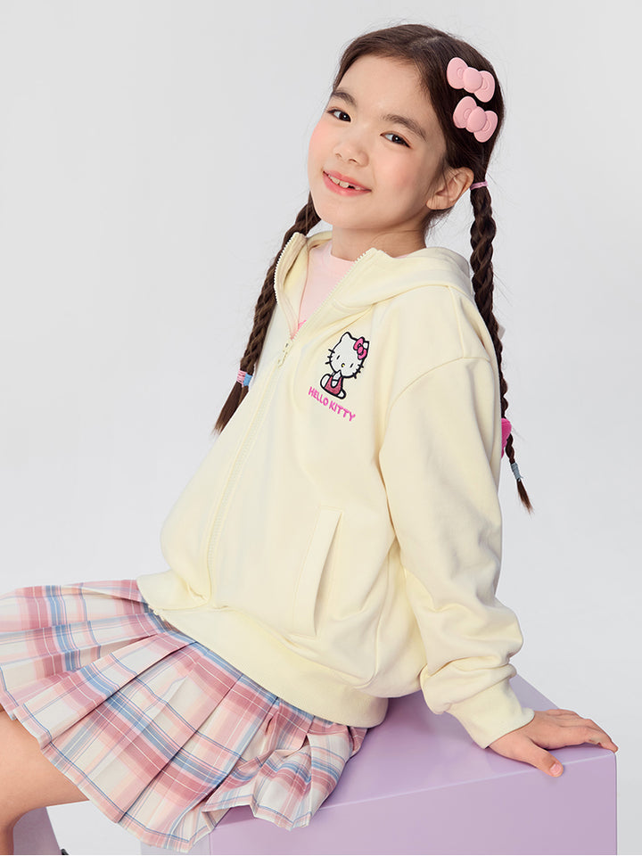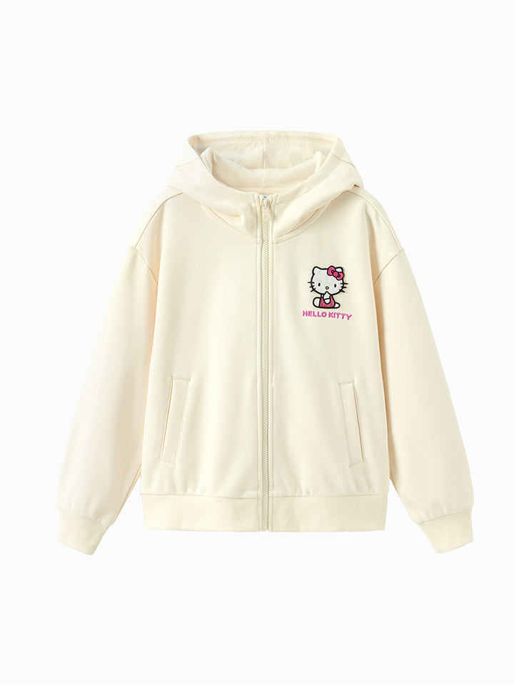 جاكيت رياضي بناتي بأكمام طويلة، مزين بتفاصيل مطرزة، يأتي بجيوب، سحاب للإغلاق وبياقة هودي متصلة
