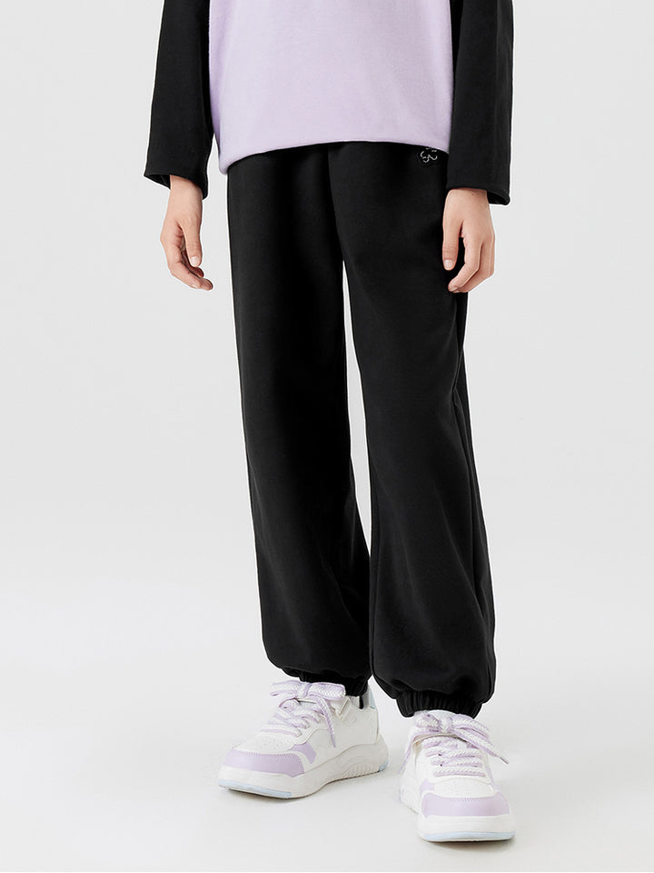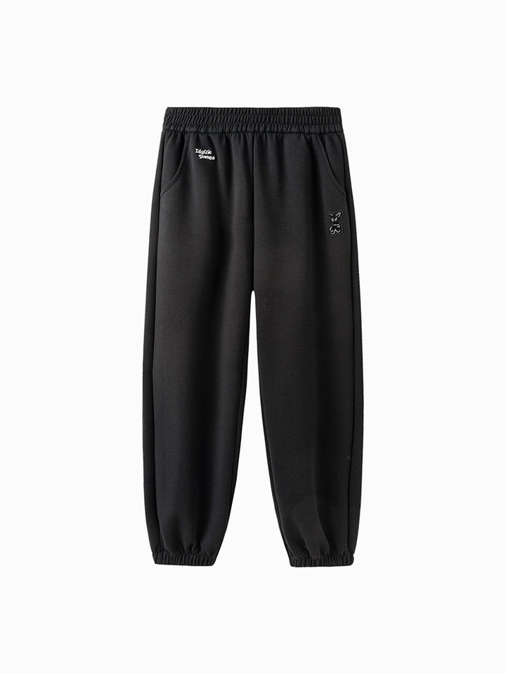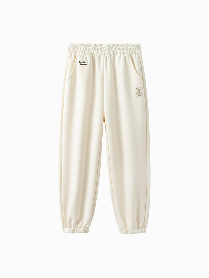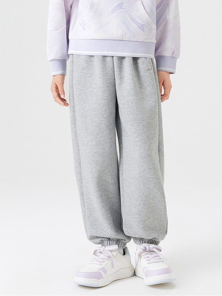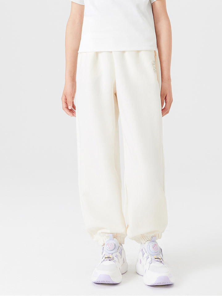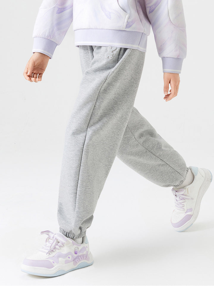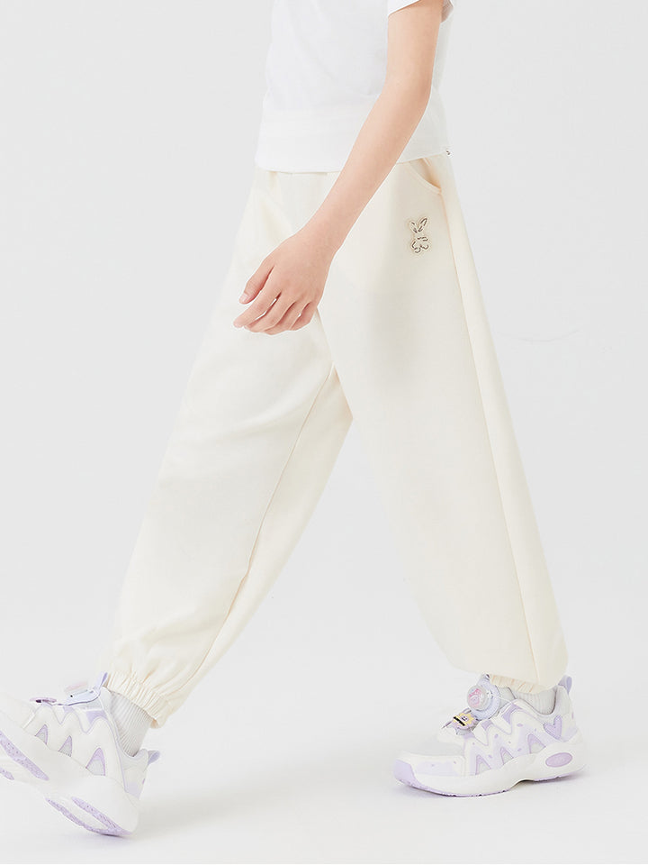 بنطلون رياضي بناتي مزين بتفاصيل مطرزة صغيرة، يأتي بجيوب وبخصر مطاطي
