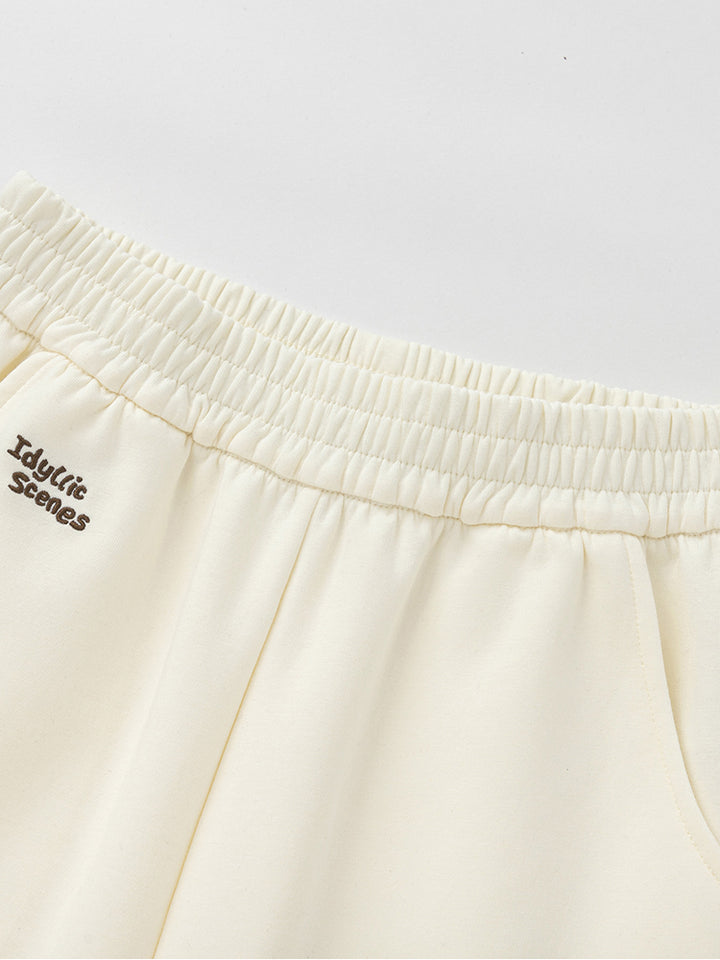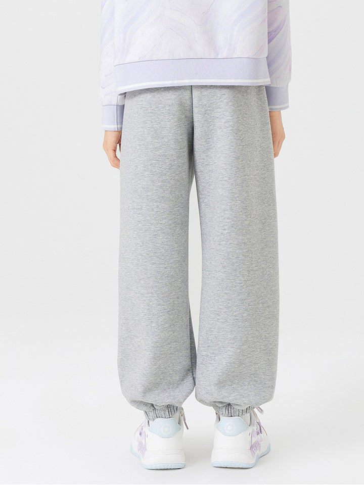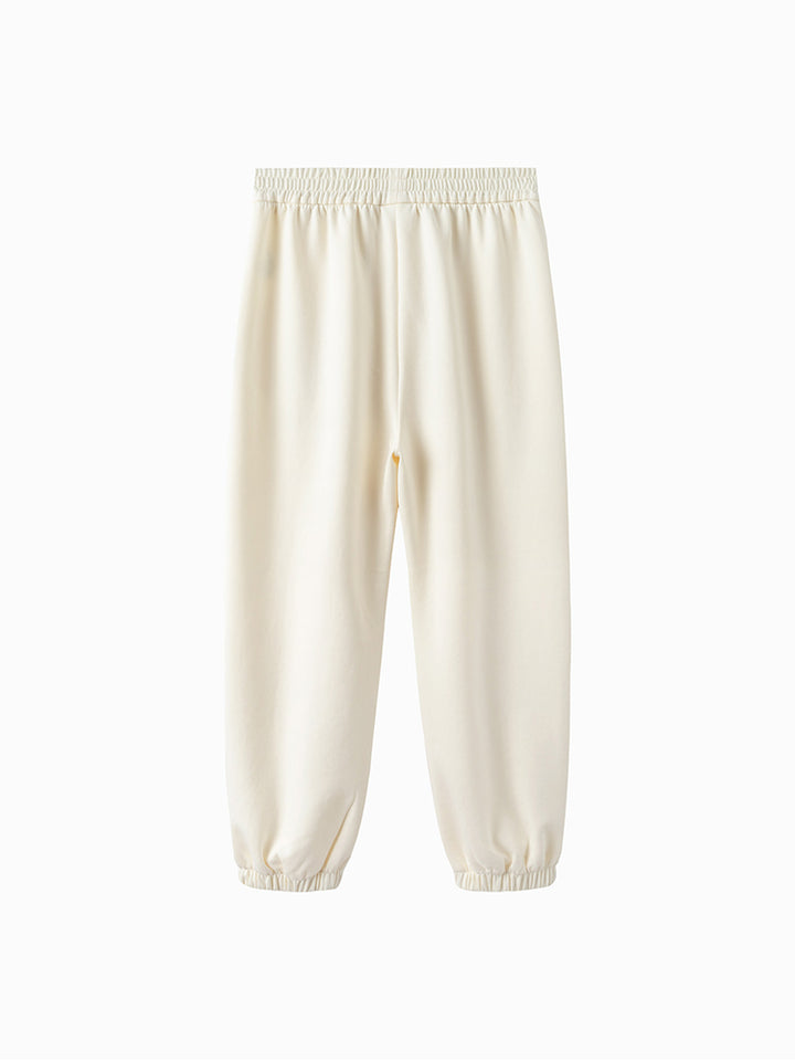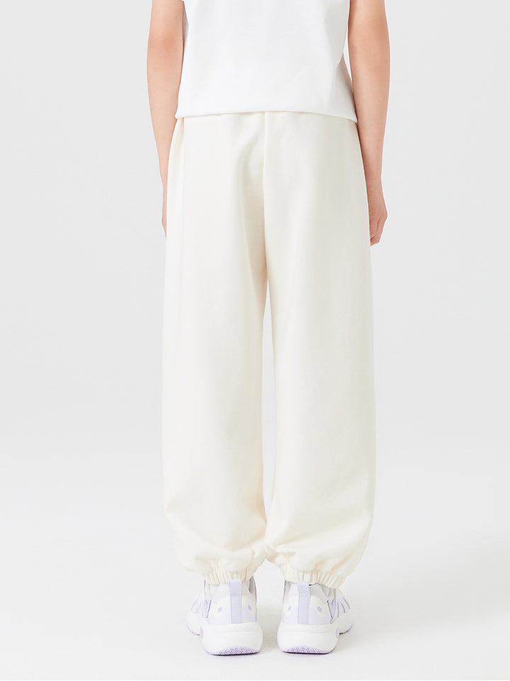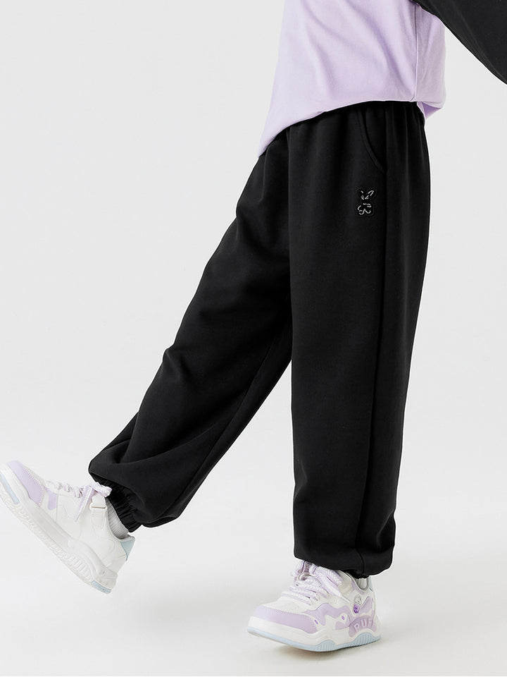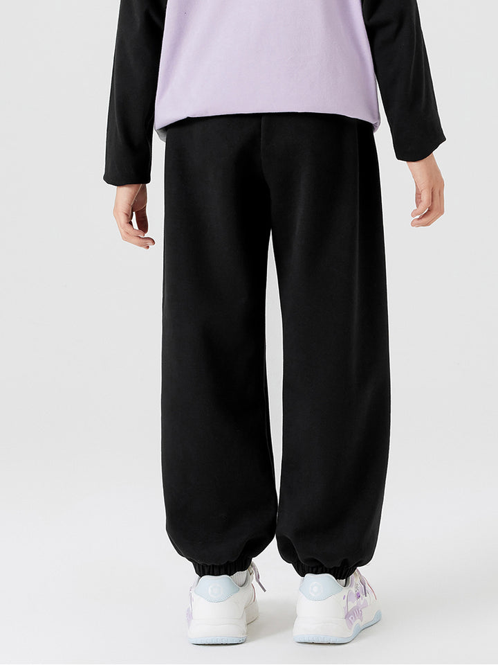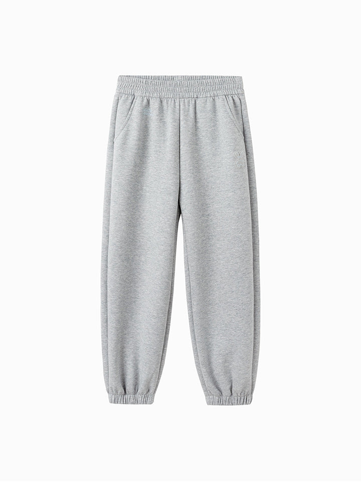 بنطلون رياضي بناتي مزين بتفاصيل مطرزة صغيرة، يأتي بجيوب وبخصر مطاطي