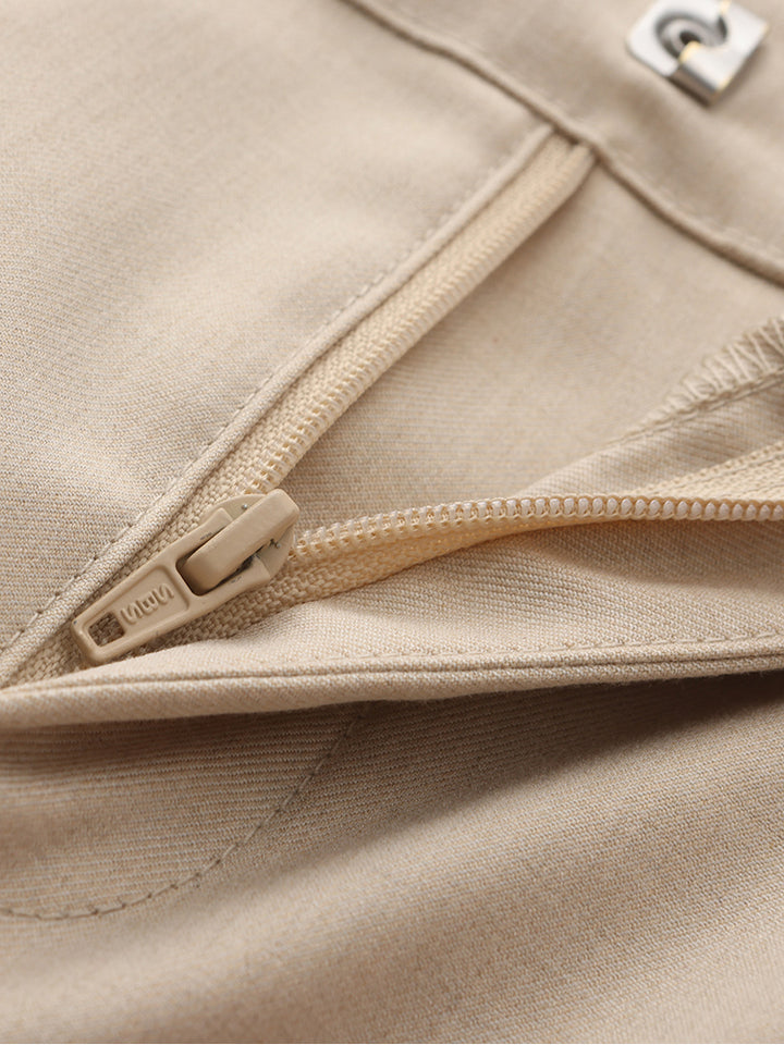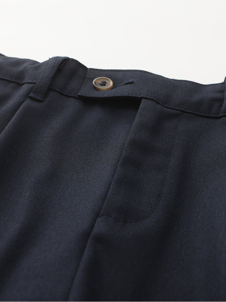 بنطلون ولادي كاجوال بنمط ذو لون موحد سادة، يأتي بجيوب من الجهتين الأمامية والخلفية وبزر وسحاب للإغلاق من الجهة الأمامية