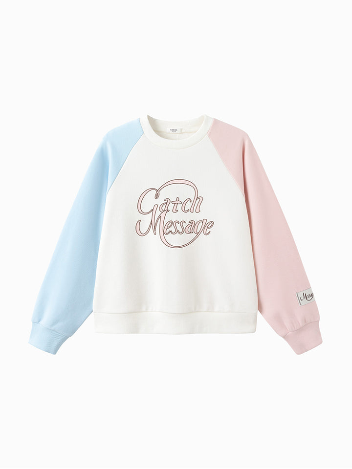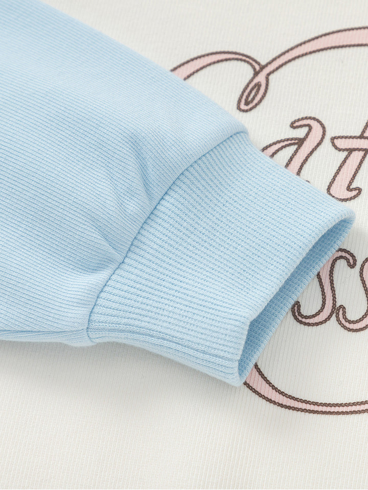بلوزة سويت شيرت بناتي بأكمام طويلة، مزينة بطبعة وتأتي بياقة مدورة الشكل
