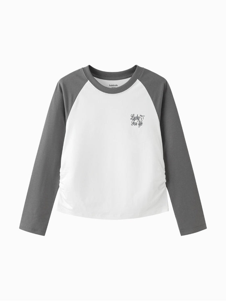 توب بأكمام طويلة بألوان متباينة وطبعة أمامية جريئة لإطلالة كاجوال ملفتة.