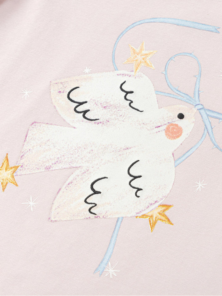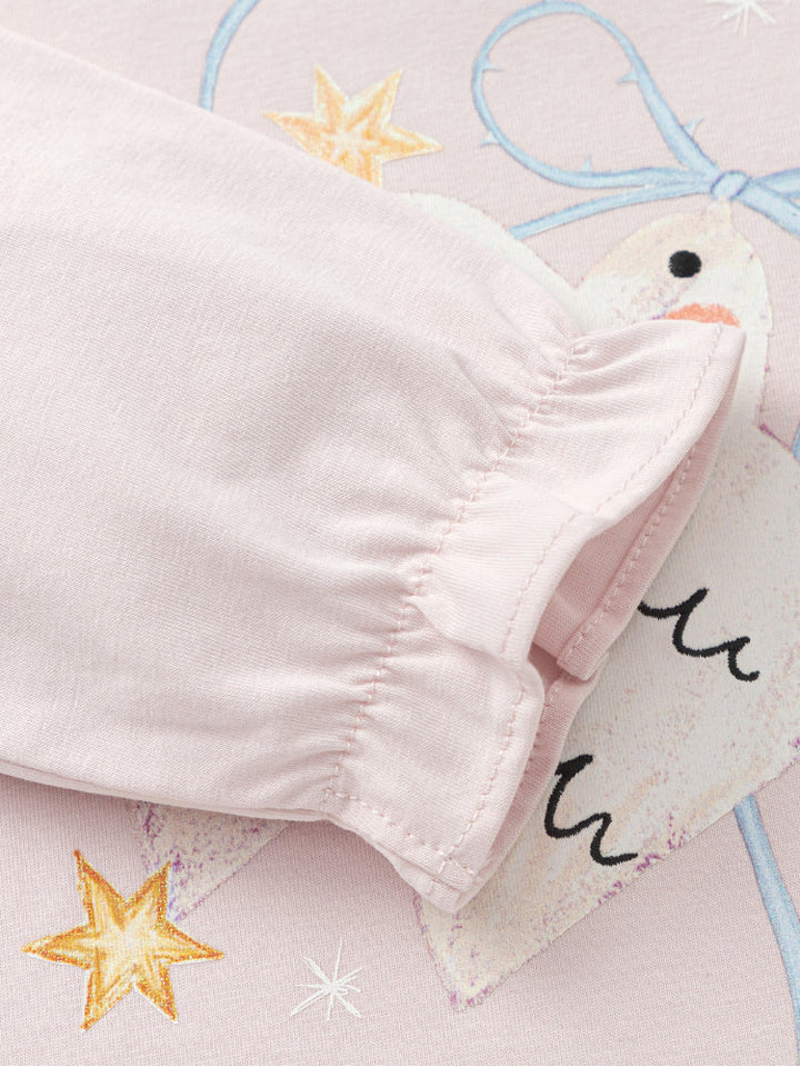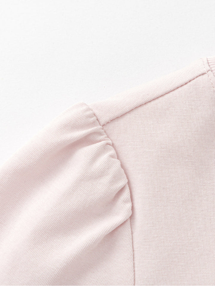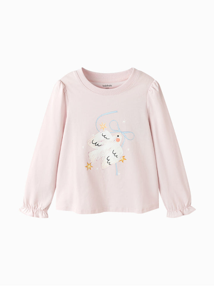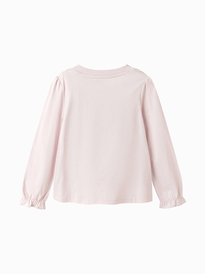 توب بأكمام طويلة مكشكشة بخفة وطبعة أمامية جذابة.