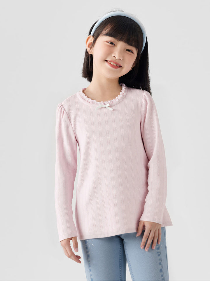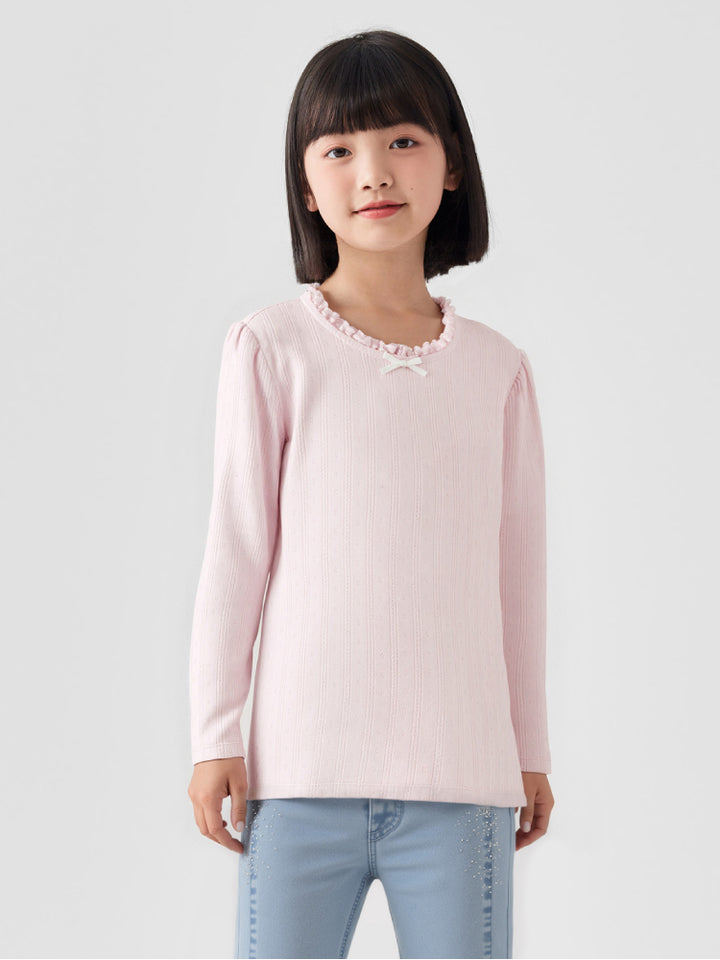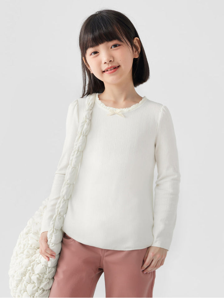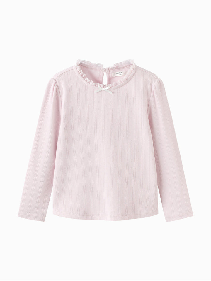 توب بأكمام طويلة من قماش مضلع مزين بربطة أنيقة عند الرقبة.