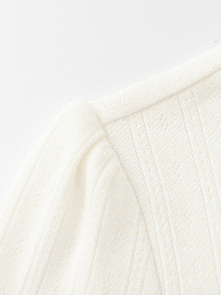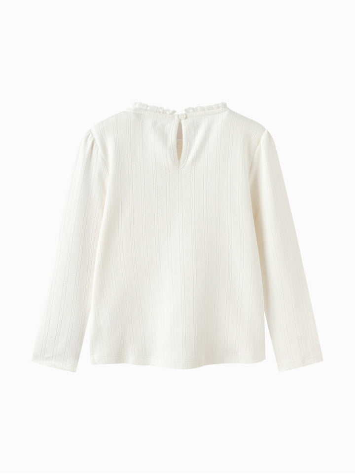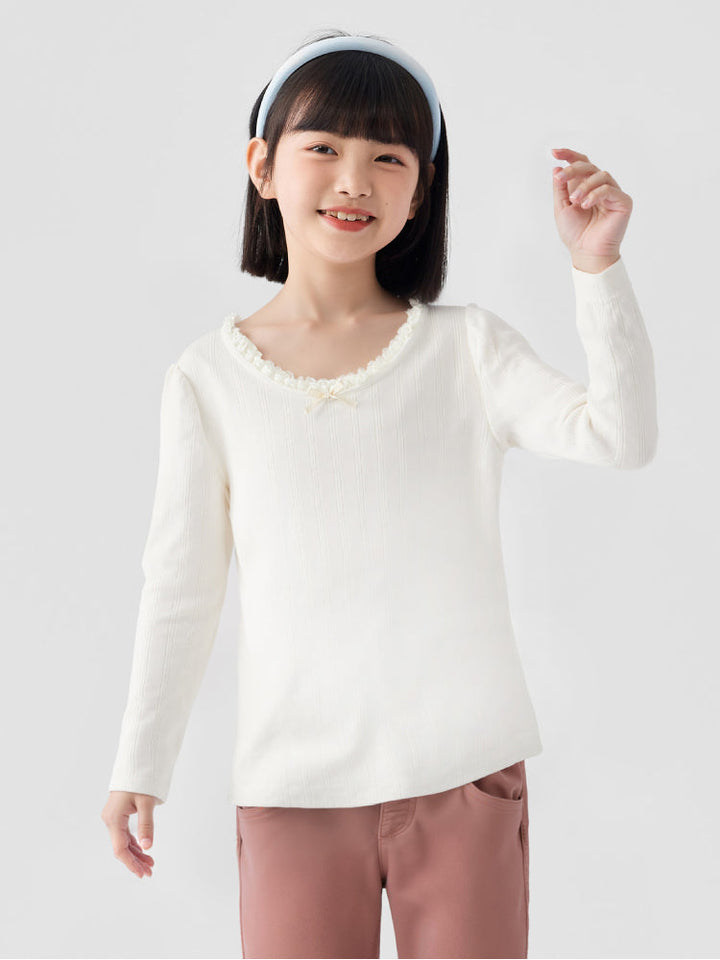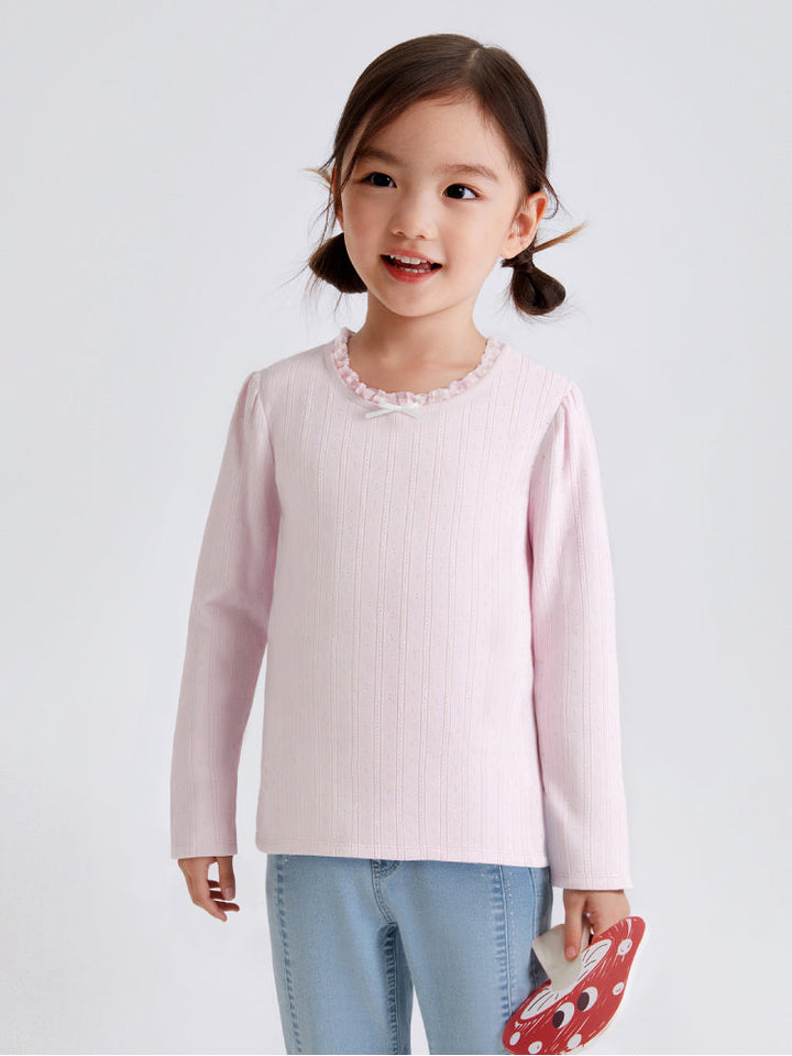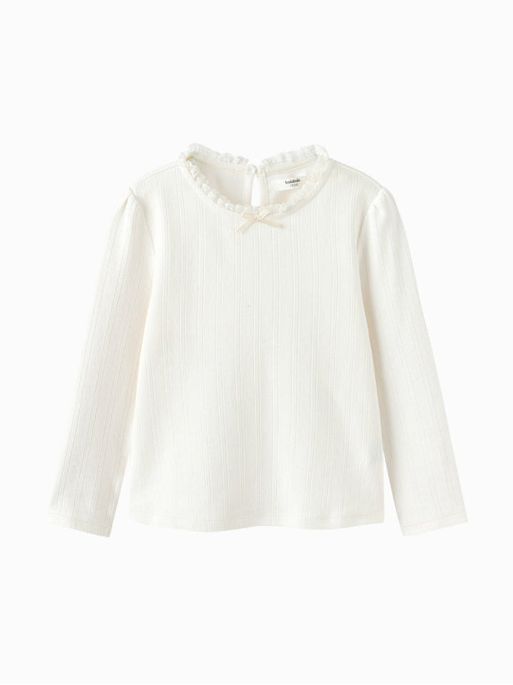 توب بأكمام طويلة من قماش مضلع مزين بربطة أنيقة عند الرقبة.