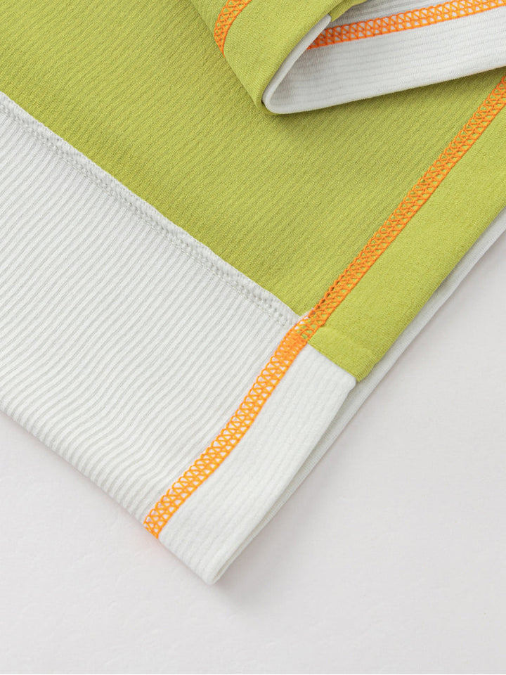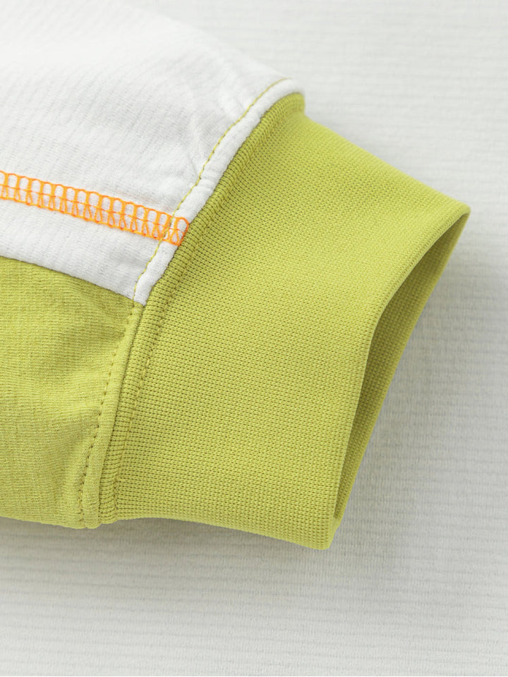 بلوزة كاجوال بأكمام طويلة مع أكمام متباينة وياقة دائرية، مزينة بطبعة كبيرة في الخلف تمنح إطلالة عصرية ولافتة للاستخدام اليومي.