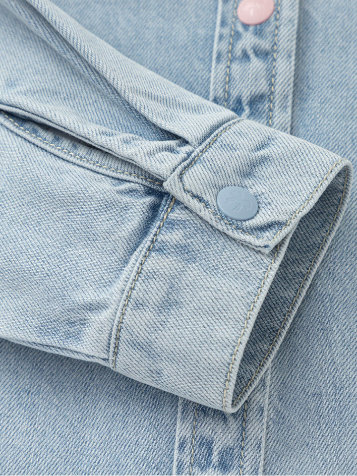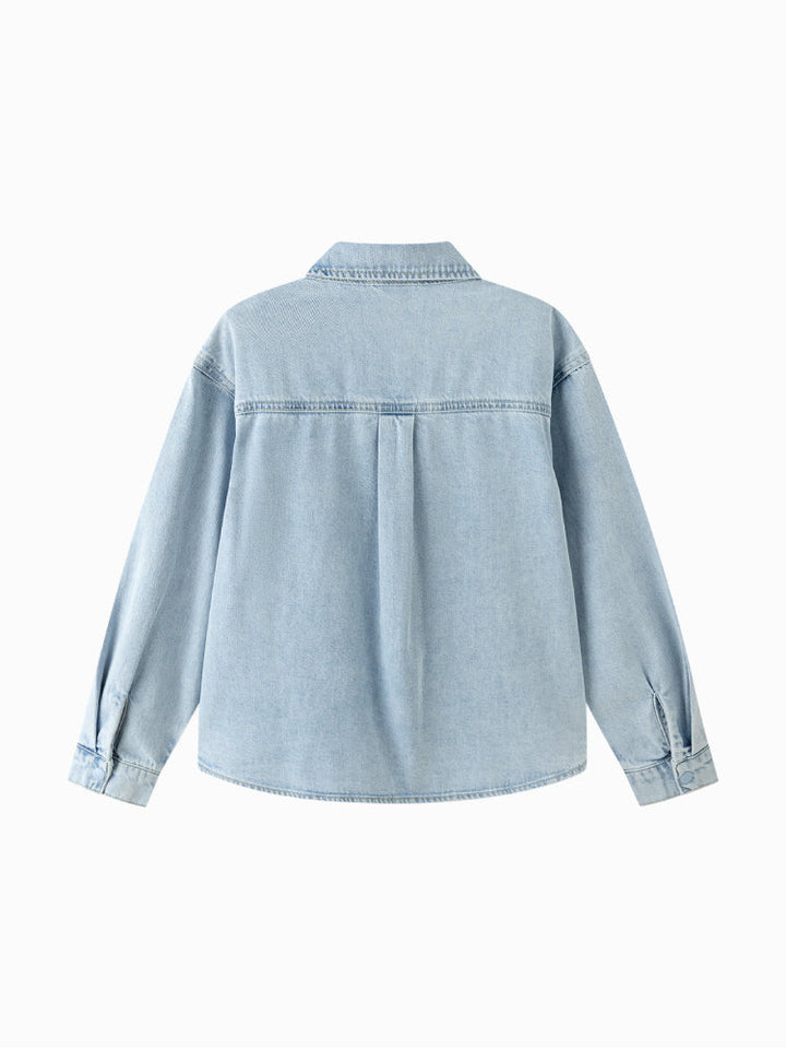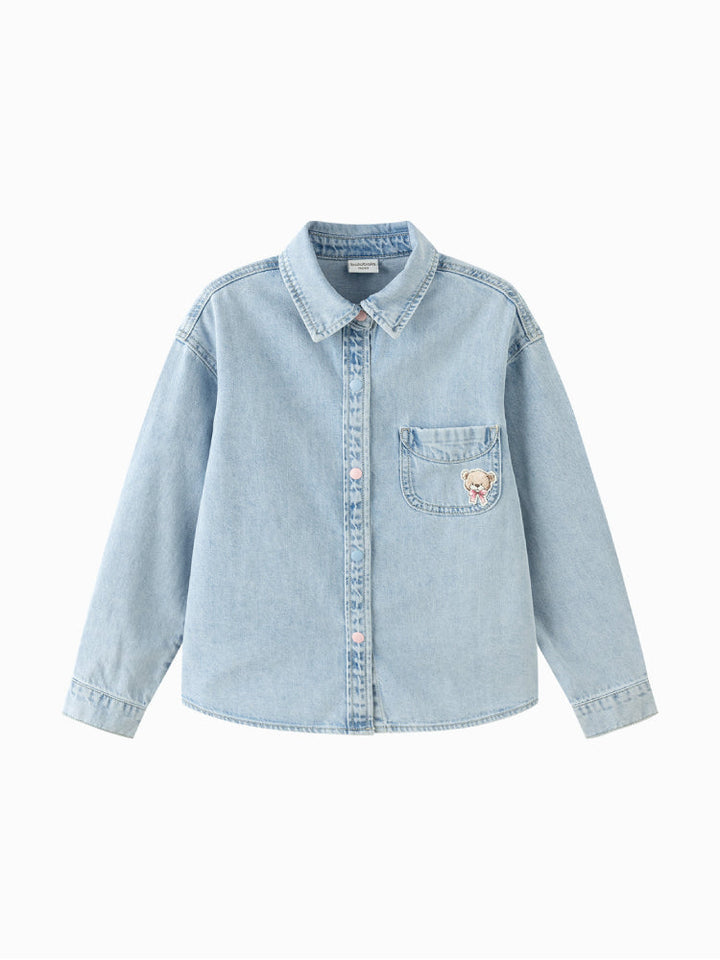 قميص دنيم مع جيب على الصدر وطبعة للبنات