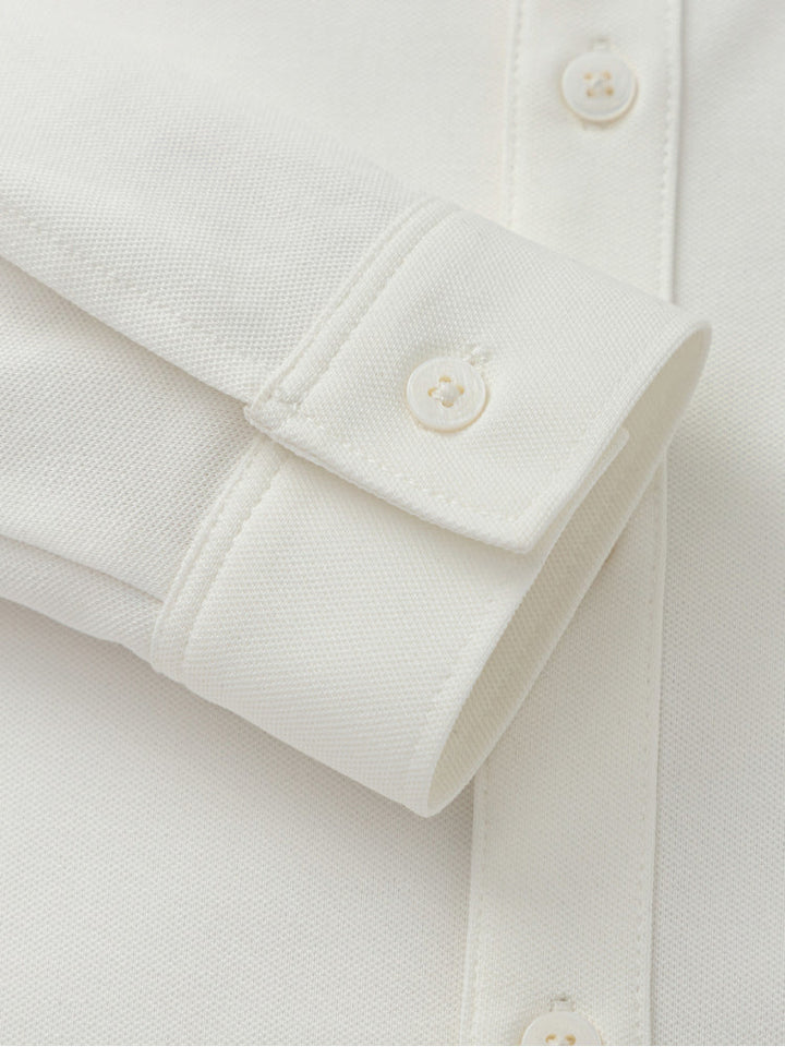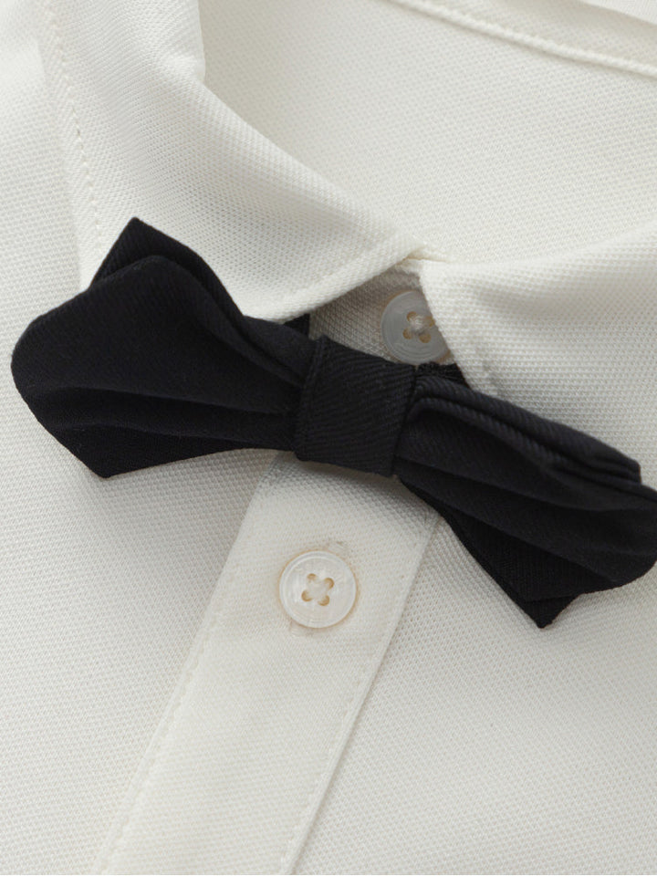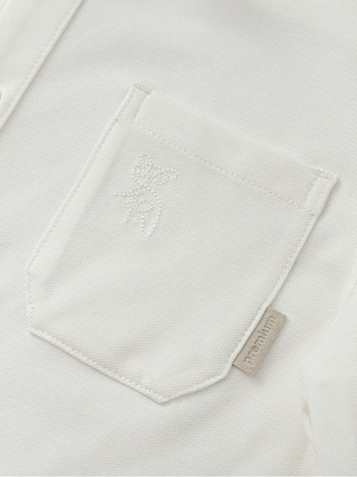 قميص أنيق بأكمام طويلة مزود بياقة كلاسيكية وأزرار أمامية وجيب على الصدر، مرفق بربطة عنق قابلة للإزالة لإضفاء لمسة من التميز على الإطلالة.