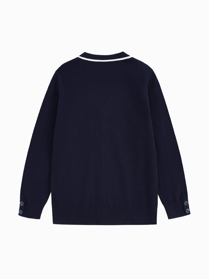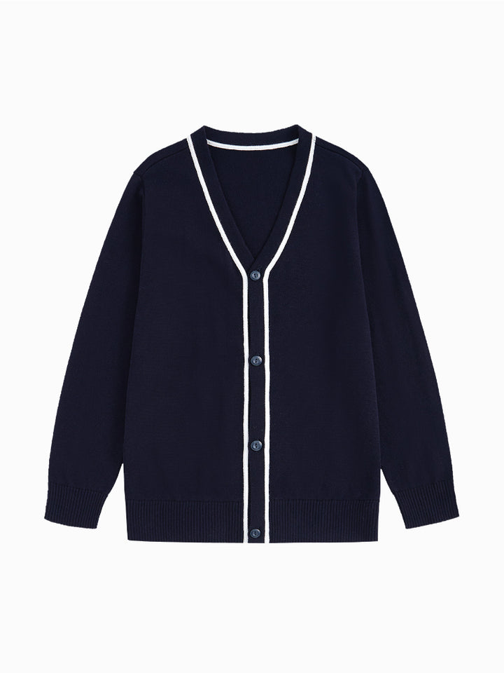 كارديغان محبوك بأكمام طويلة - تفاصيل خطوط متباينة وأزرار أمامية للإغلاق للأولاد
