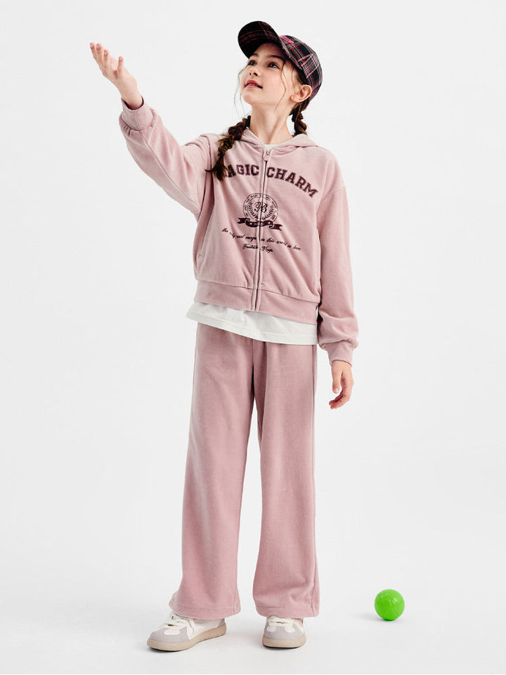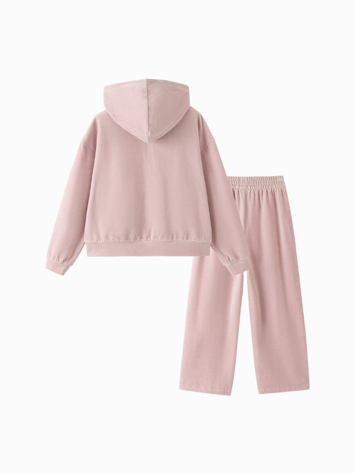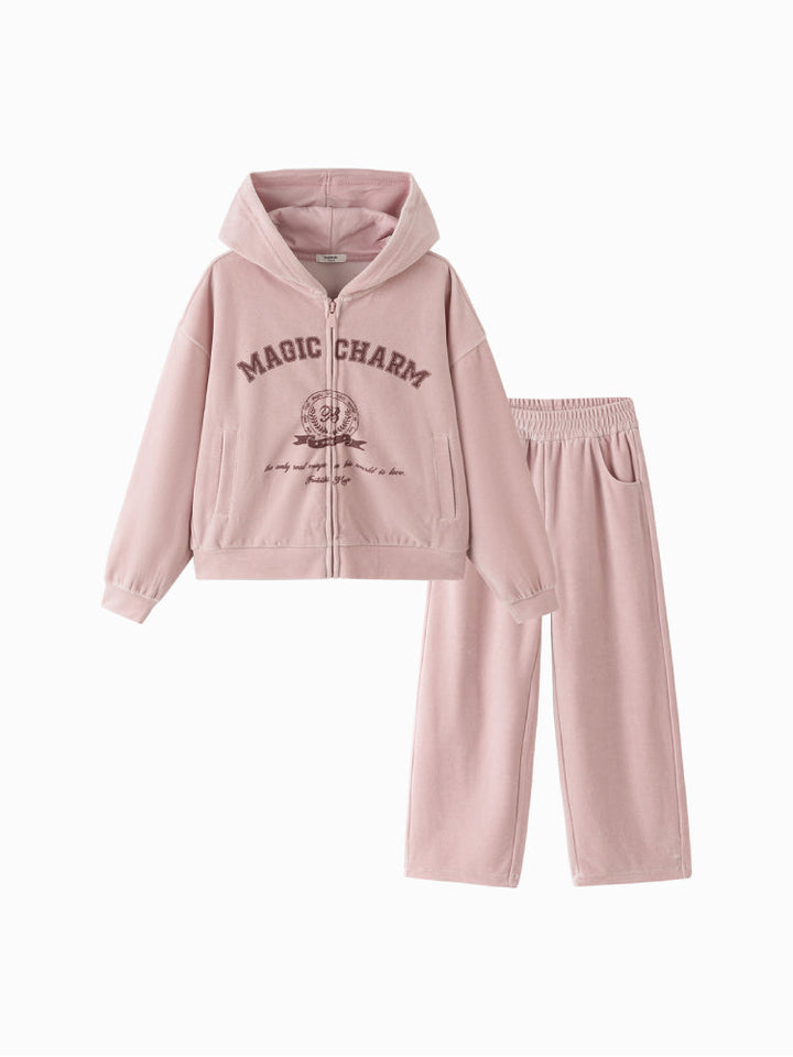 طقم هودي بسحاب مع بنطال مطبوع للبنات