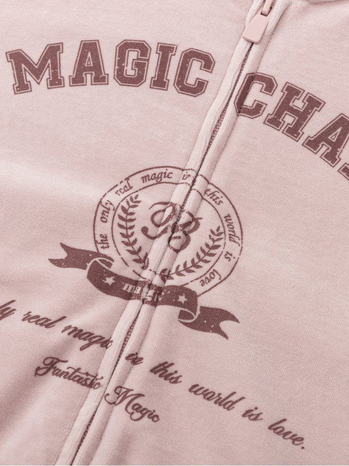 طقم مكون من هودي بسحاب أمامي مزين بطبعة، مع بنطال بخصر مطاطي متناسق، يجمع بين الراحة واللمسة العصرية الكاجوال.