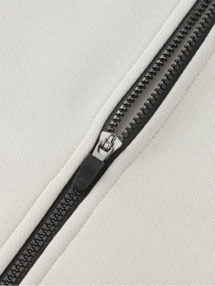 طقم عملي يضم جاكيت بسحاب أمامي مع أكمام بلوحات متباينة وجيوب جانبية عملية، يكتمل مع بنطلون كارغو رياضي مزود بجيوب جانبية وحواف مطاطية لتصميم مريح يناسب الإطلالات اليومية.