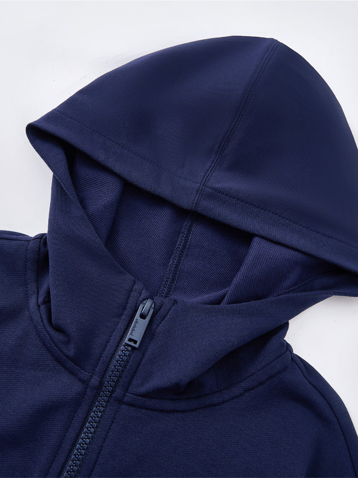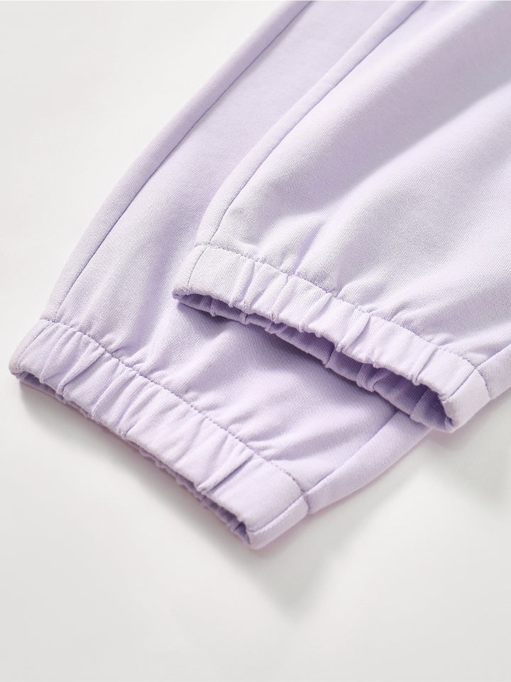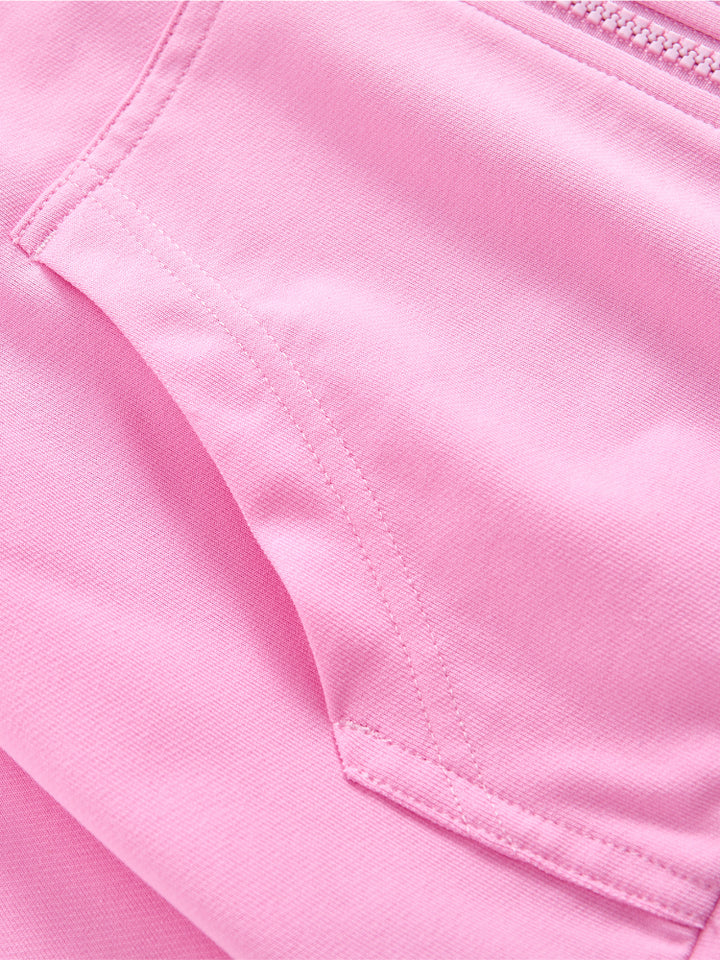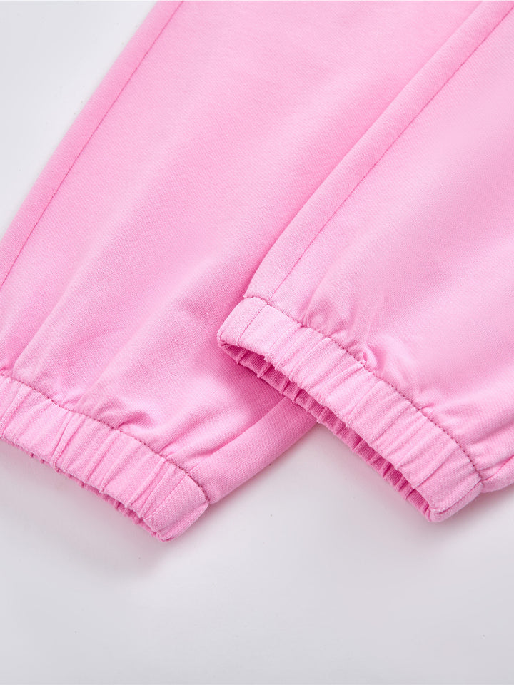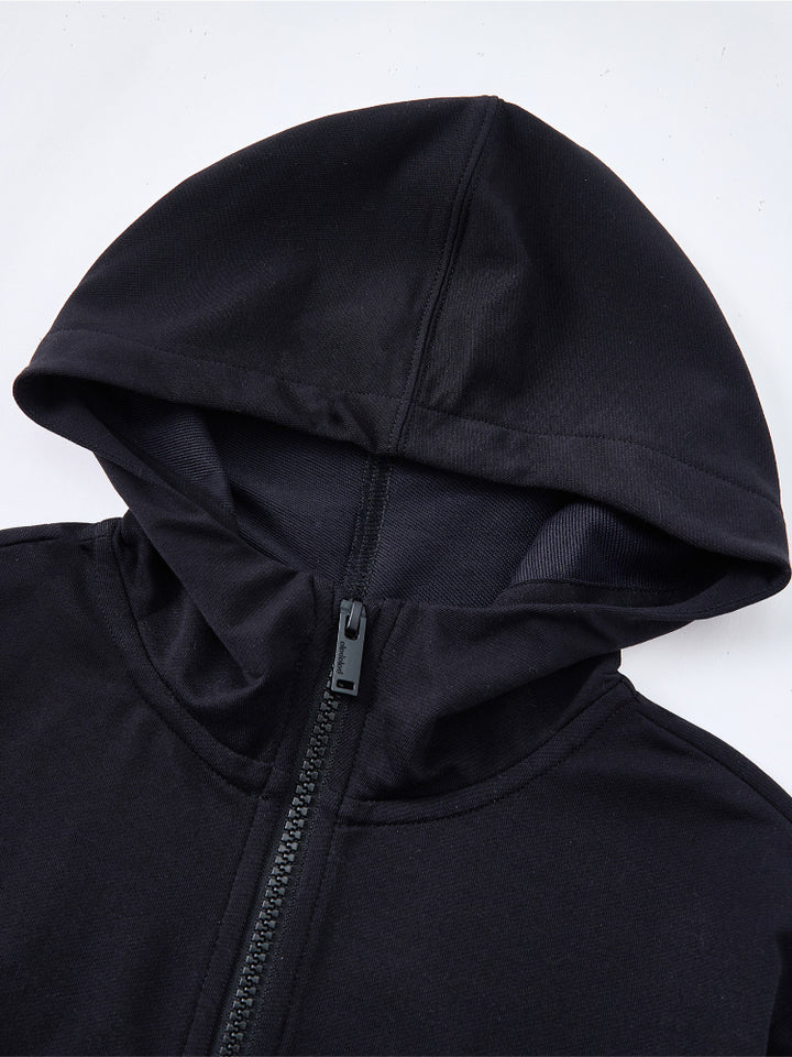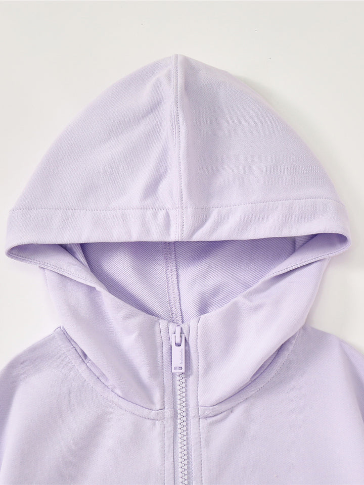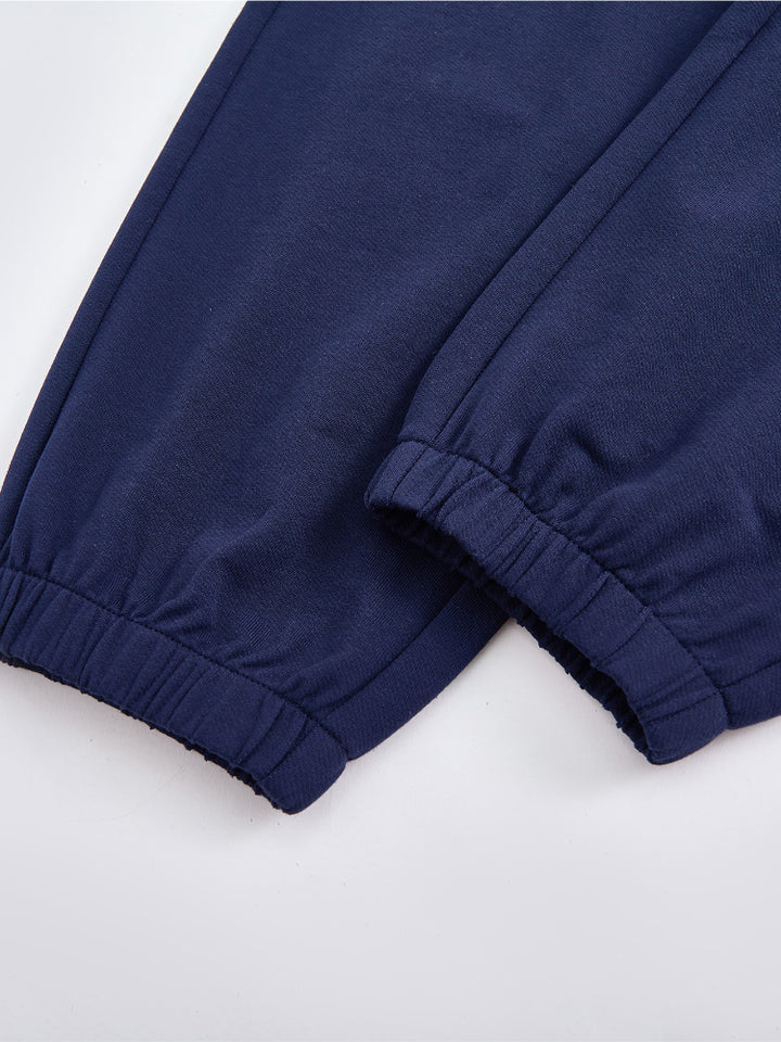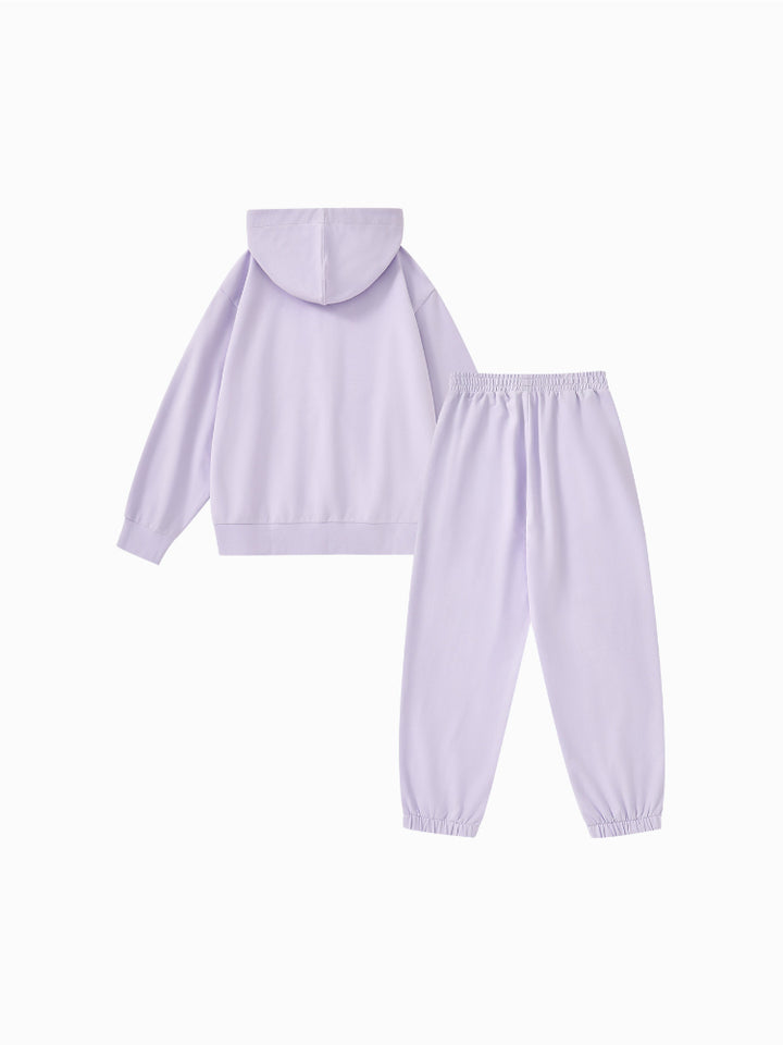 يتكون هذا الطقم المريح من هودي بأكمام طويلة بلون موحد مع تطريز أمامي بنفس اللون، وسحاب أمامي، وجيوب أمامية، وقبعة مرفقة. يأتي مع بنطلون رياضي كاجوال بلون متناسق، مزود بجيوب وخصر مطاطي لراحة ومرونة طوال اليوم.