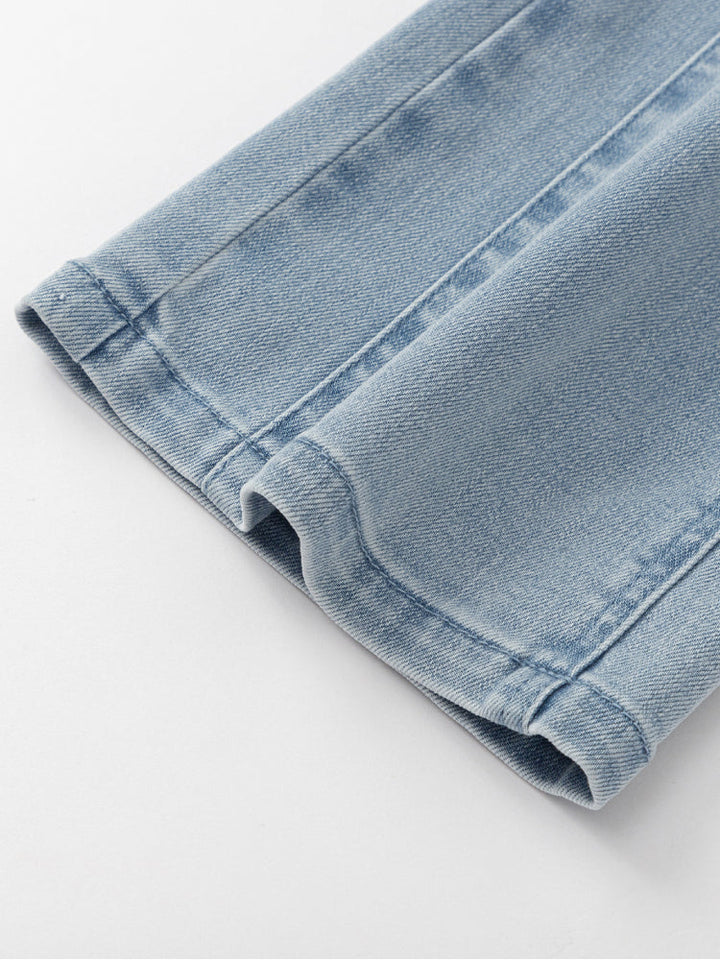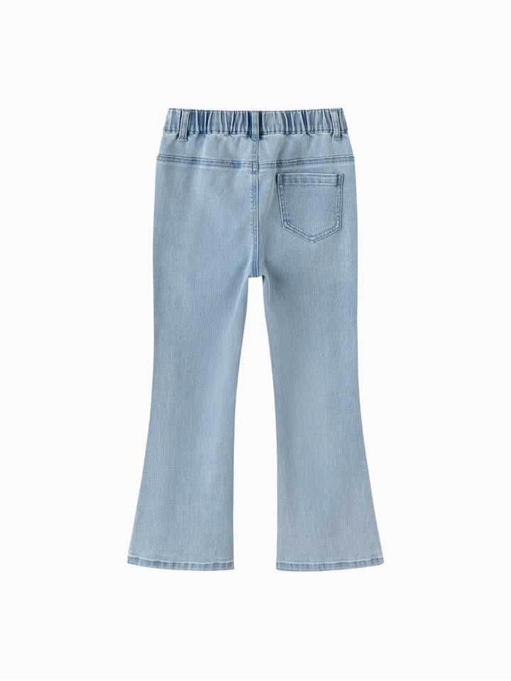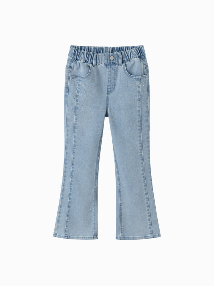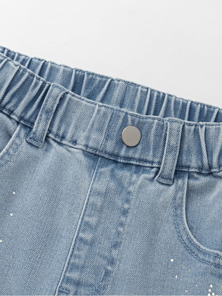 بنطلون جينز بتصميم واسع الأرجل، مزود بخصر مطاطي وتفاصيل تزيين أمامية تضيف لمسة أنيقة لإطلالة يومية عصرية.