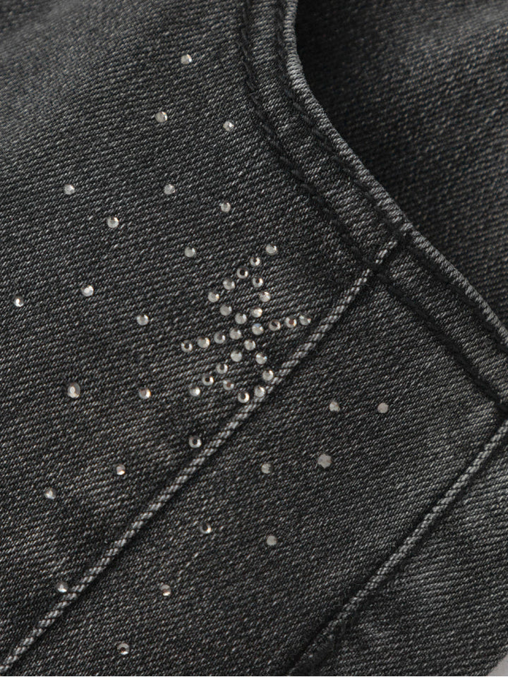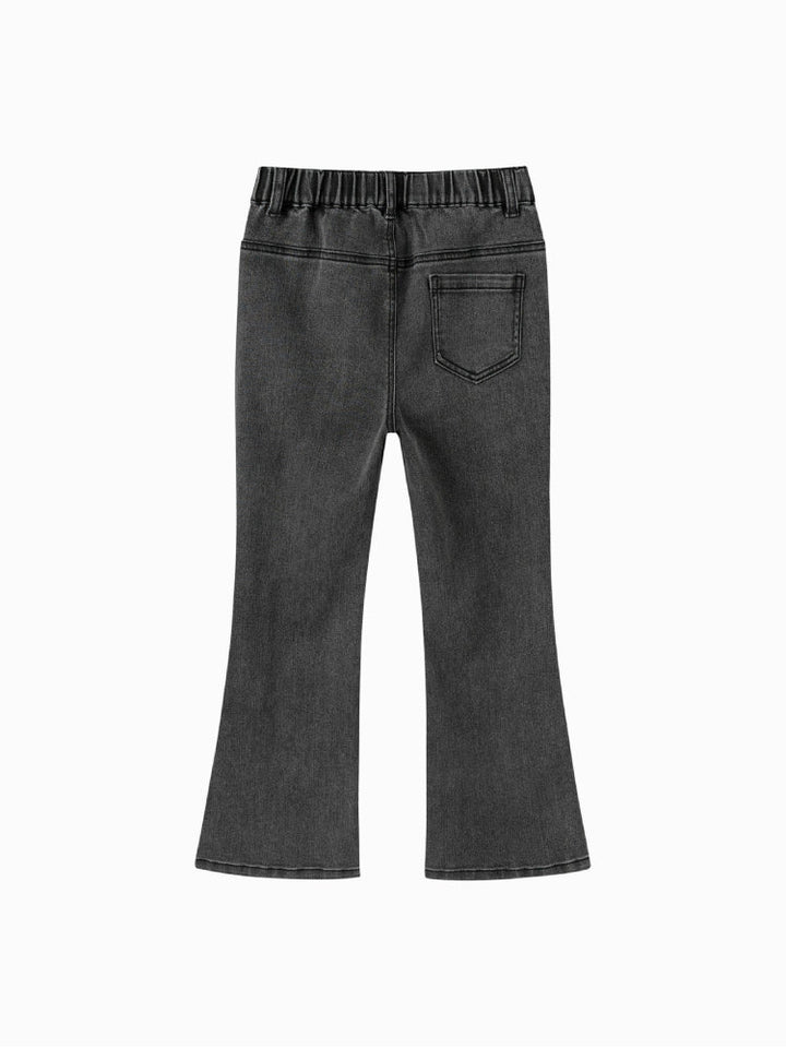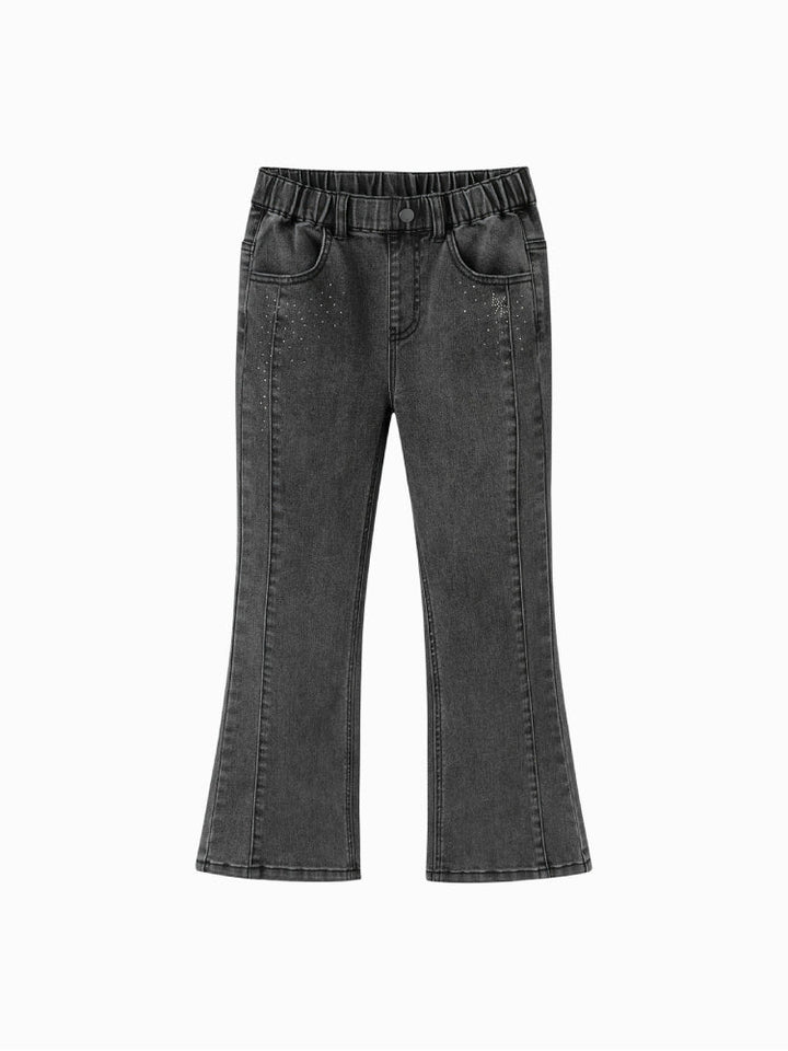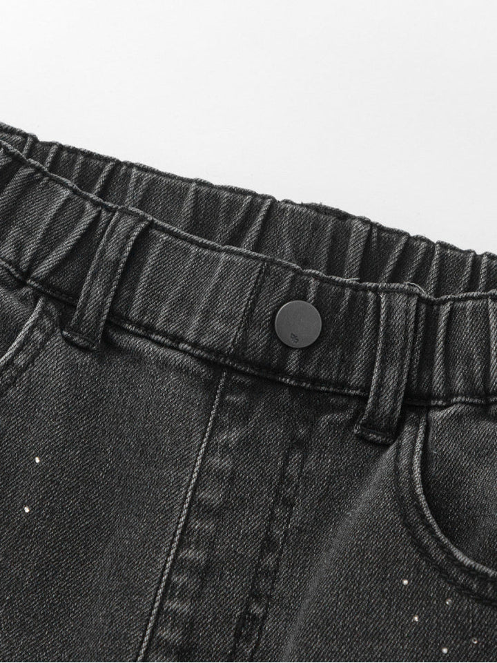 بنطلون جينز بتصميم واسع الأرجل، مزود بخصر مطاطي وتفاصيل تزيين أمامية تضيف لمسة أنيقة لإطلالة يومية عصرية.