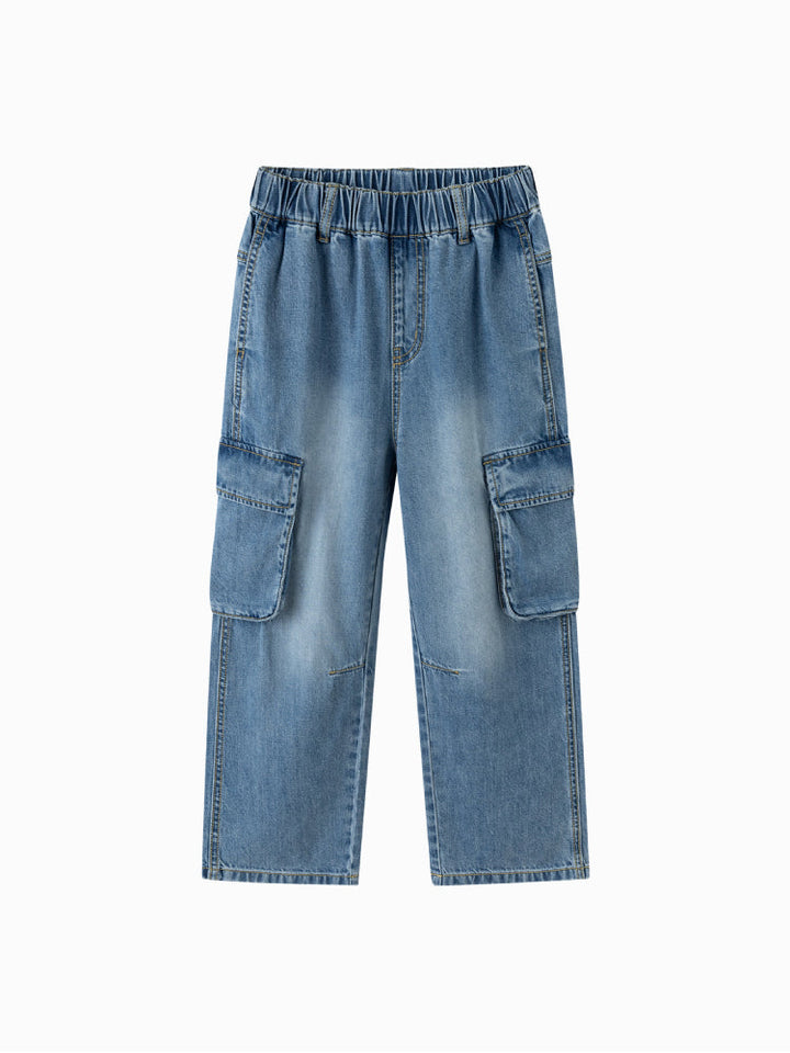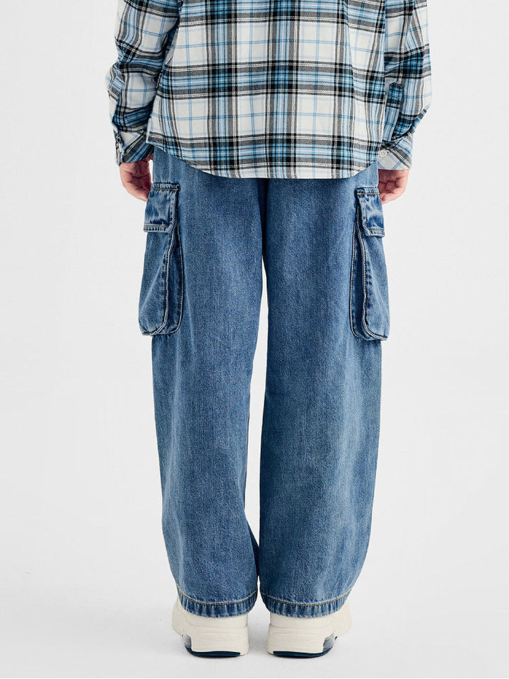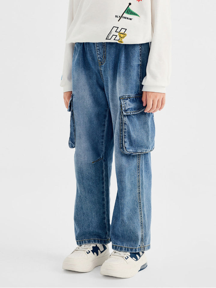 بنطلون جينز كارغو واسع الأرجل للأولاد