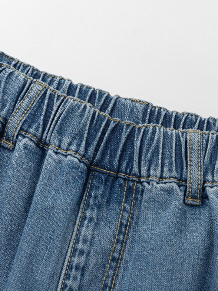 بنطلون جينز كارغو بقصة واسعة، مزود بجيوب كبيرة وخصر عملي مطاطي، يمنح مزيجًا من العملية والأسلوب العصري.