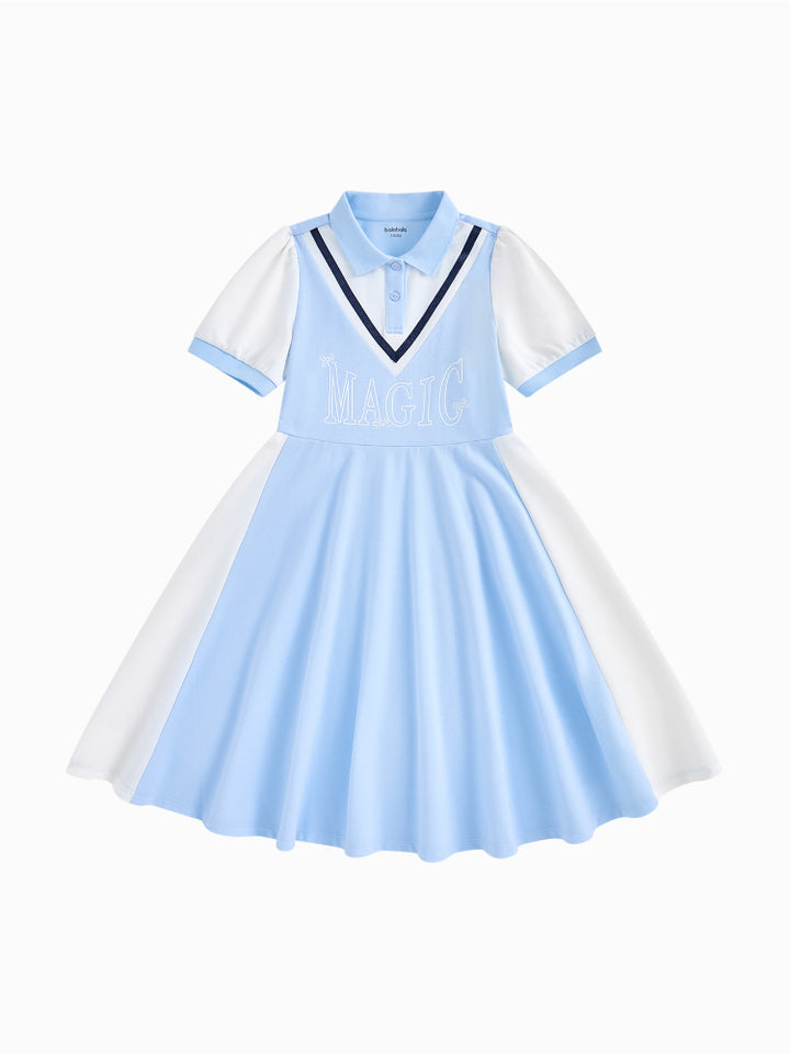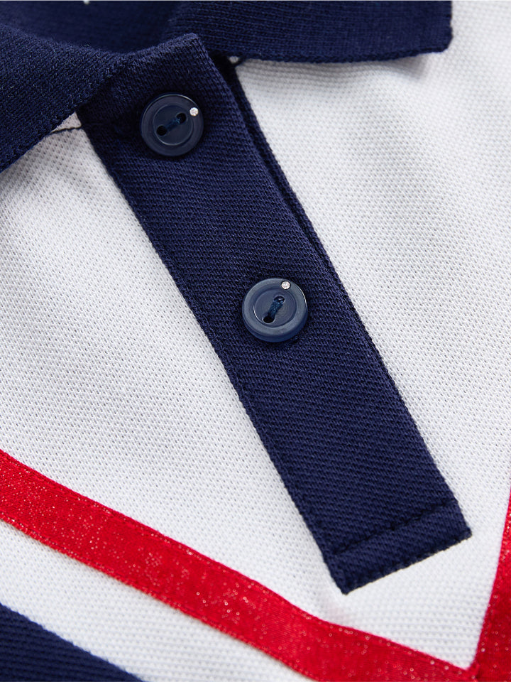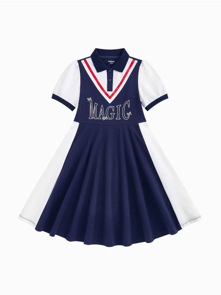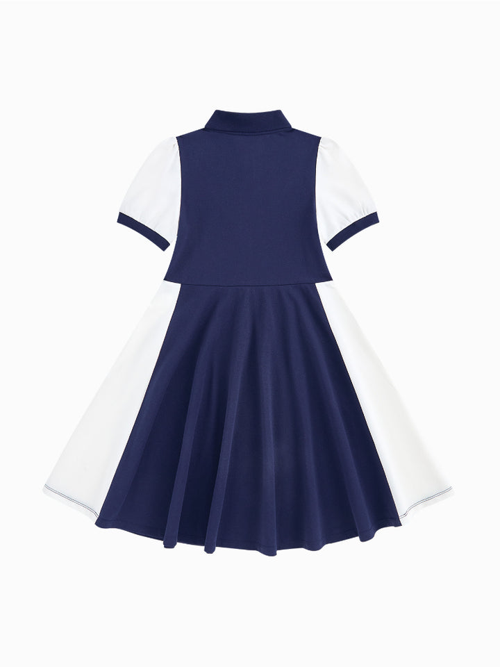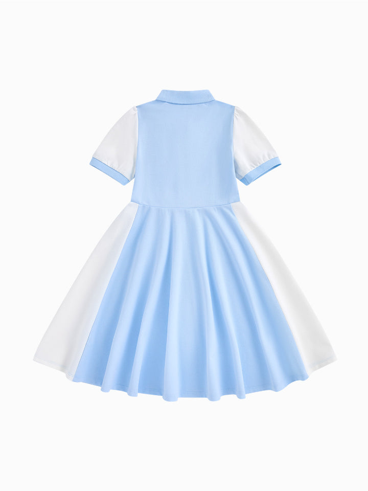 فستان بأكمام قصيرة وقصّة فضفاضة - تفاصيل ملونة مع طبعة أمامية وأزرار عند الرقبة للبنات