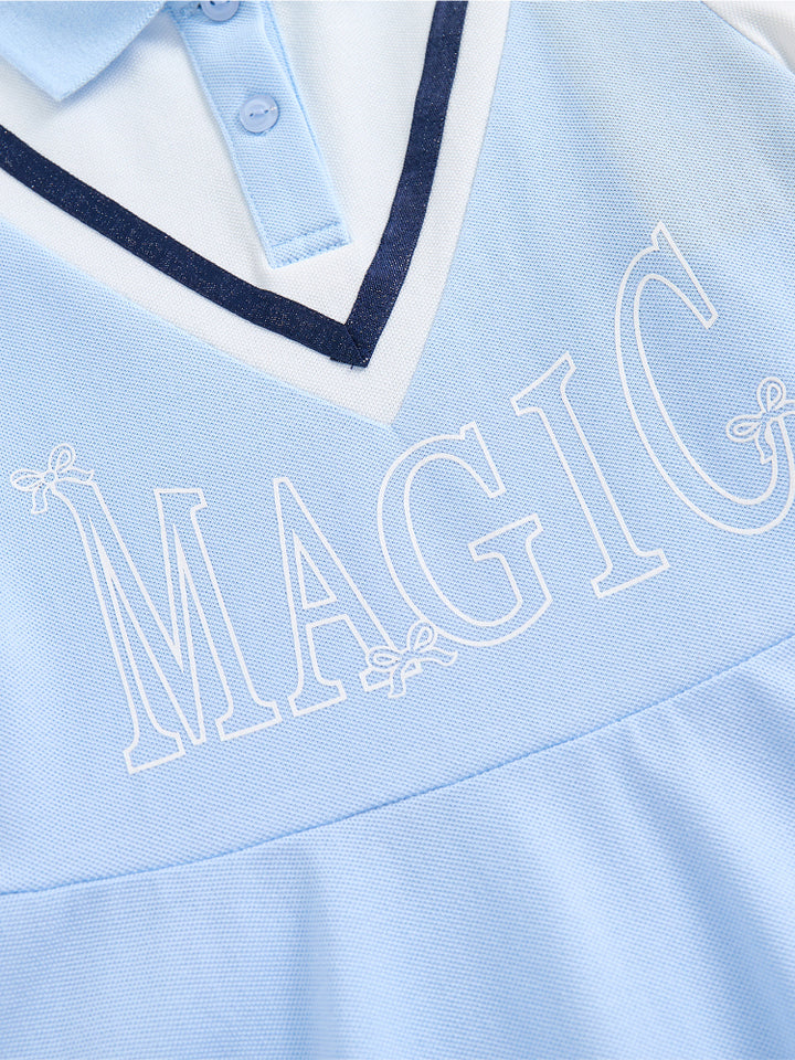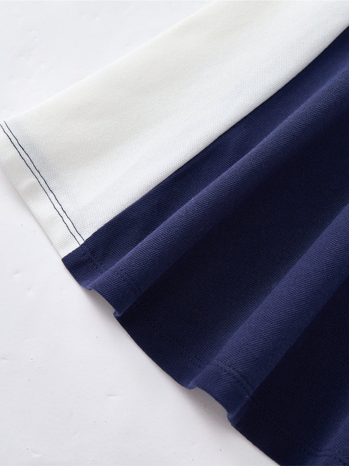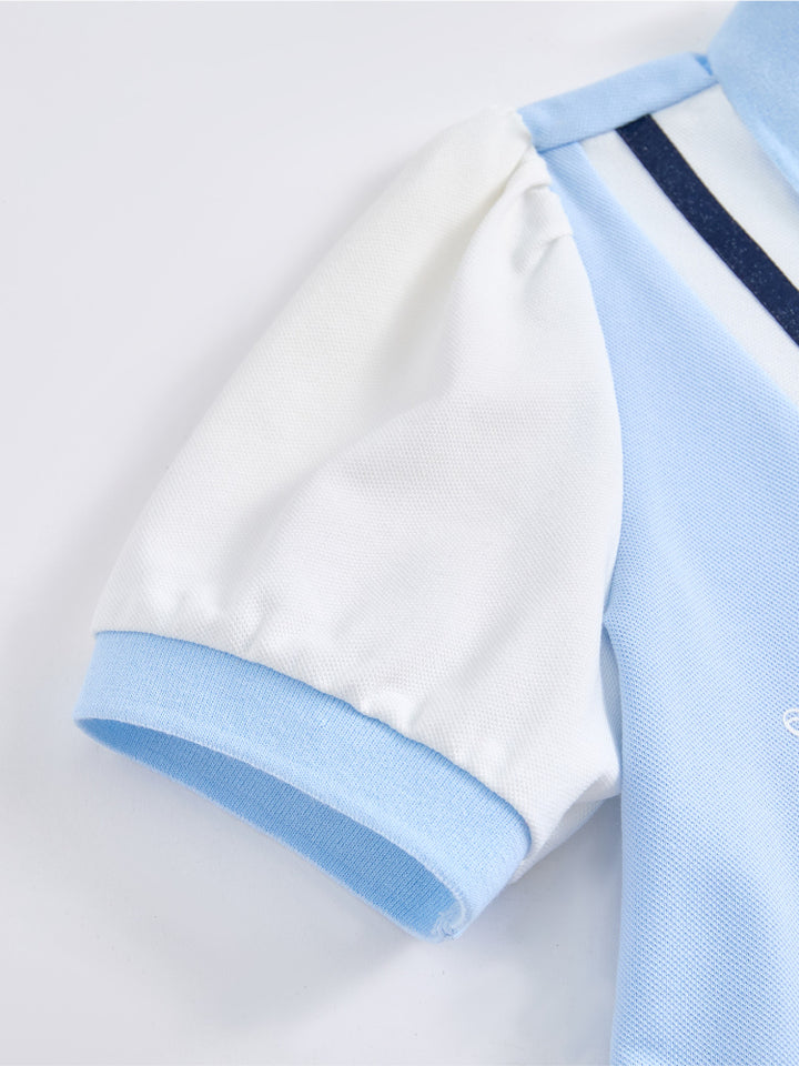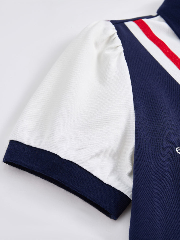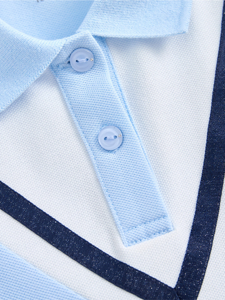 فستان بأكمام قصيرة وقصّة فضفاضة - تفاصيل ملونة مع طبعة أمامية وأزرار عند الرقبة للبنات