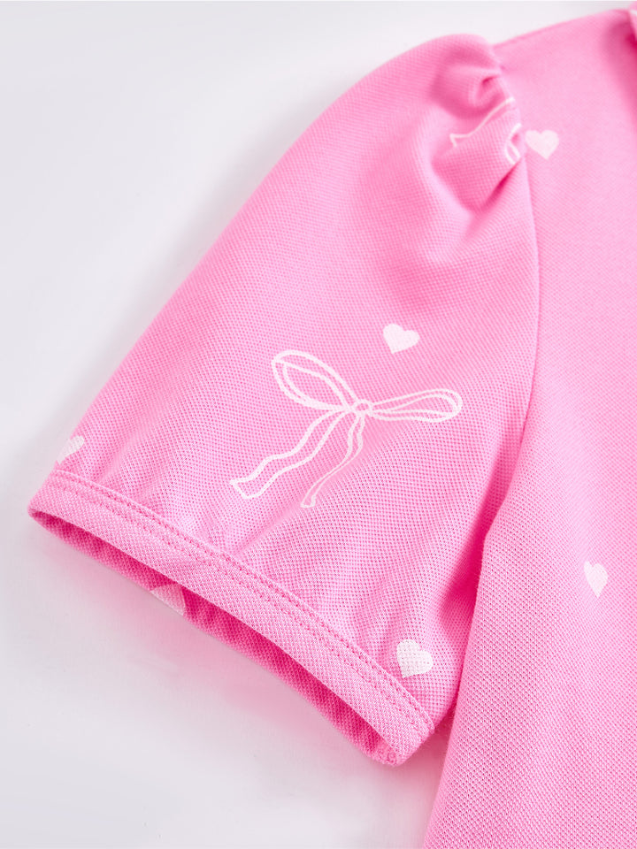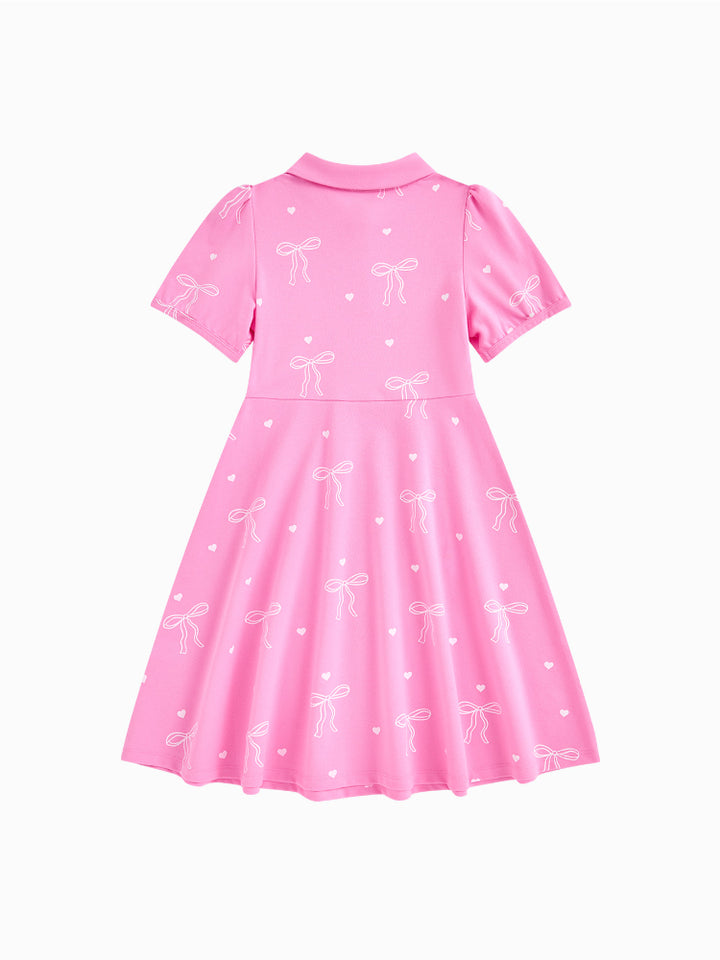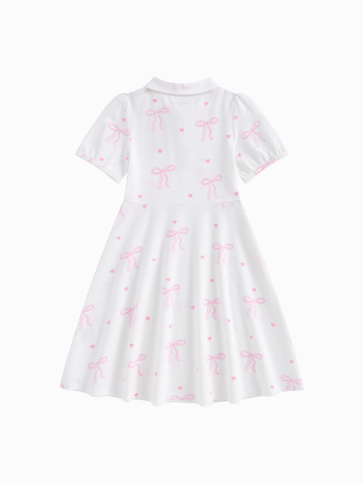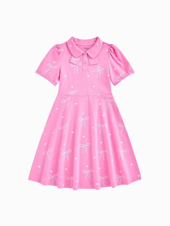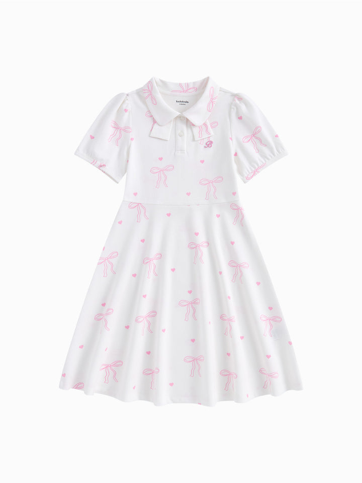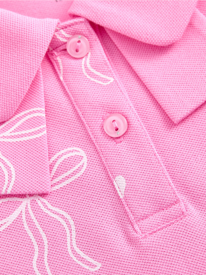 فستان فضفاض بأكمام قصيرة ونمط طبع كامل للبنات