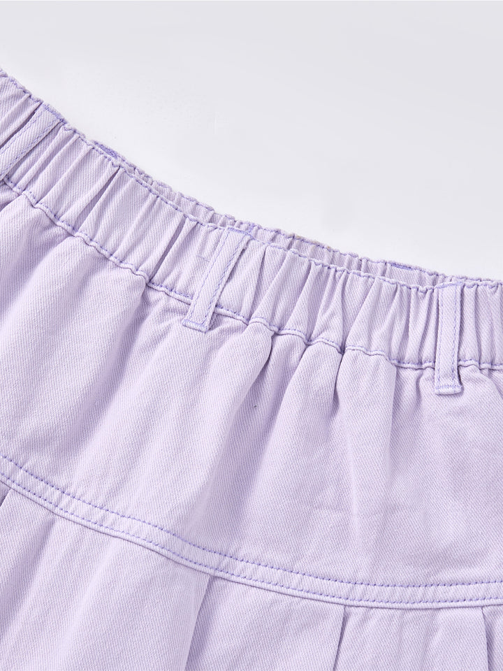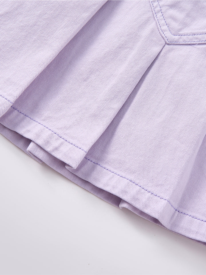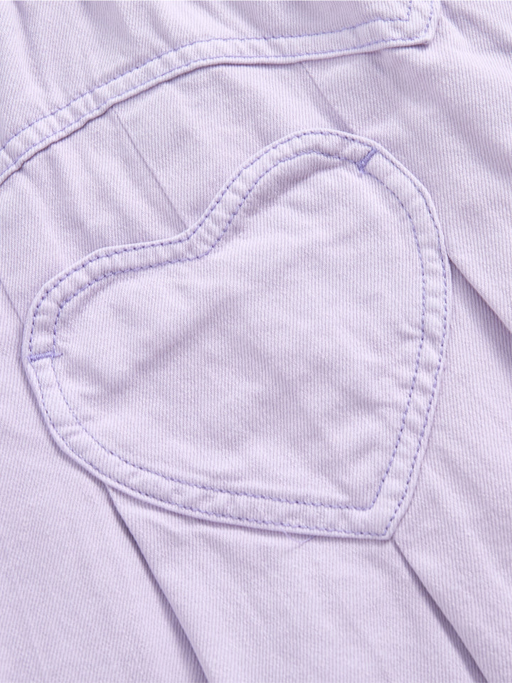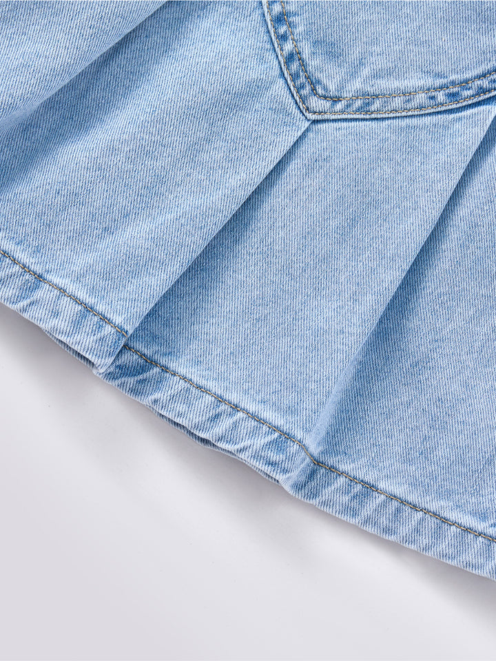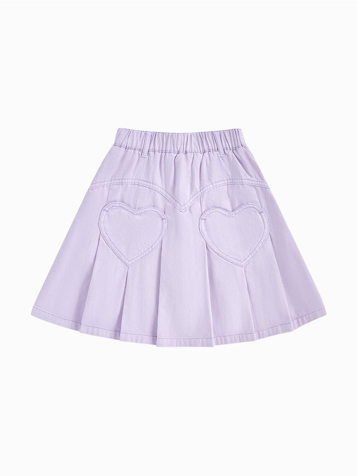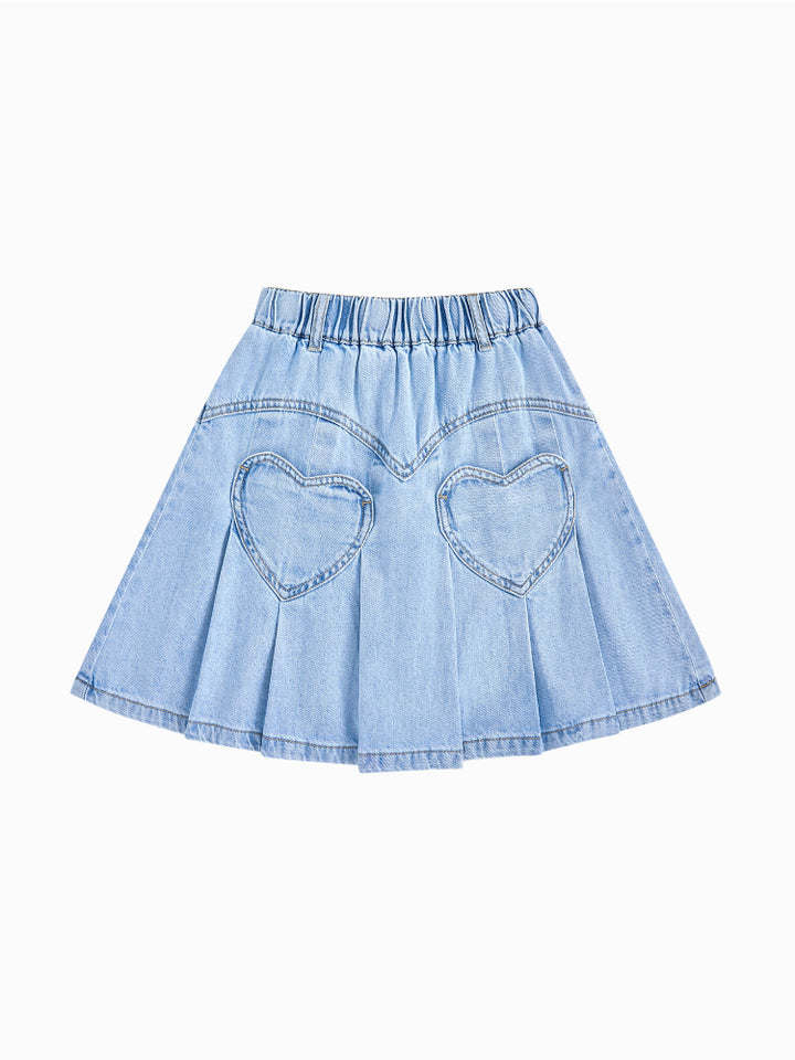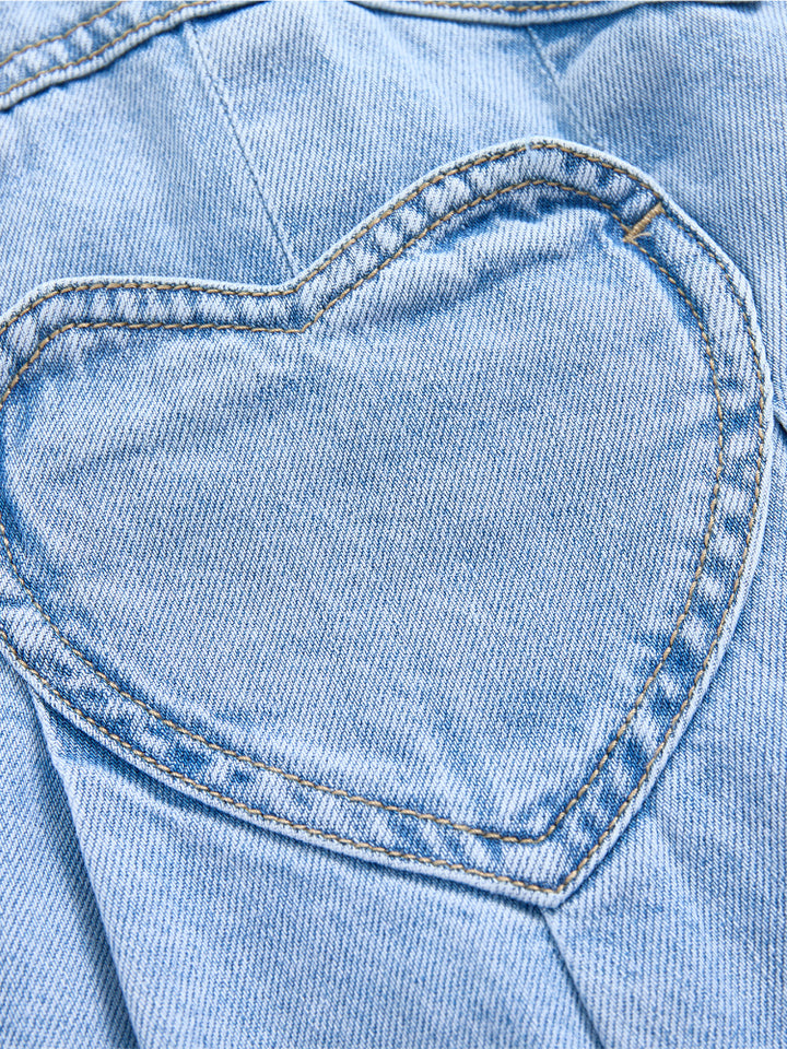 تنورة جينز قصيرة بطيات وجيوب على شكل قلب للبنات