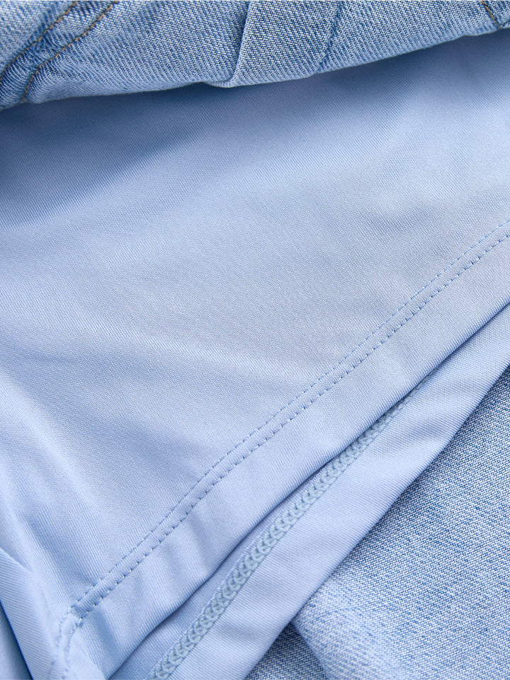 تتميز هذه التنورة الجينز القصيرة بتصميم بلون موحد مع تفاصيل طيات، وجيوب أمامية على شكل قلب، وخصر مطاطي، وشورت داخلي مرفق لمزيد من الراحة والتغطية.