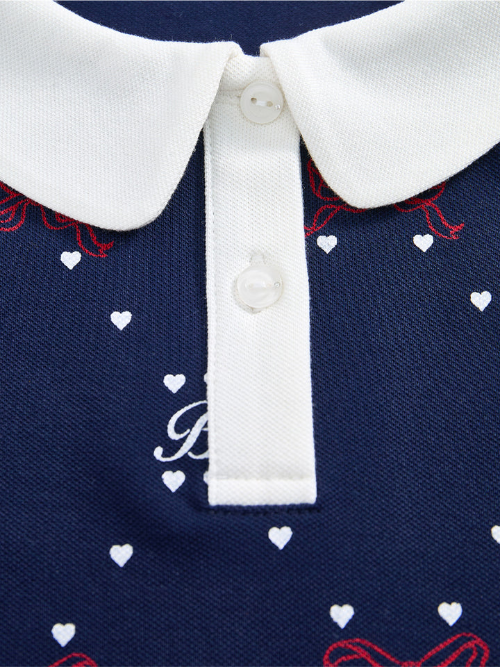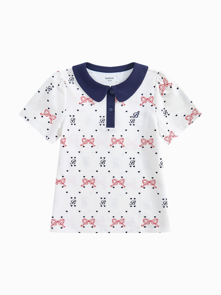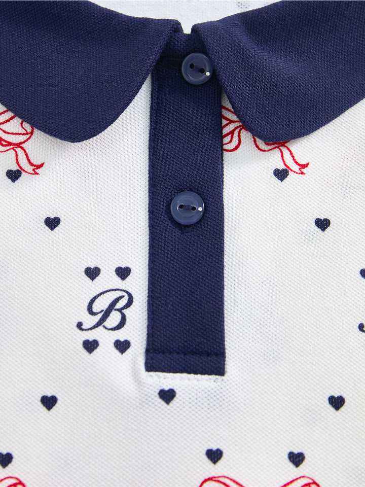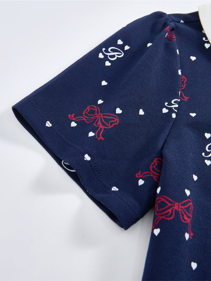 تيشيرت بولو بأكمام قصيرة بنمط طبع كامل للبنات