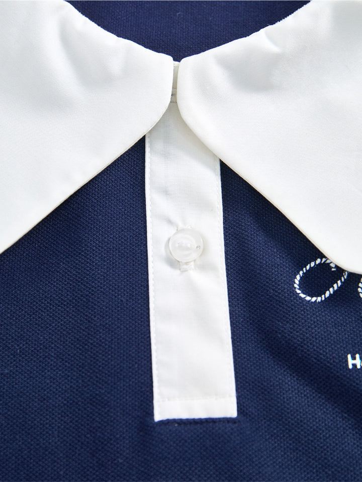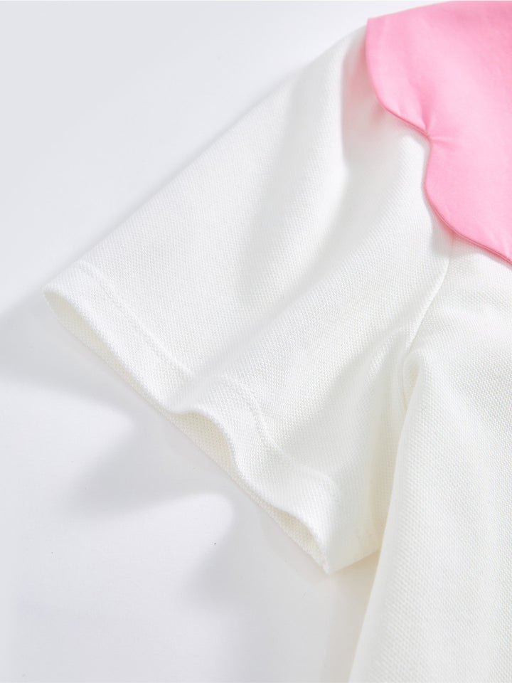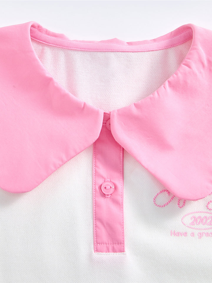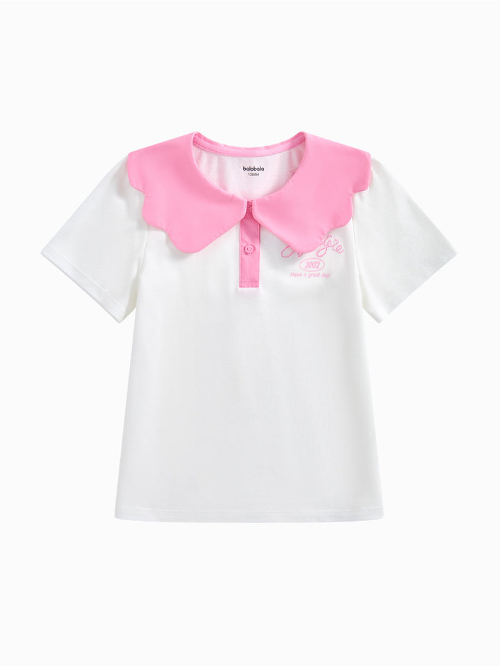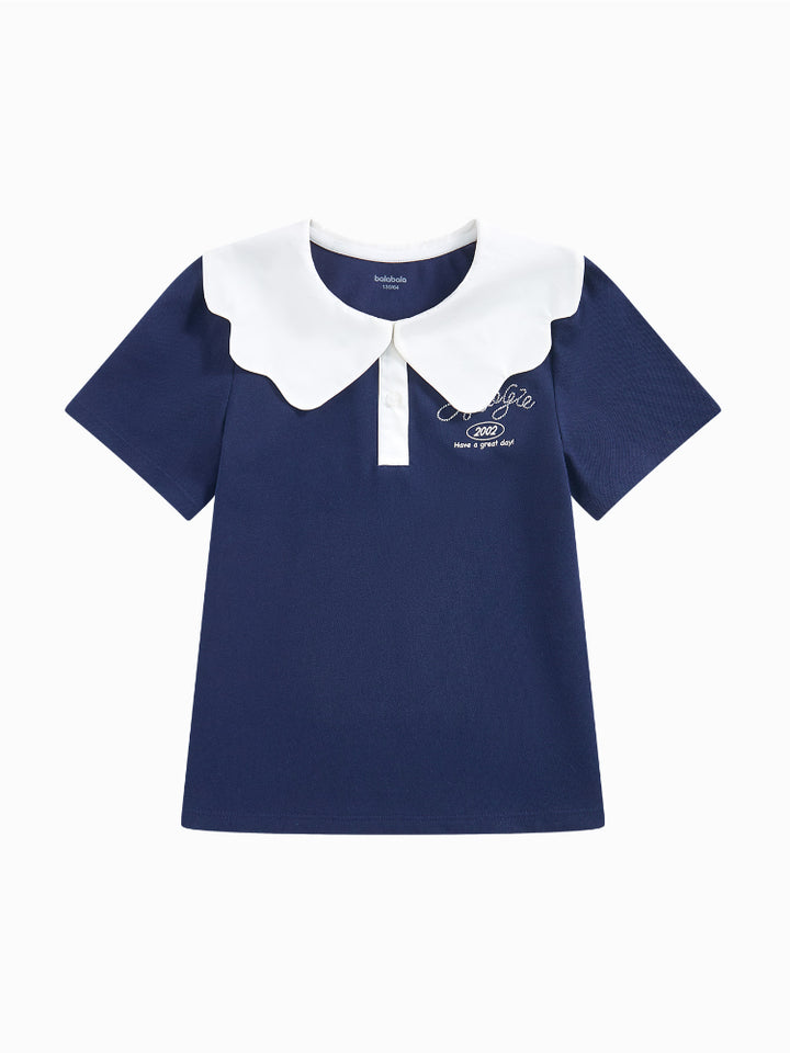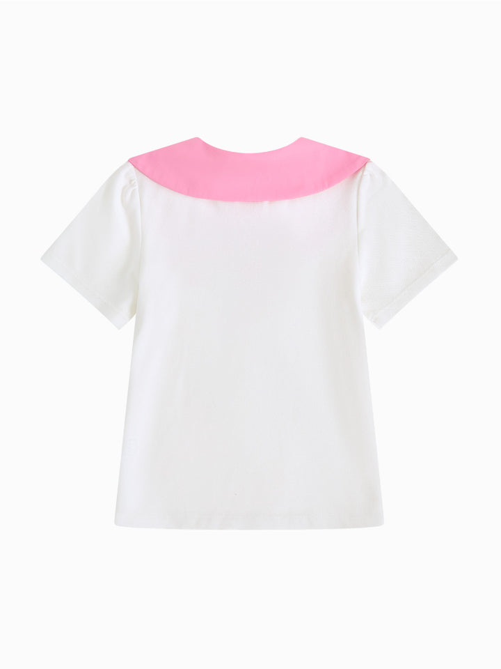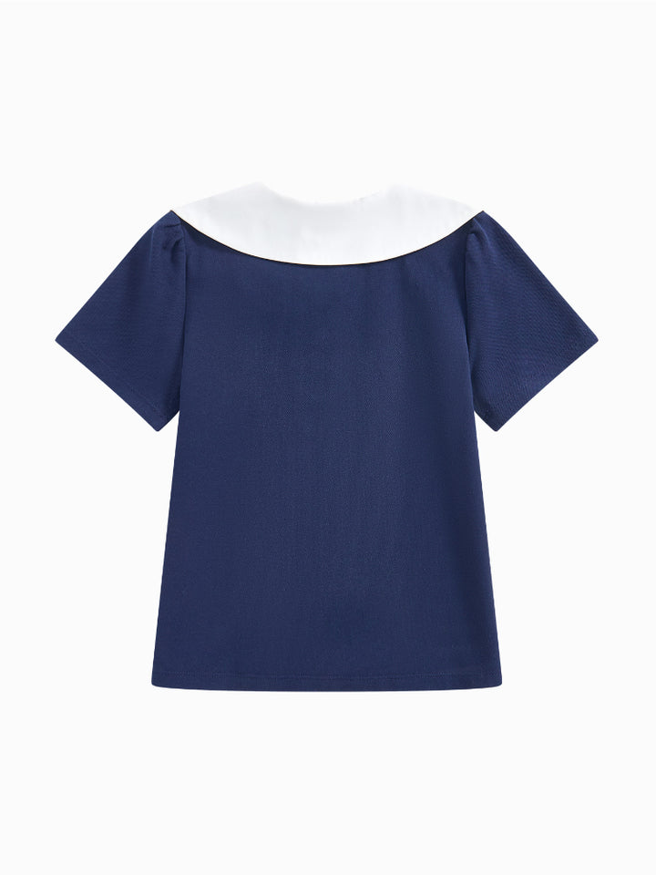 تيشيرت بأكمام قصيرة مع تطريز وياقة كبيرة على شكل مريلة للبنات