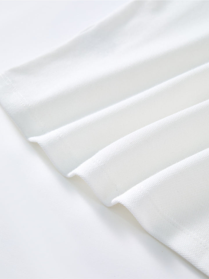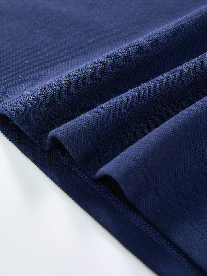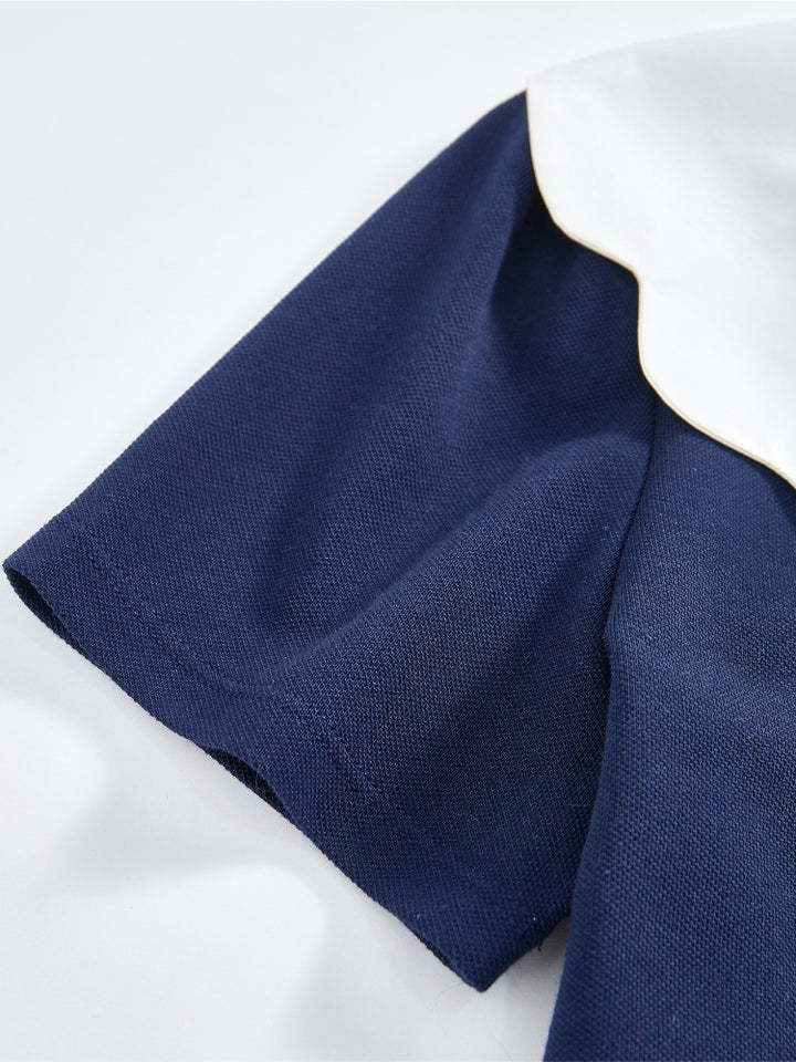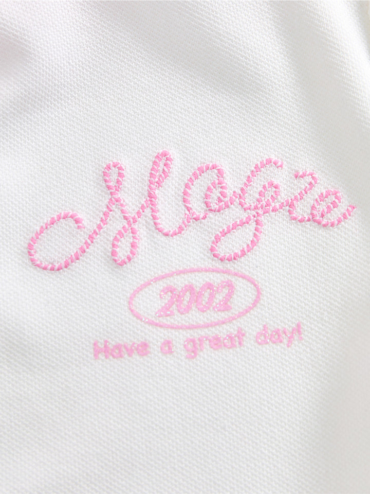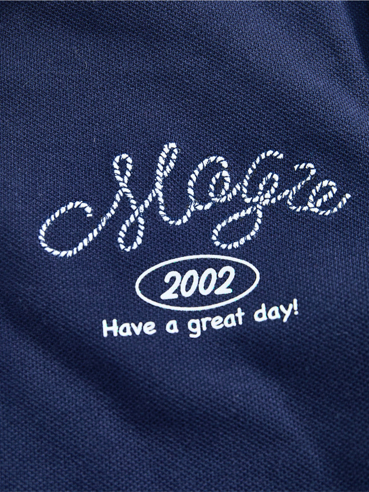 يتميز هذا التيشيرت بأكمام قصيرة بتطريز أمامي أنيق وياقة كبيرة وعريضة على شكل مريلة. يحتوي على أزرار أمامية عند الرقبة لمظهر عصري وراحة مميزة.