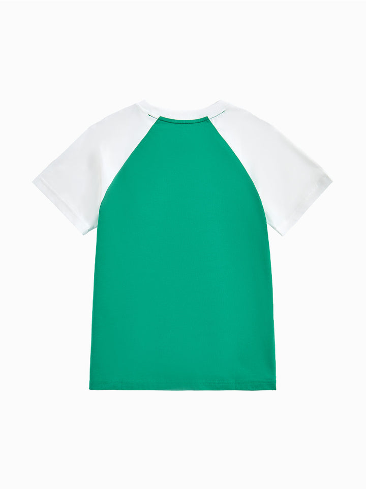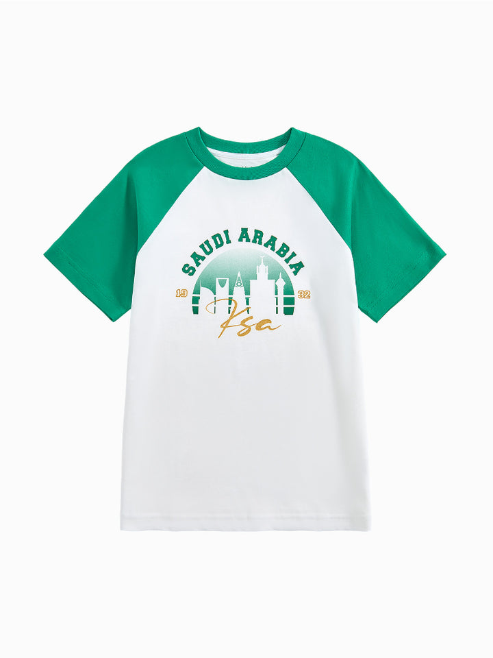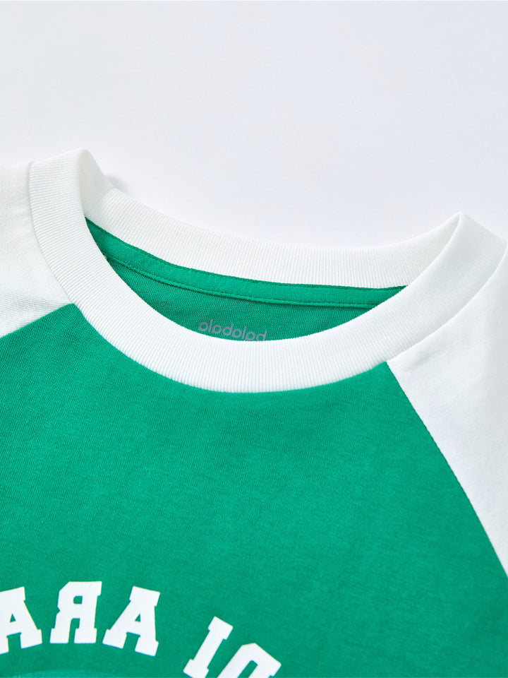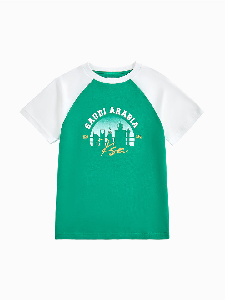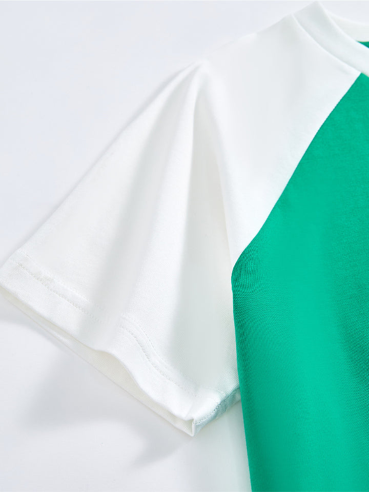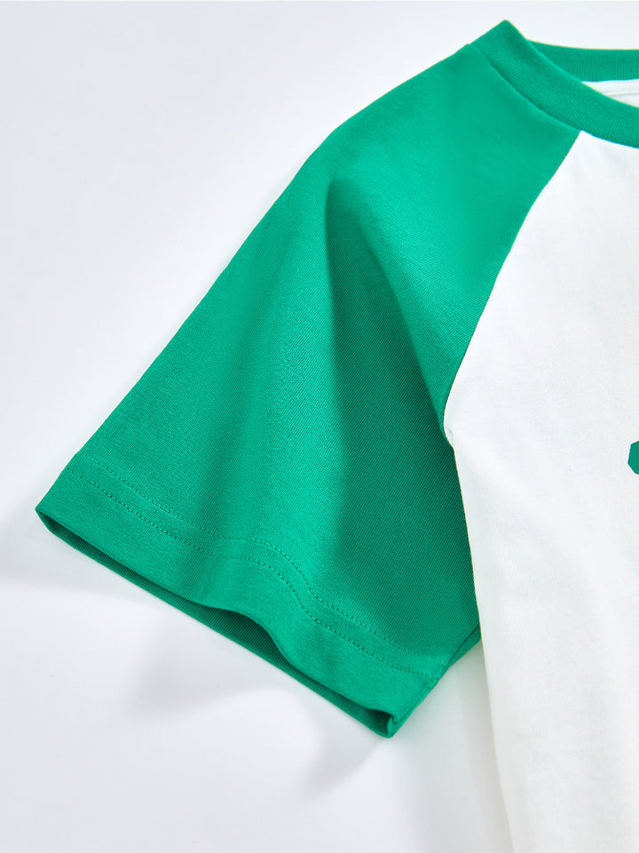 تيشيرت بأكمام قصيرة بألوان متباينة مع طبعة أمامية للجنسين