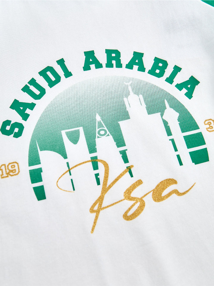 يتميز هذا التيشيرت الكاجوال بأكمام بألوان متباينة وطبعة أمامية بارزة، مع ياقة دائرية مريحة لإطلالة يومية أنيقة.
