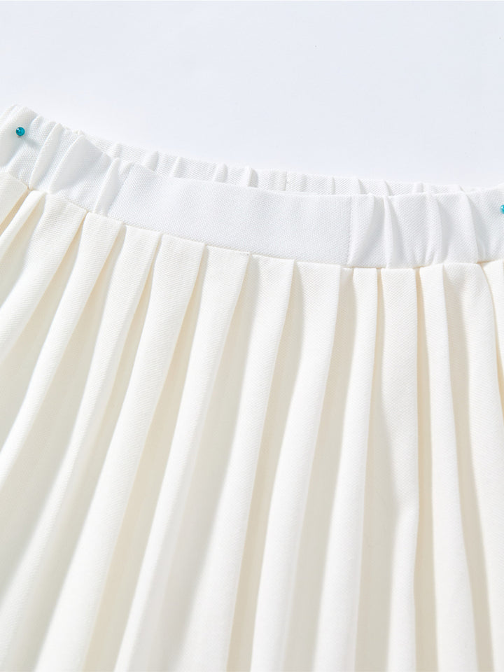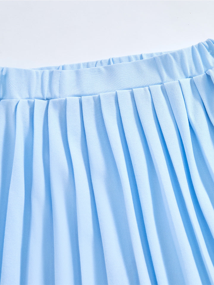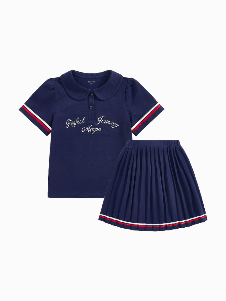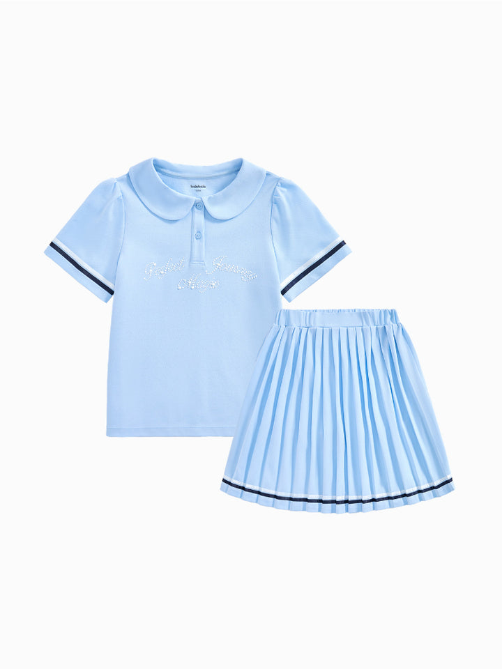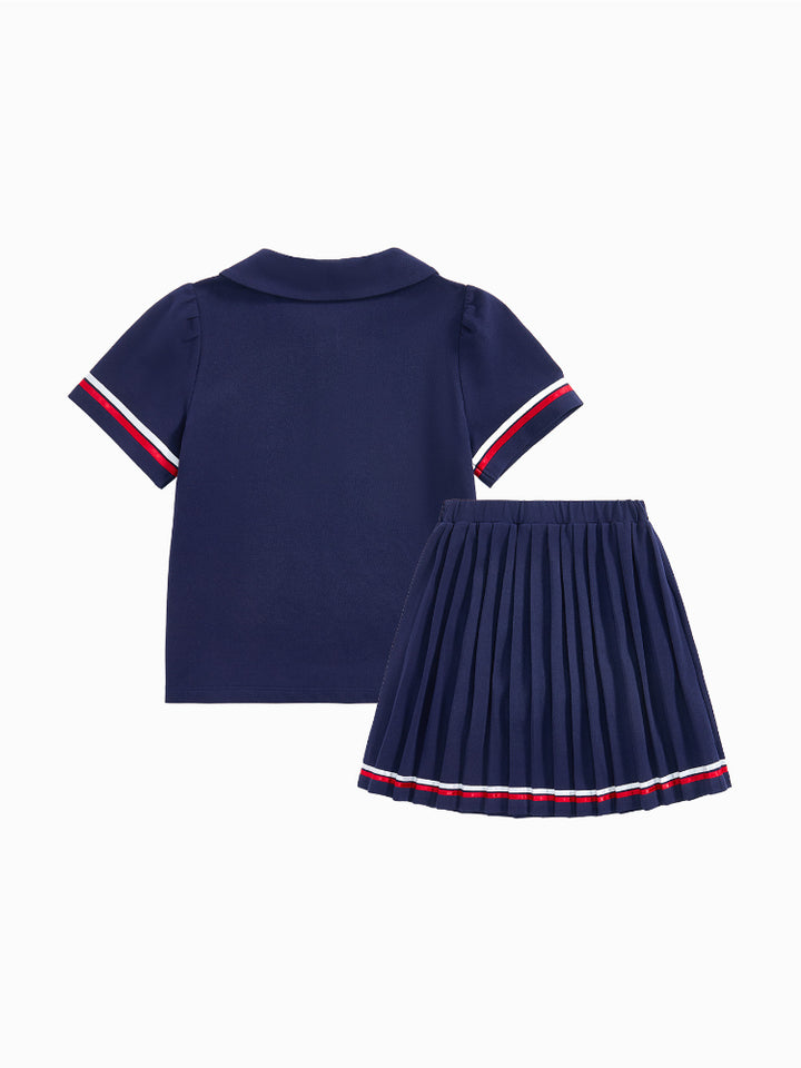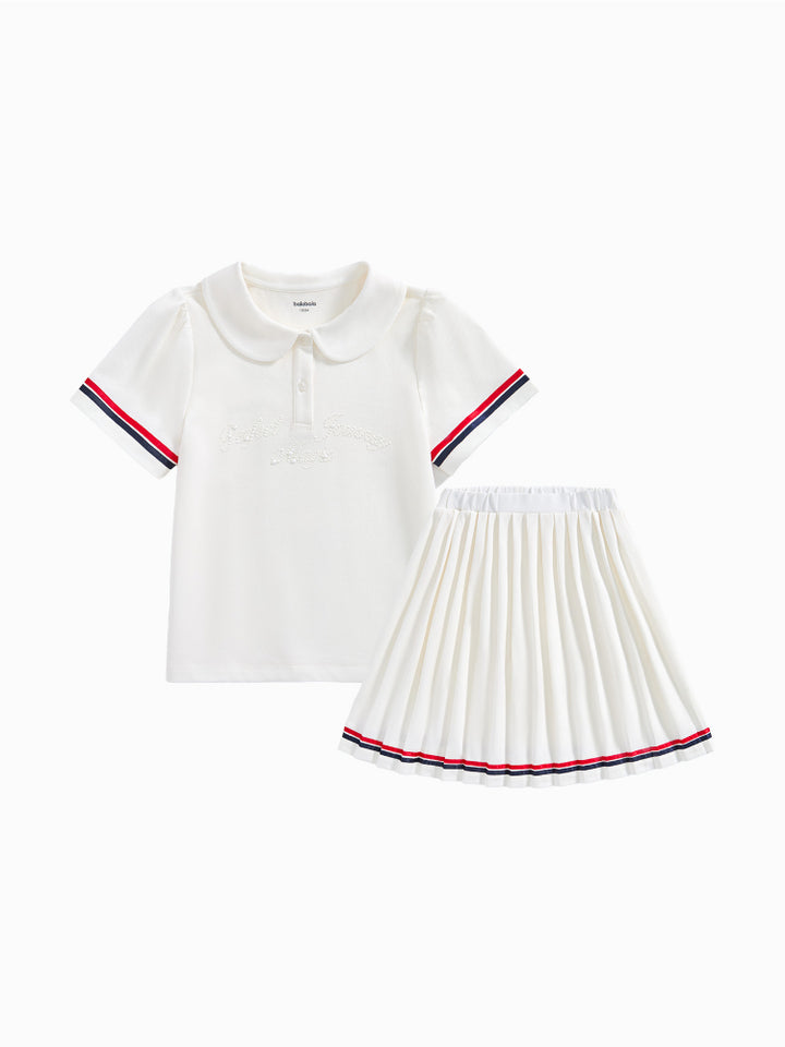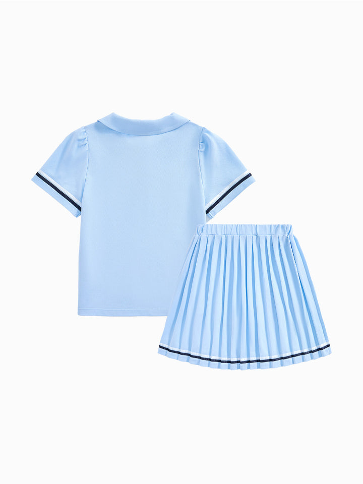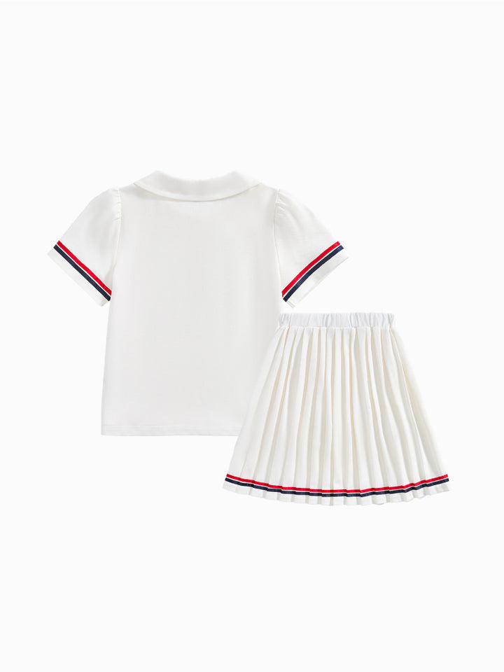 طقم من قطعتين - تيشيرت بولو وتنورة بطيات كاملة للبنات