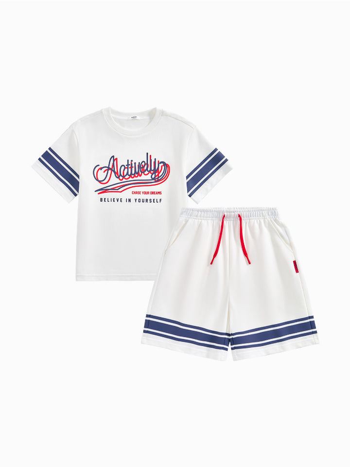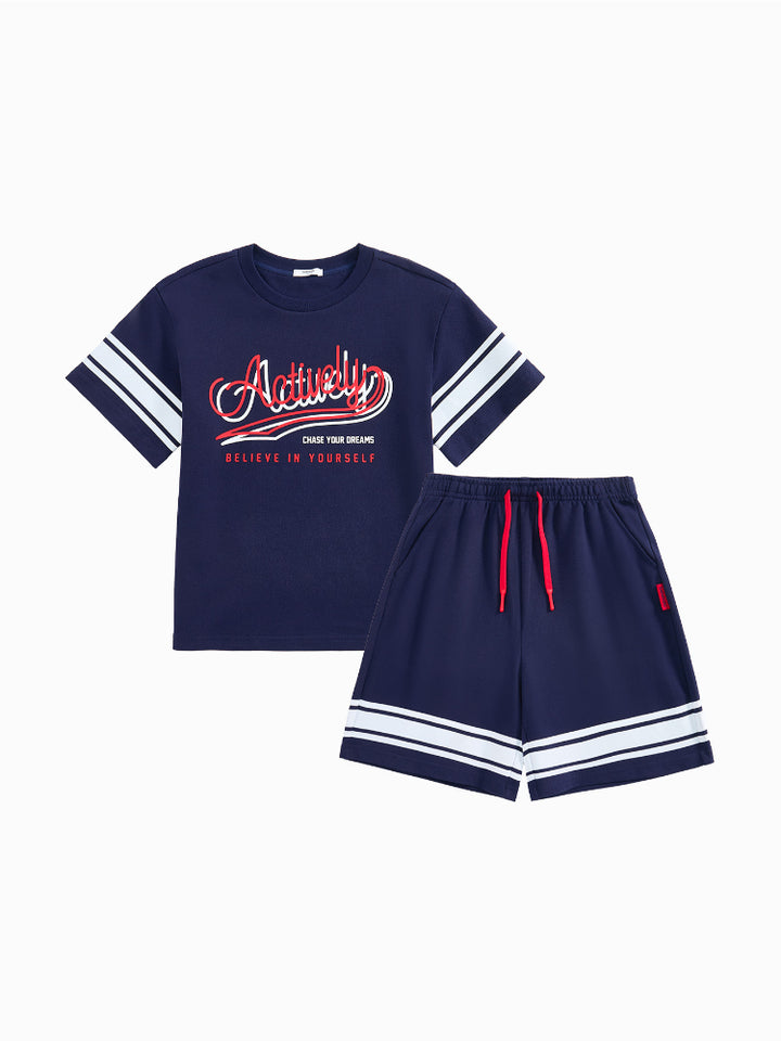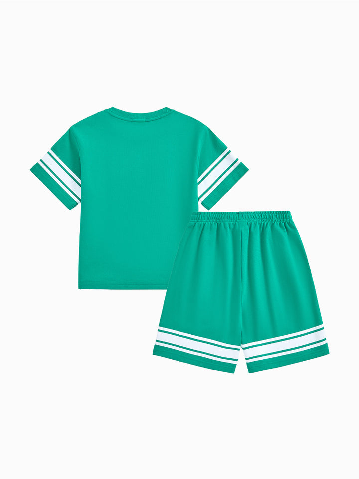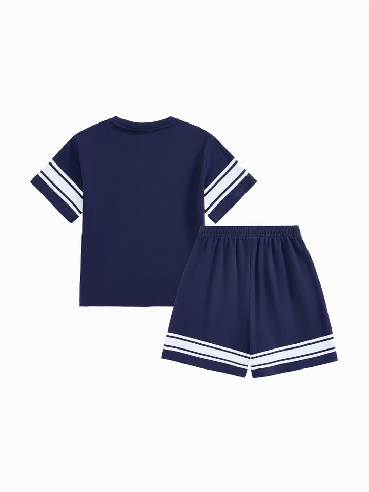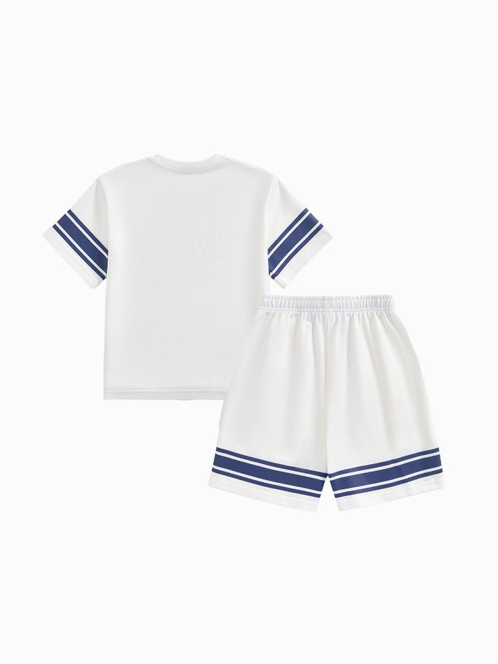 طقم من قطعتين - تيشيرت وشورت بتفاصيل خطوط للأولاد