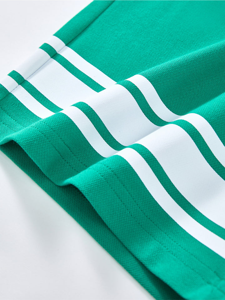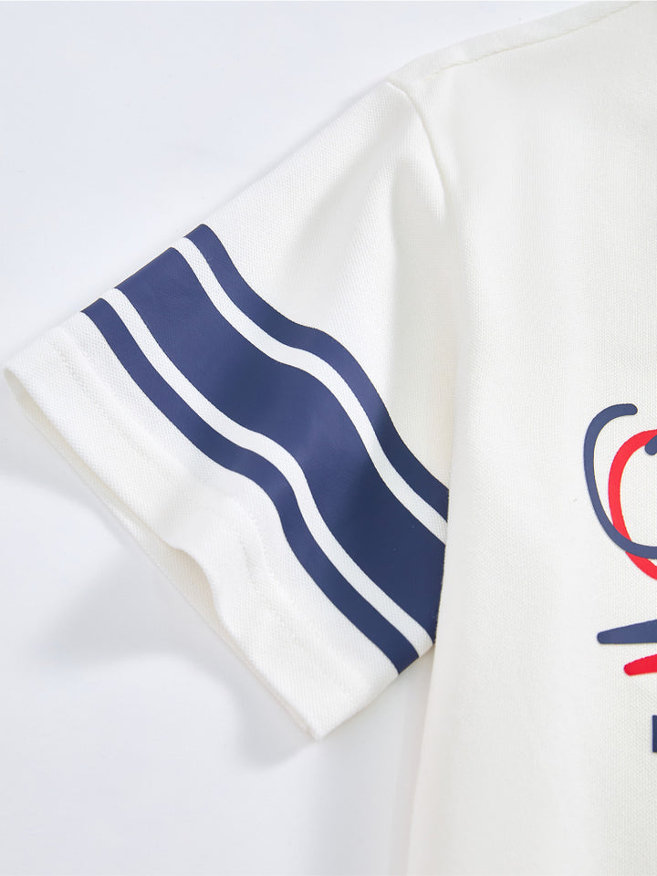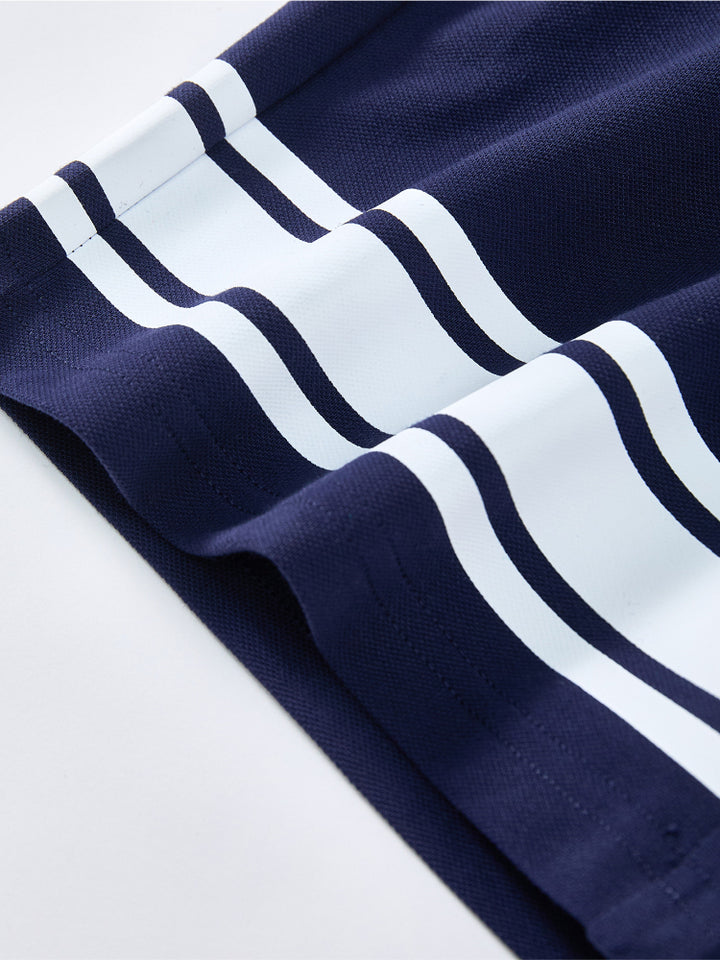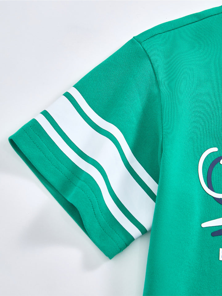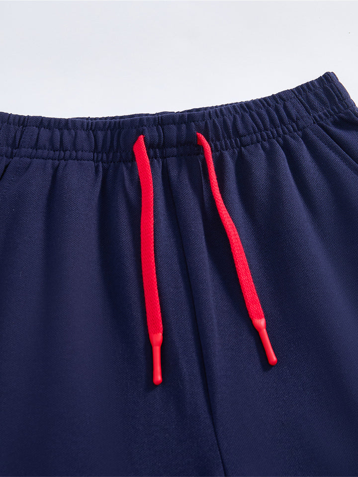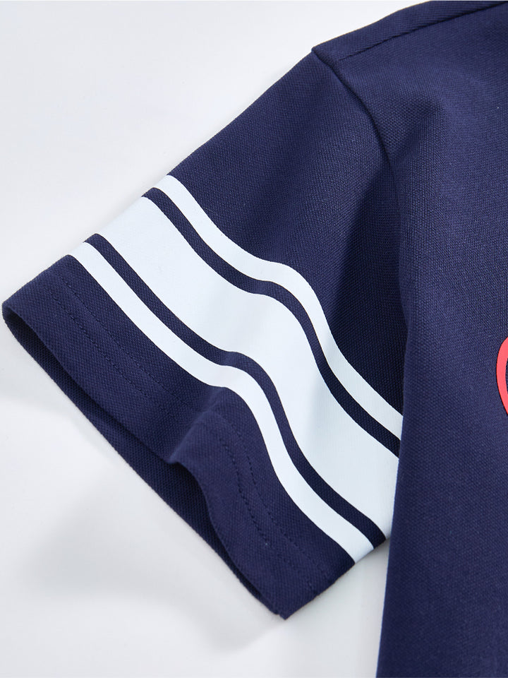 طقم من قطعتين - تيشيرت وشورت بتفاصيل خطوط للأولاد