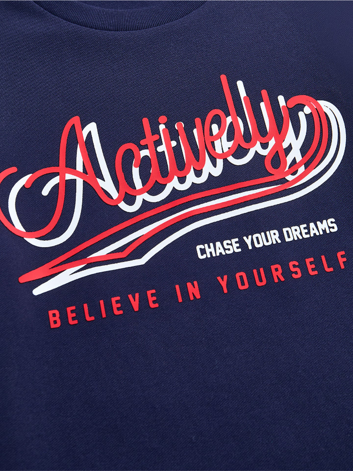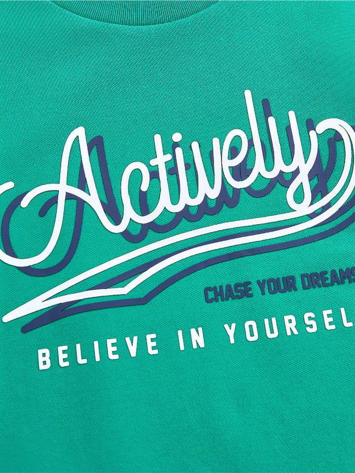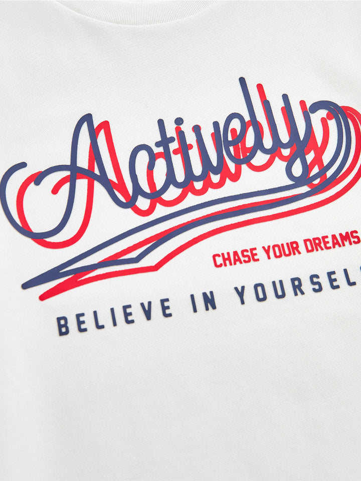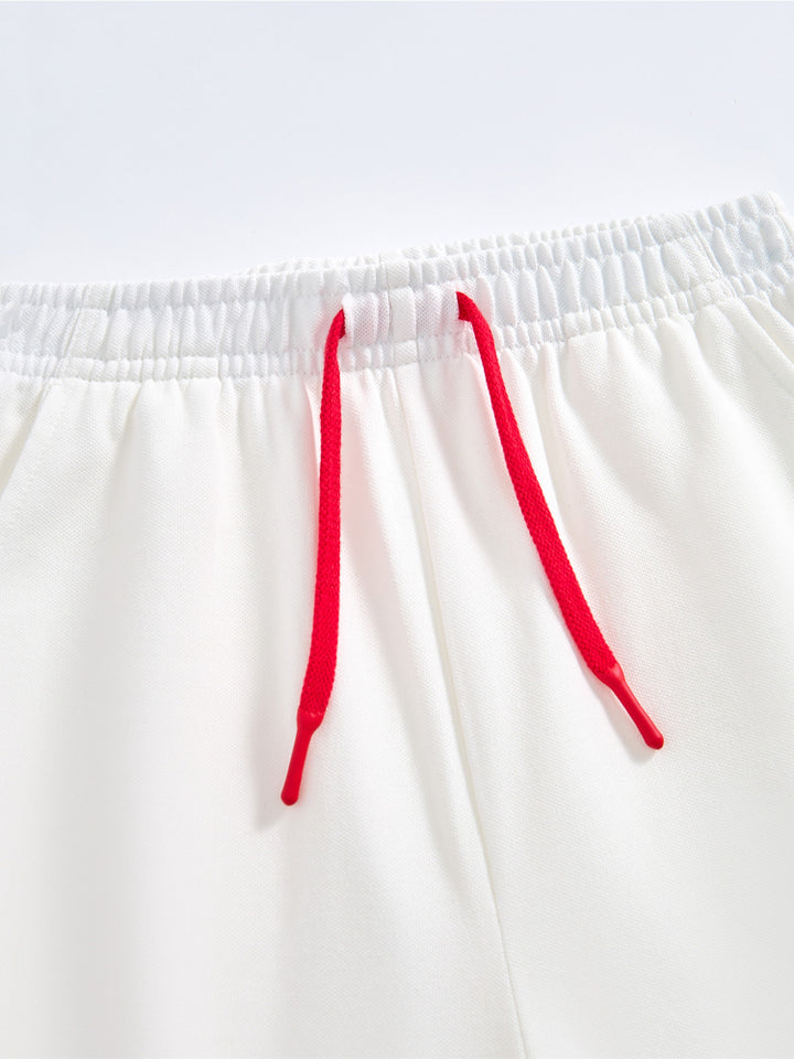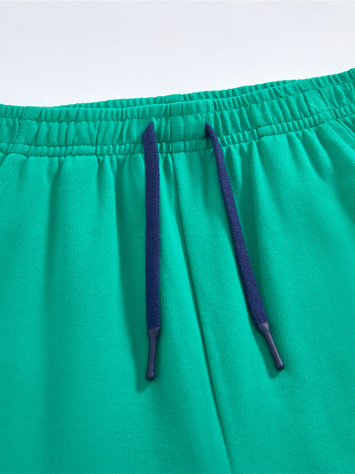 يحتوي هذا الطقم اللطيف للأطفال على تيشيرت بأكمام قصيرة مع تفاصيل خطوط على أطراف الأكمام وطبعة أمامية وياقة دائرية مريحة. يأتي مع شورت مزود بتفاصيل خطوط كاملة على الأسفل، وجيوب، وخصر مطاطي مع رباط قابل للتعديل لمقاس مثالي.