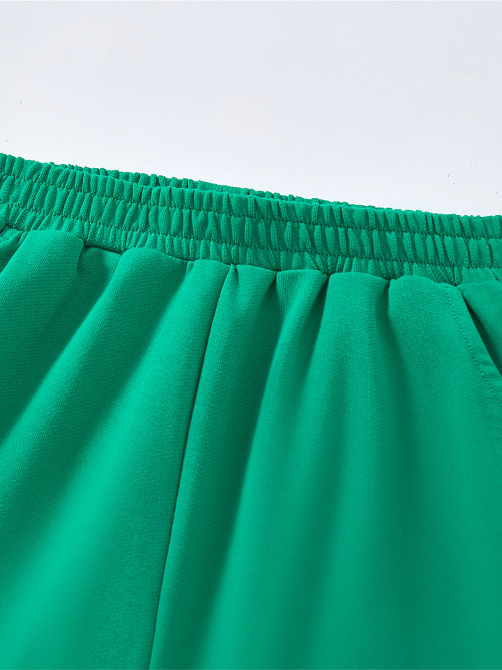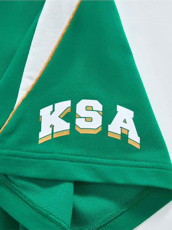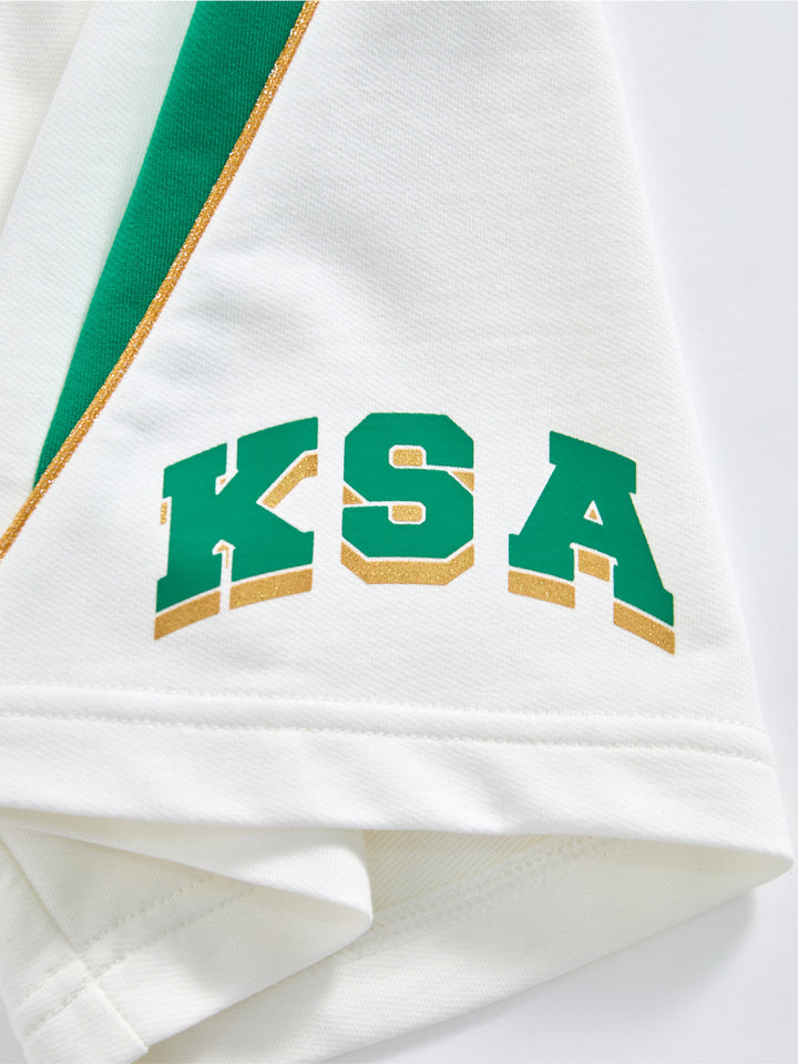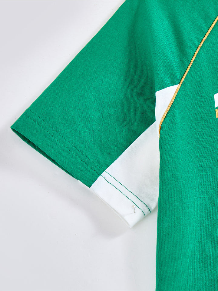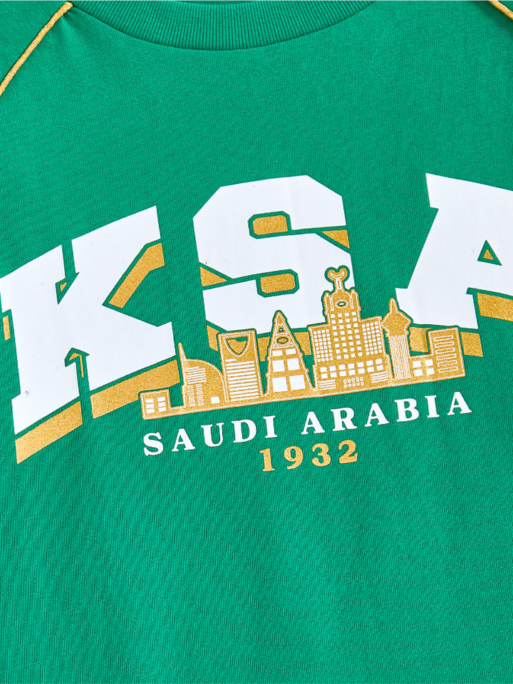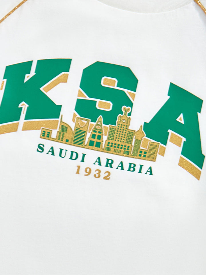 يحتوي هذا الطقم اللطيف للأطفال على تيشيرت بأكمام قصيرة مع تفاصيل متباينة على الأكمام وطبعة أمامية، يأتي مع شورت مزود بتفاصيل متباينة على الجوانب وطبعة أمامية وجيوب وخصر مطاطي لراحة قصوى.