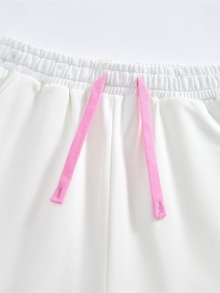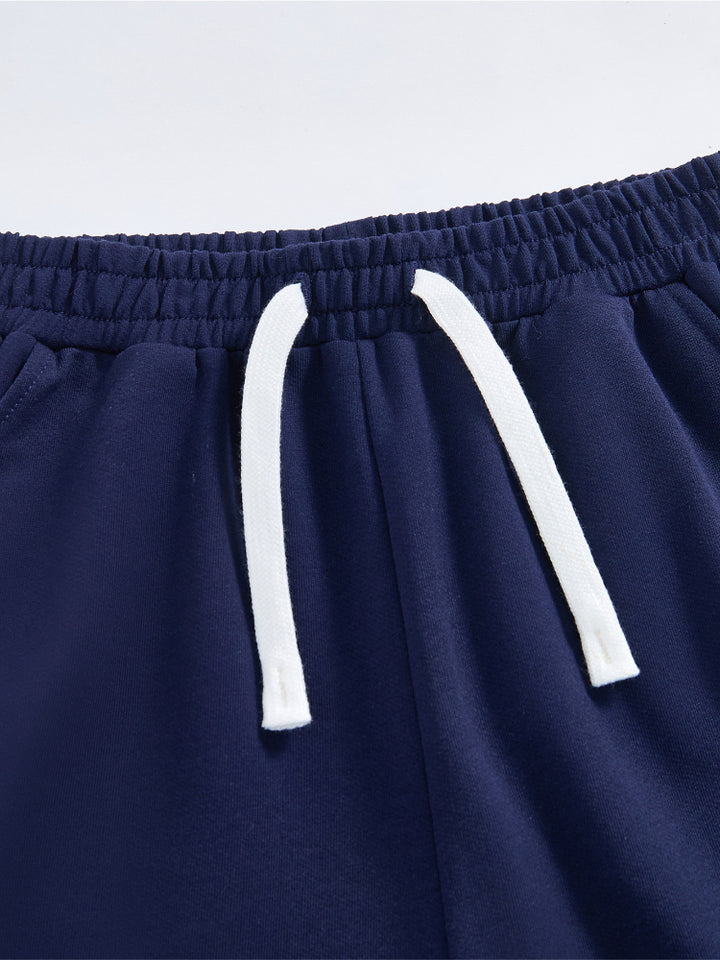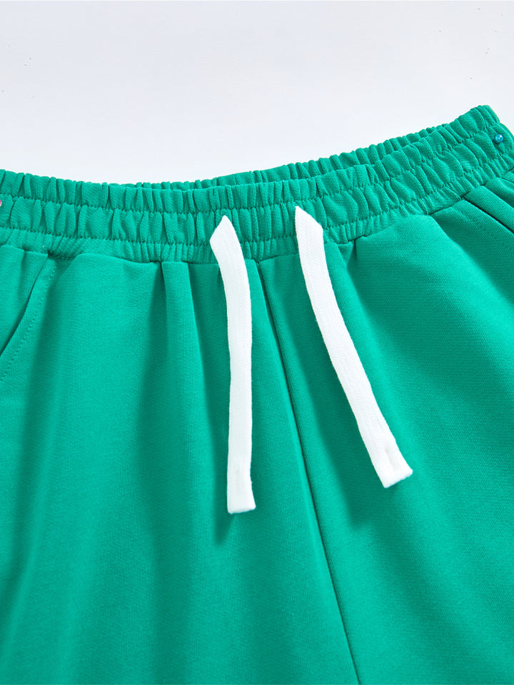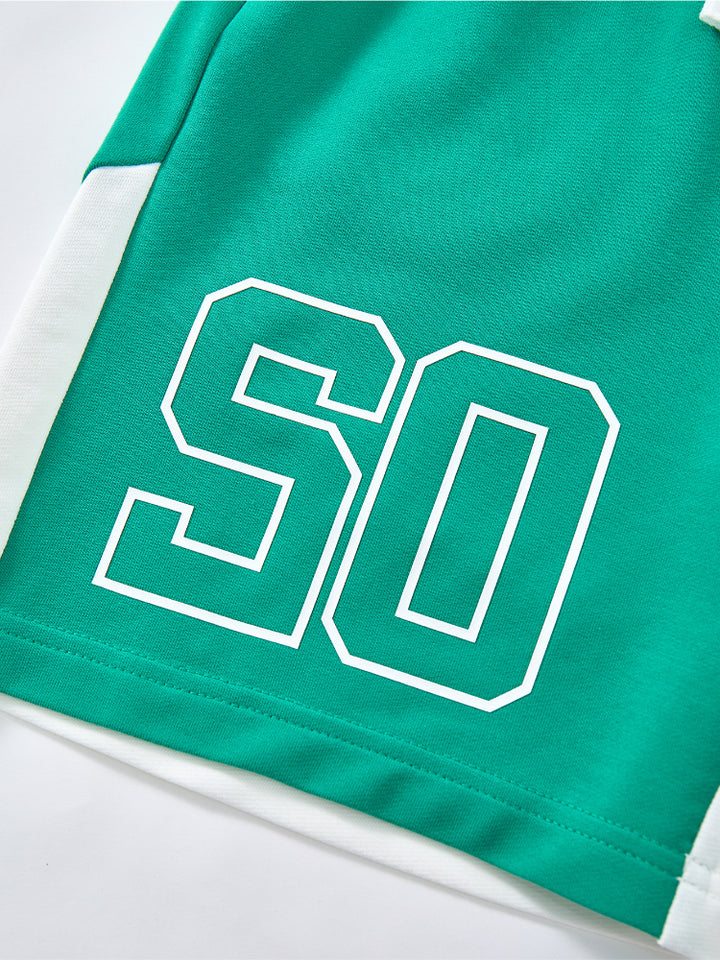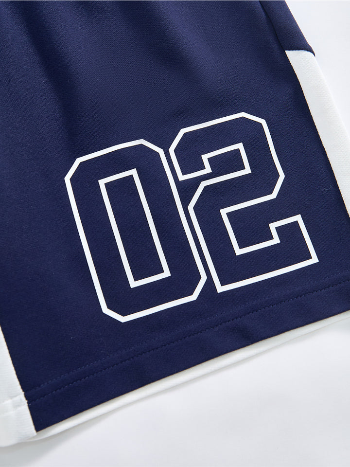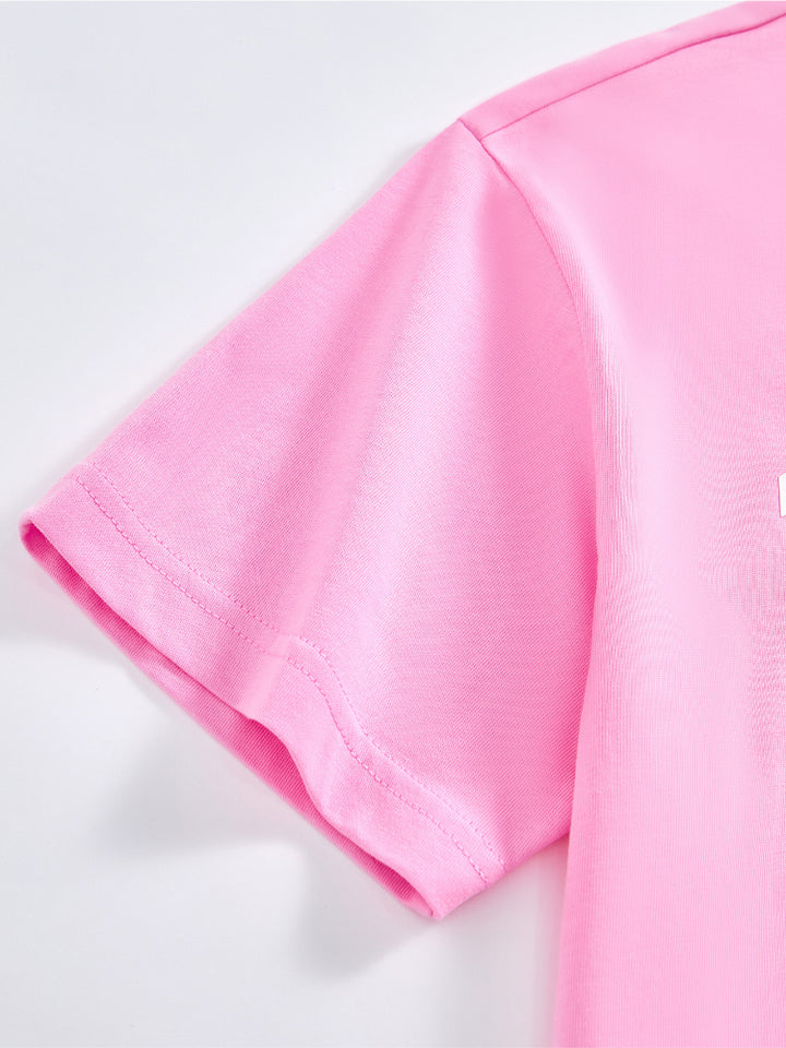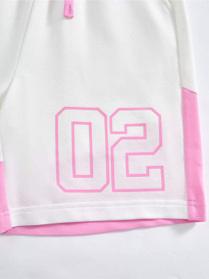 طقم من قطعتين - تيشيرت مطبوع وشورت بتفاصيل متباينة للجنسين