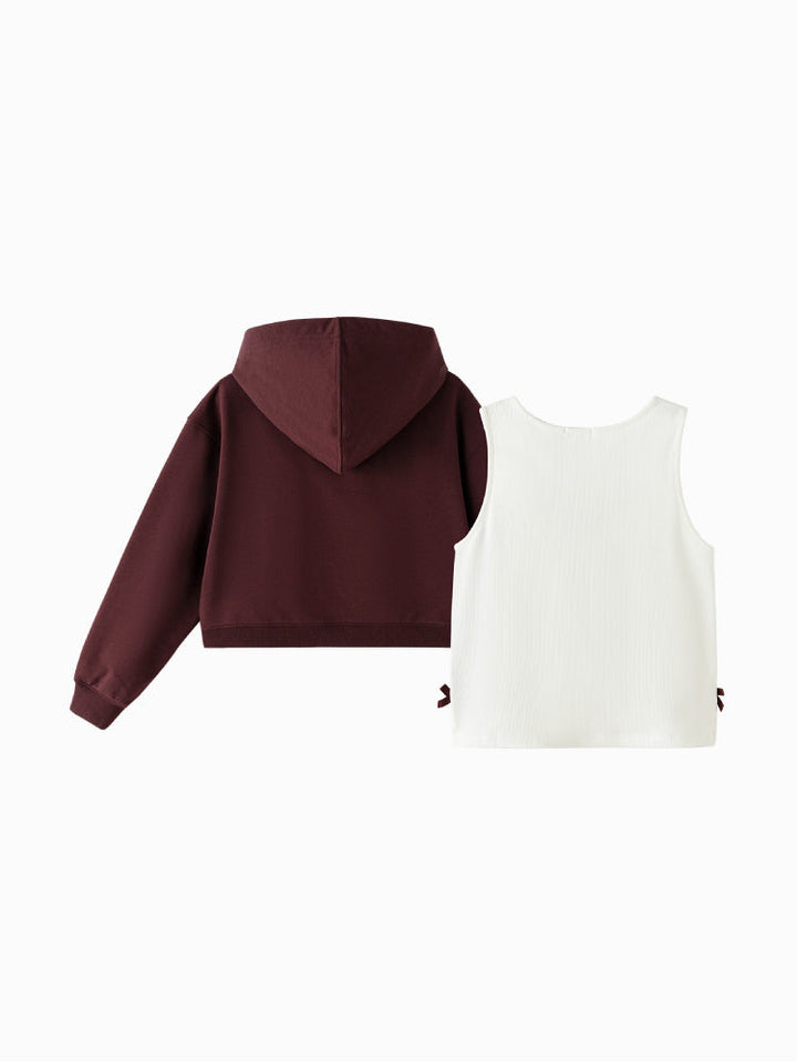 طقم قطعتين هودي وتوب بدون أكمام بربطات جانبية للبنات