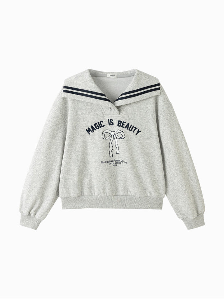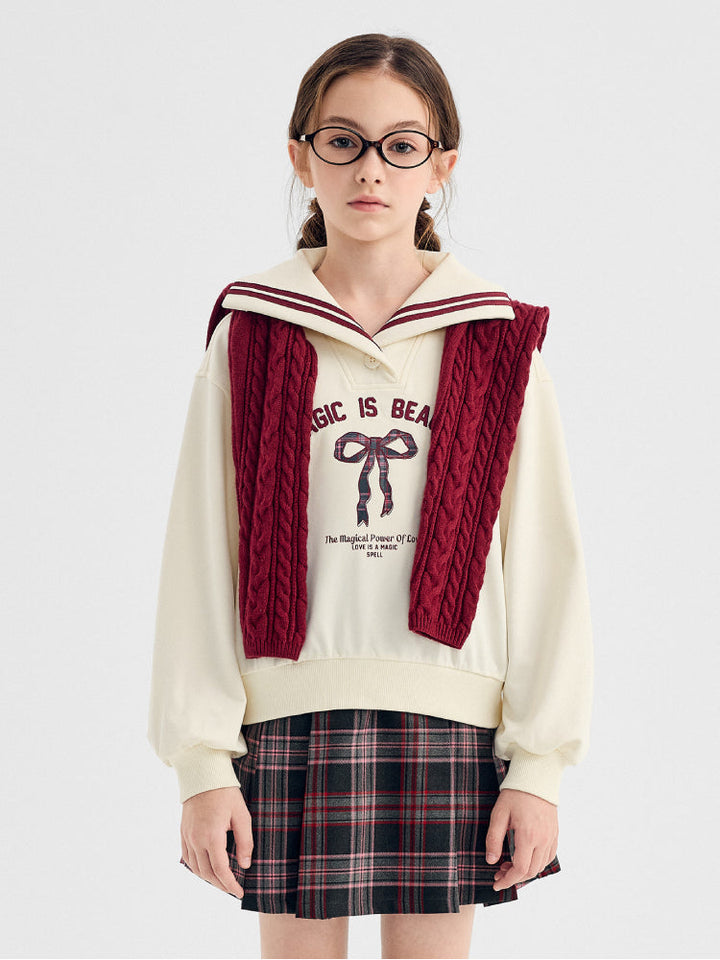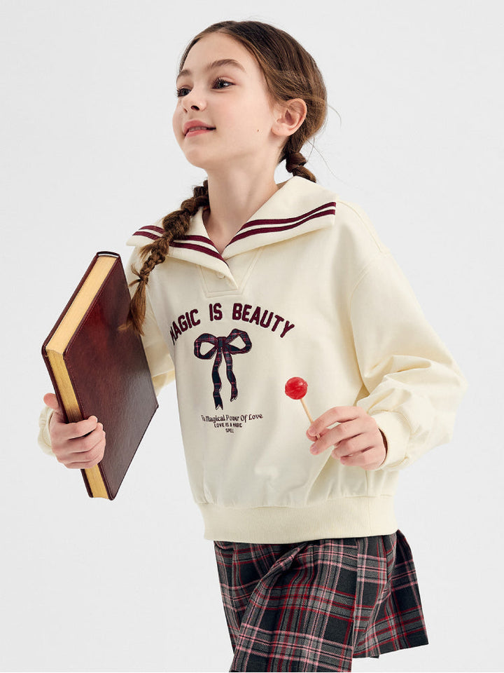سويت شيرت بياقة بحرية مع طبعة للبنات