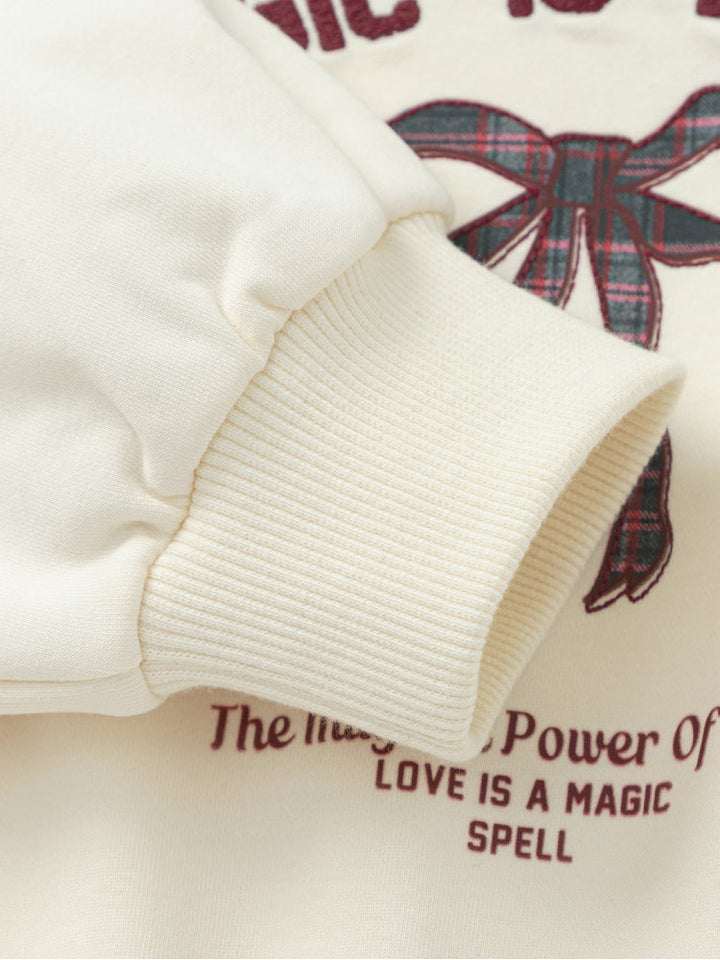 سويت شيرت مميز بياقة مستوحاة من الطراز البحري مع خطين متوازيين، مزين بطبعة أمامية بتفصيلة ربطة ونص، ويكتمل التصميم بأساور وحافة مطاطية لارتداء مريح.