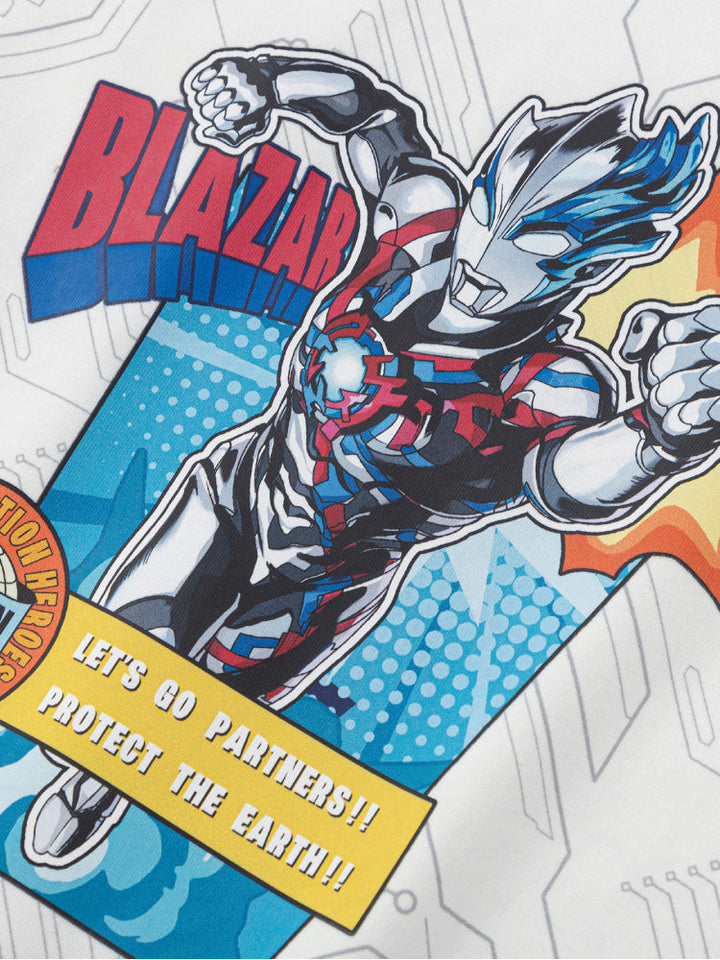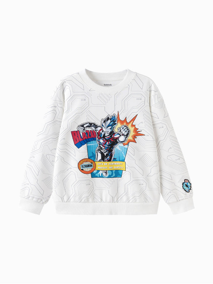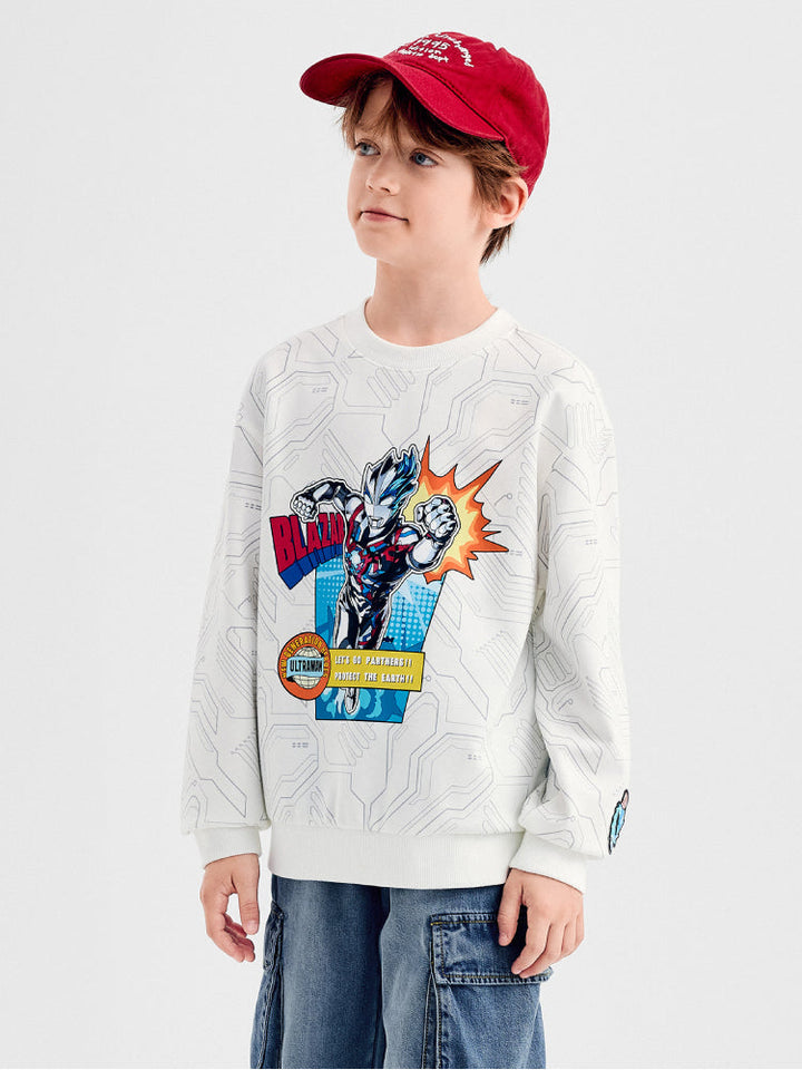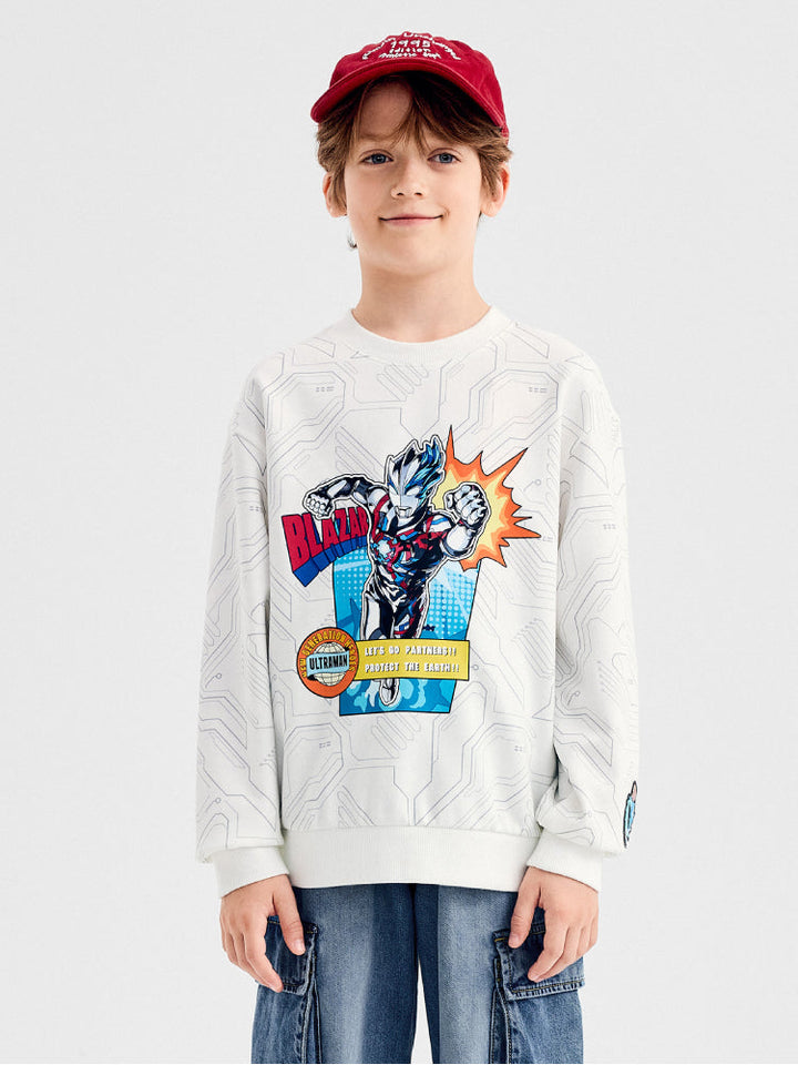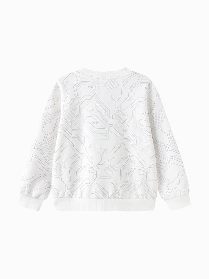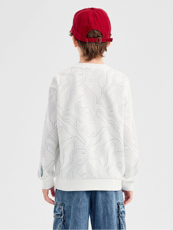 سويت شيرت مميز بتصميم نقشة مستوحاة من الدوائر الإلكترونية مطبوعة بالكامل، يزينه رسم بطل جريء على الأمام، مع ياقة وأكمام وحافة سفلية بإنهاء مطاطي لراحة تدوم طوال اليوم.