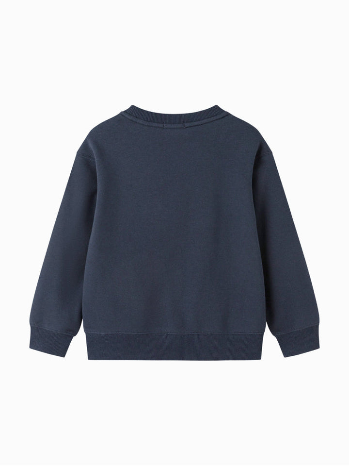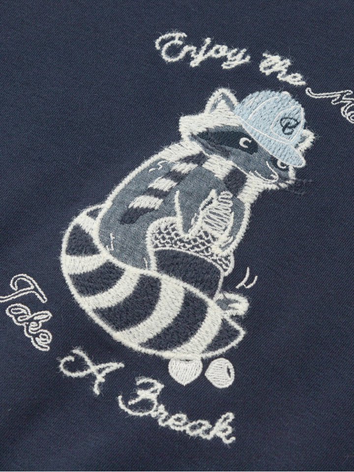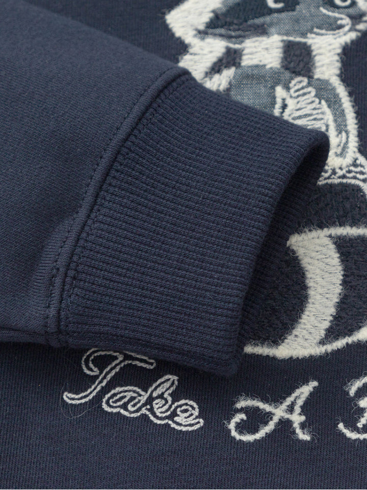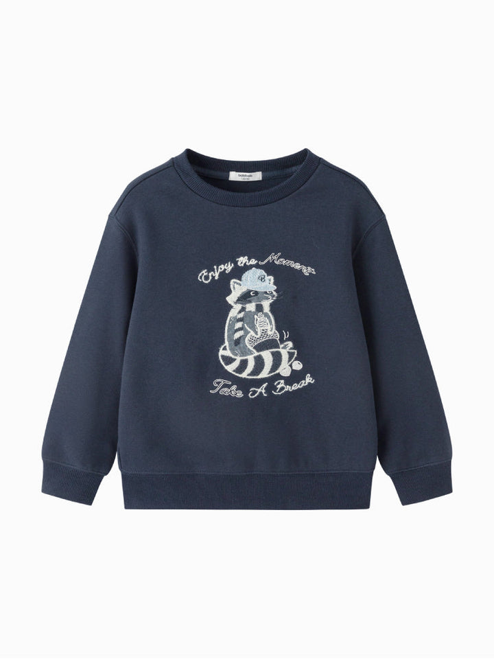 سويت شيرت مريح مزين بتطريز أمامي مع عبارات مرحة، بتصميم بياقة مستديرة وأكمام طويلة وحواف مطاطية لارتداء عملي ومريح يوميًا.