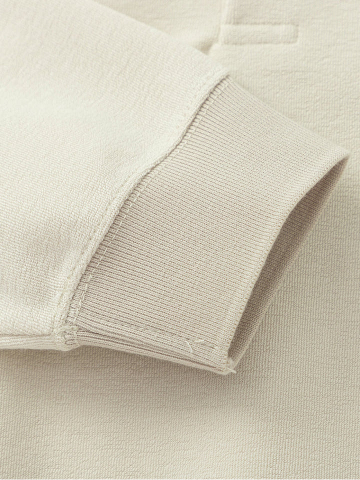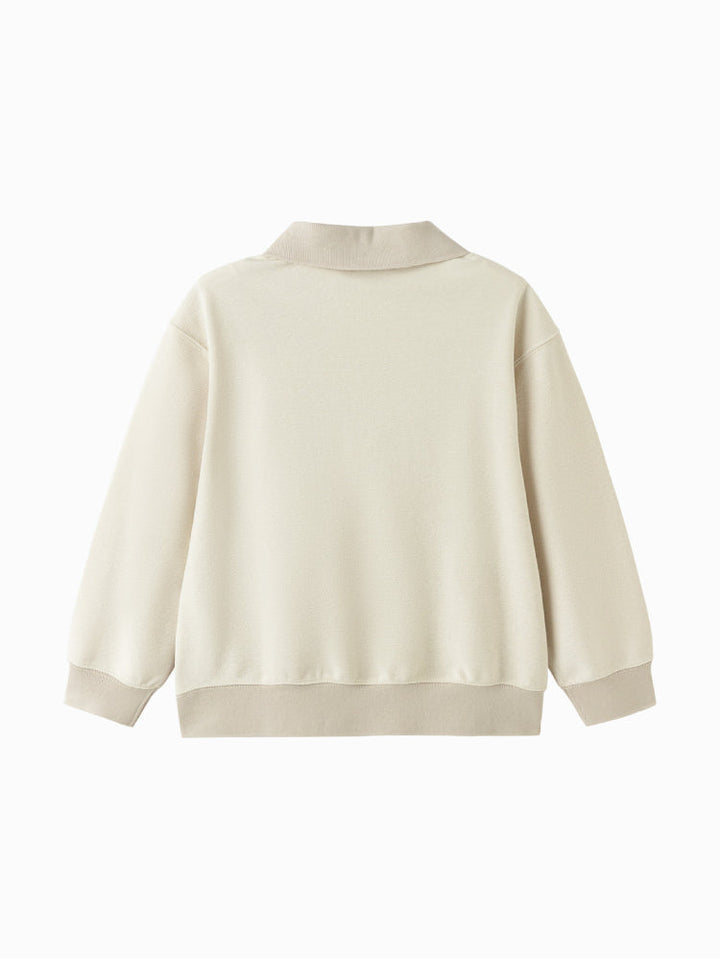 سويت شيرت بولو بتصميم مريح مع ياقة كلاسيكية وأزرار أمامية وحواف مطاطية، يزينه تطريز صغير على الصدر لإطلالة عصرية مرحة.