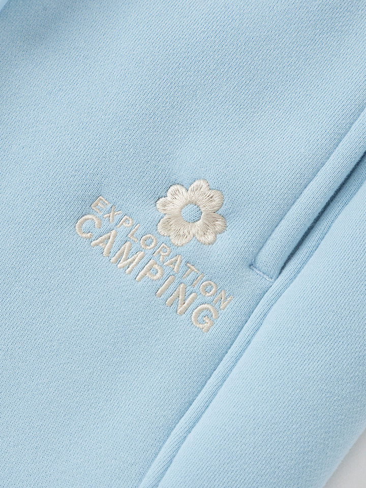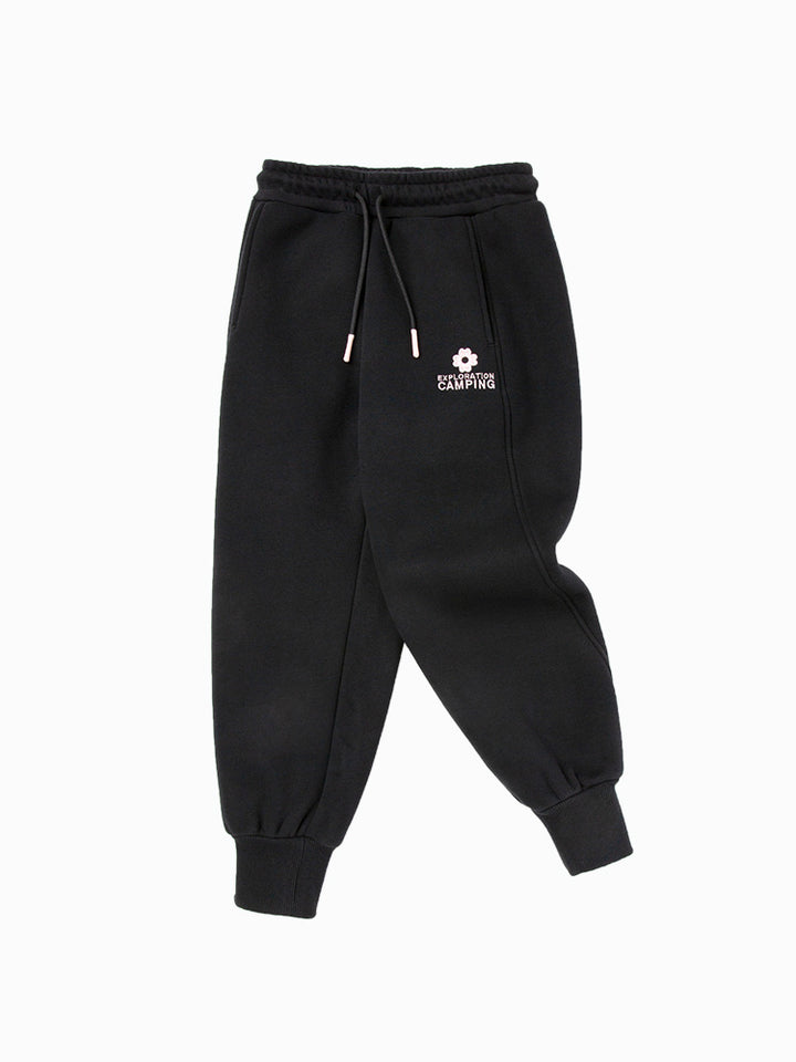 بنطلون رياضي بناتي كاجوال بنمط ذو لون موحد، مزين بتفاصيل تطريز صغير من الجهة الأمامية، يأتي بجيوب من الجهة الأمامية، جيب واحد من الجهة الخلفية، خصر مطاطي مريح وبرباط قابل للتعديل على الخصر