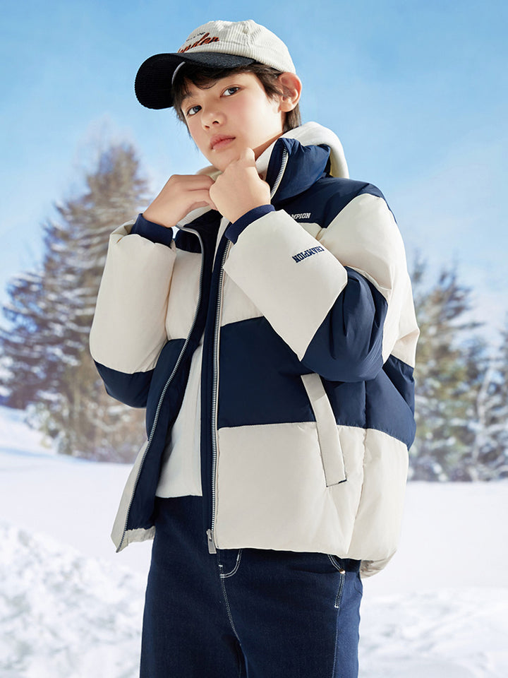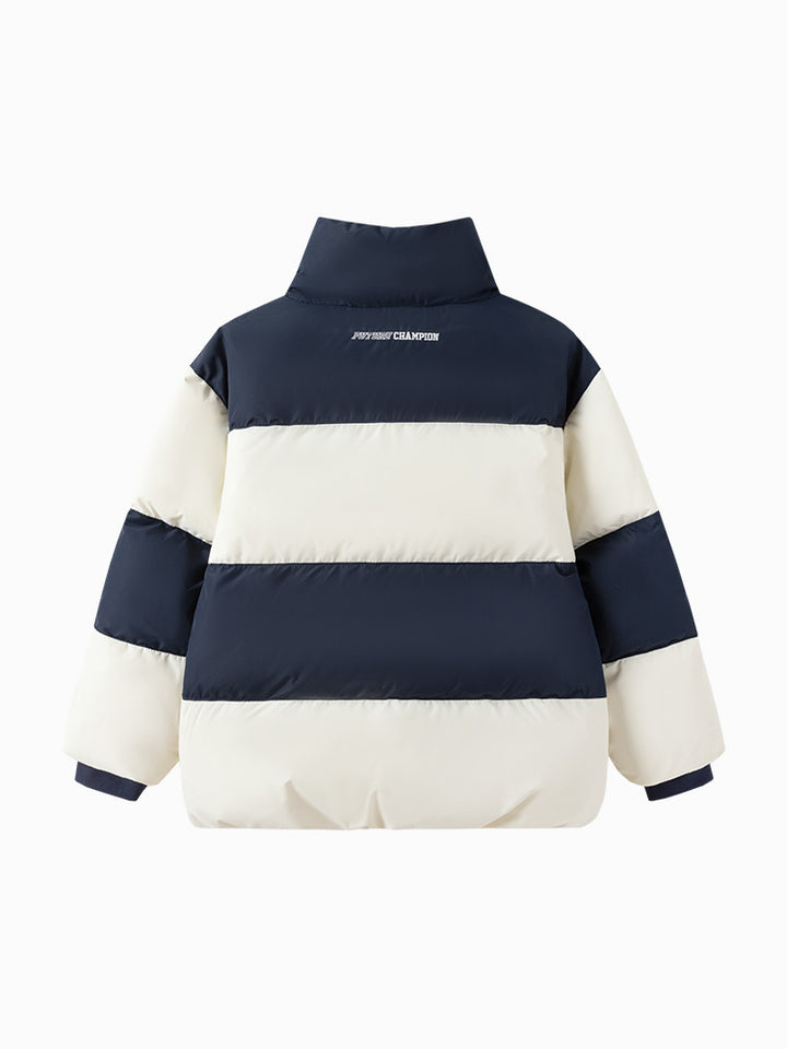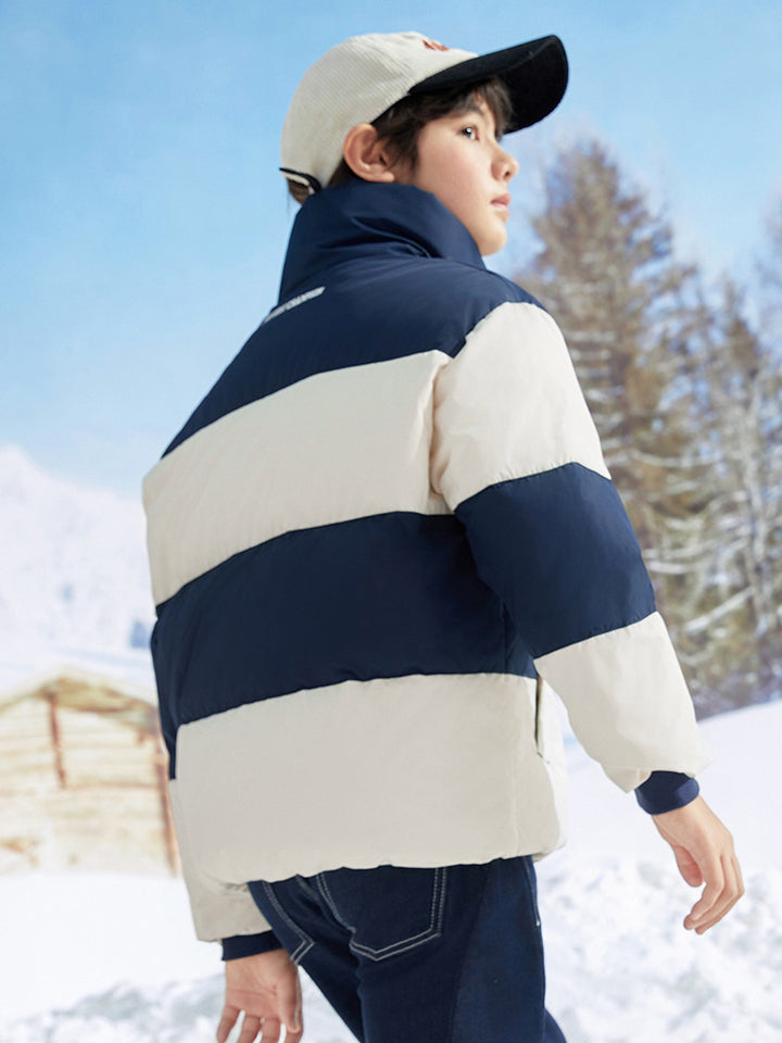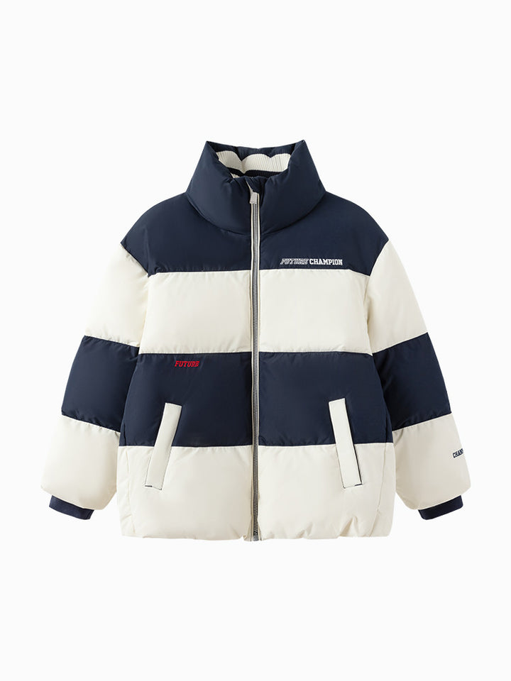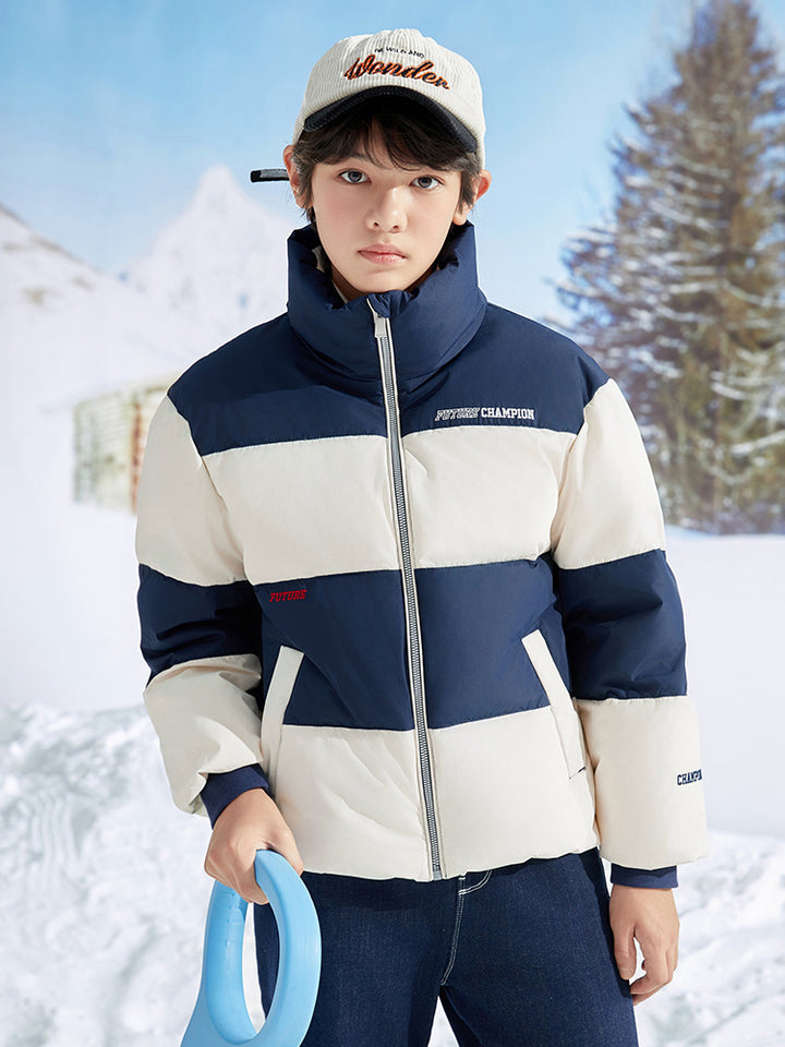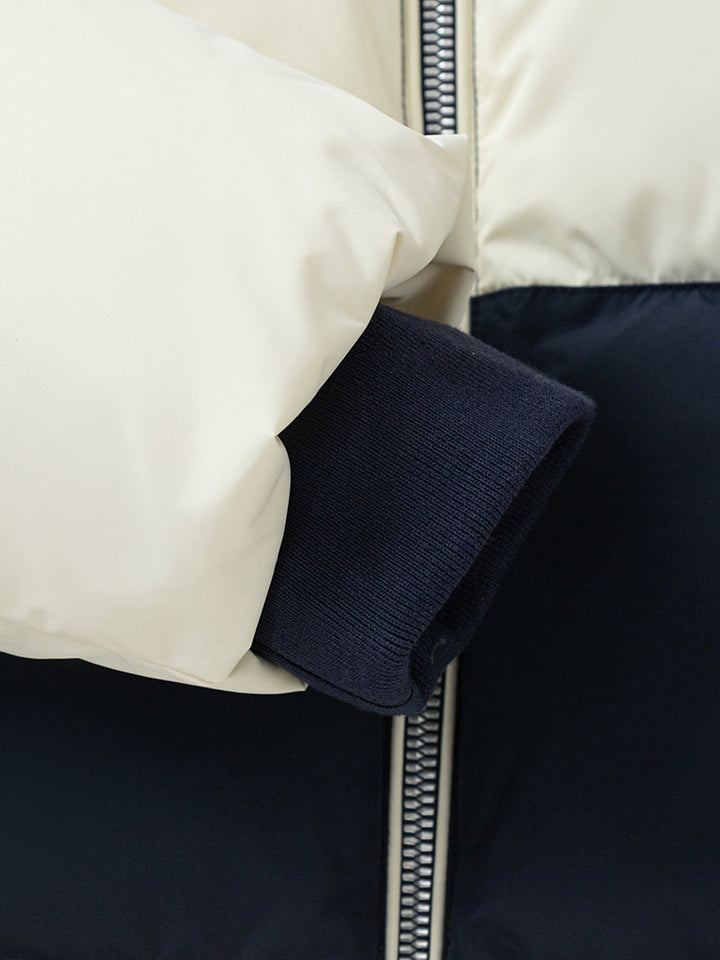 جاكيت بافر منفوخ متباين اللون بتفاصيل تطريز للأولاد