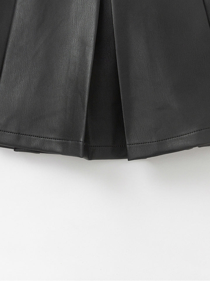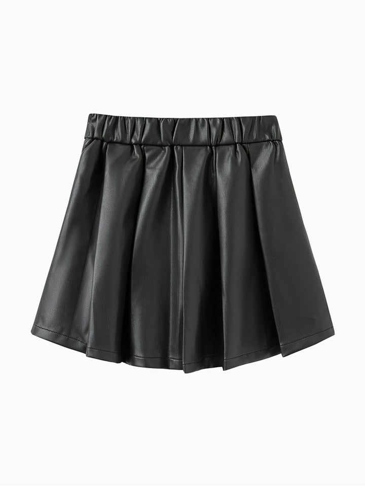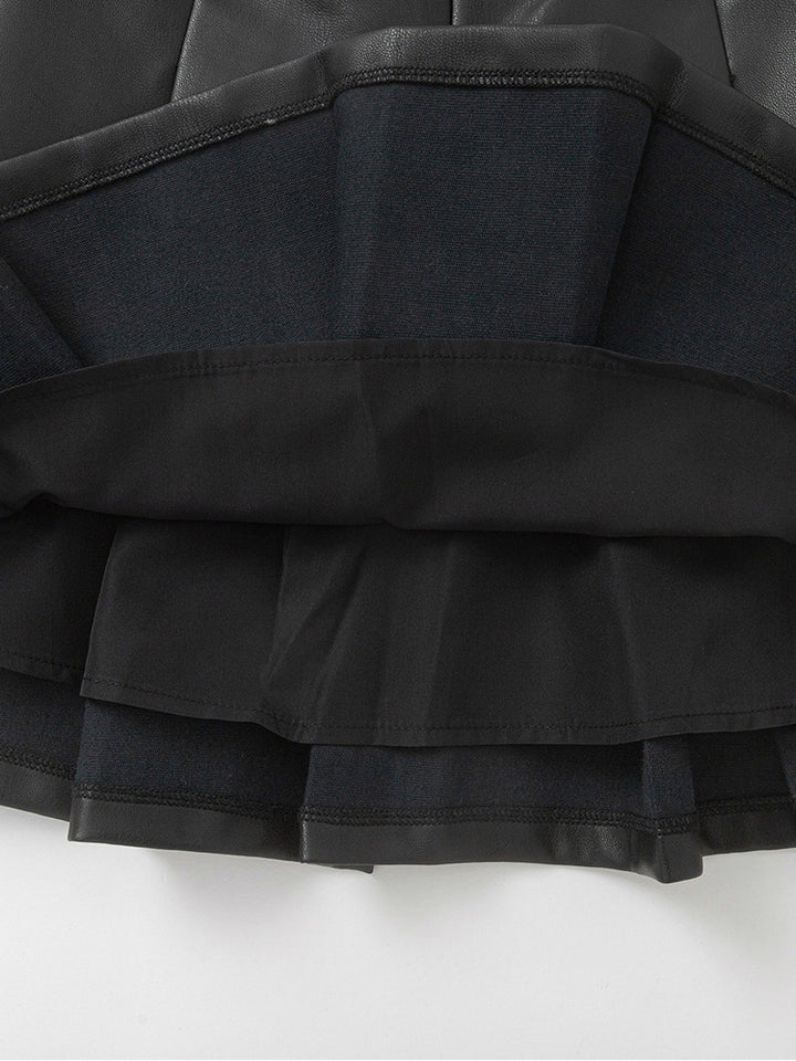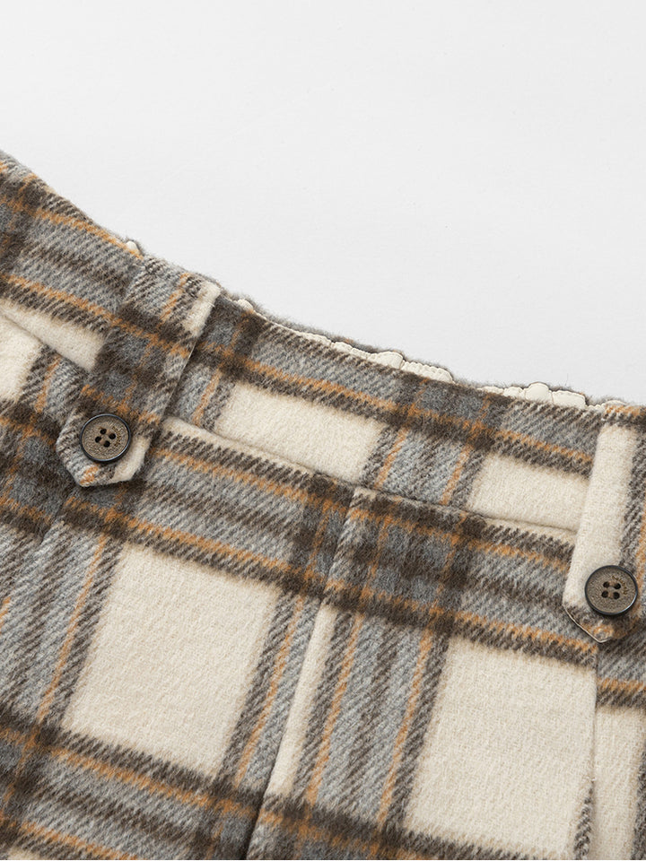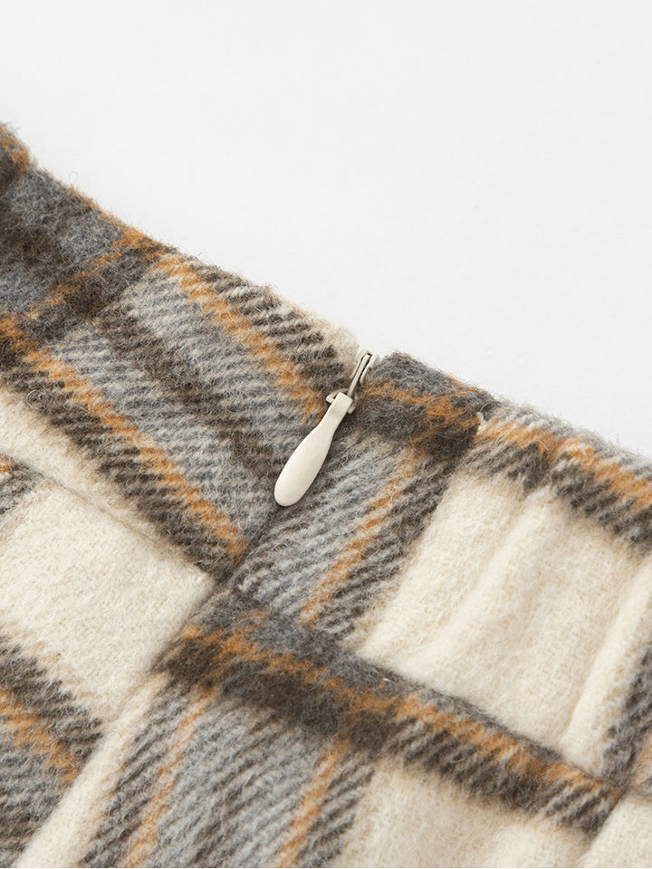 تنورة قصيرة مزينة بنمط طبعة مربعات ملون على كامل التصميم وتفاصيل كسرات، تأتي بسحاب للإغلاق على جانب الخصر